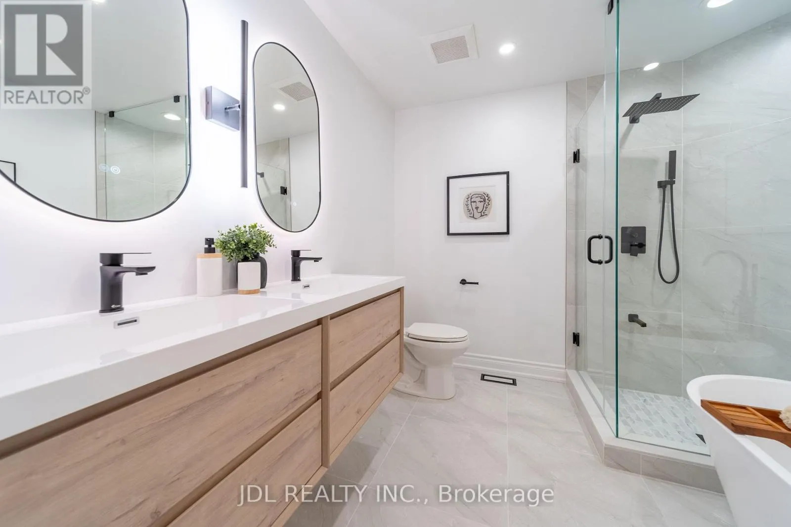 The sunlit eat-in kitchen overlooks a private, tranquil backyard and has been fully upgraded with clean white cabinetry and brand-new quartz countertops, offering a fresh and timeless aesthetic. The home is finished with light-toned engineered hardwood flooring, and the stairs and railings have all been newly replaced, contributing to a cohesive and modern feel. The main floor powder room features a sleek floating vanity, while the second-floor bathroom has been fully renovated with large-format glossy tiles, a floating vanity with an LED mirror, and a glass-enclosed shower creating a bright and refined space. The primary ensuite is a luxurious retreat, complete with a freestanding bathtub, double floating vanities, dual LED mirrors, and recessed spotlights for enhanced brightness and comfort. The four-bedroom layout includes well-proportioned bedrooms, a convenient second-floor laundry room, and a versatile third-floor family room or home office also suitable as a fourth bedroom with private balcony access. Stylish comfort and exceptional attention to detail are evident throughout. Located just steps from the Edithvale Community Centre, parks, shops, restaurants, and transit, this home offers a rare blend of modern design, everyday practicality, and urban convenience. (id:27476)