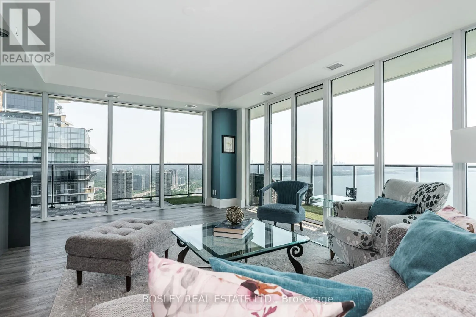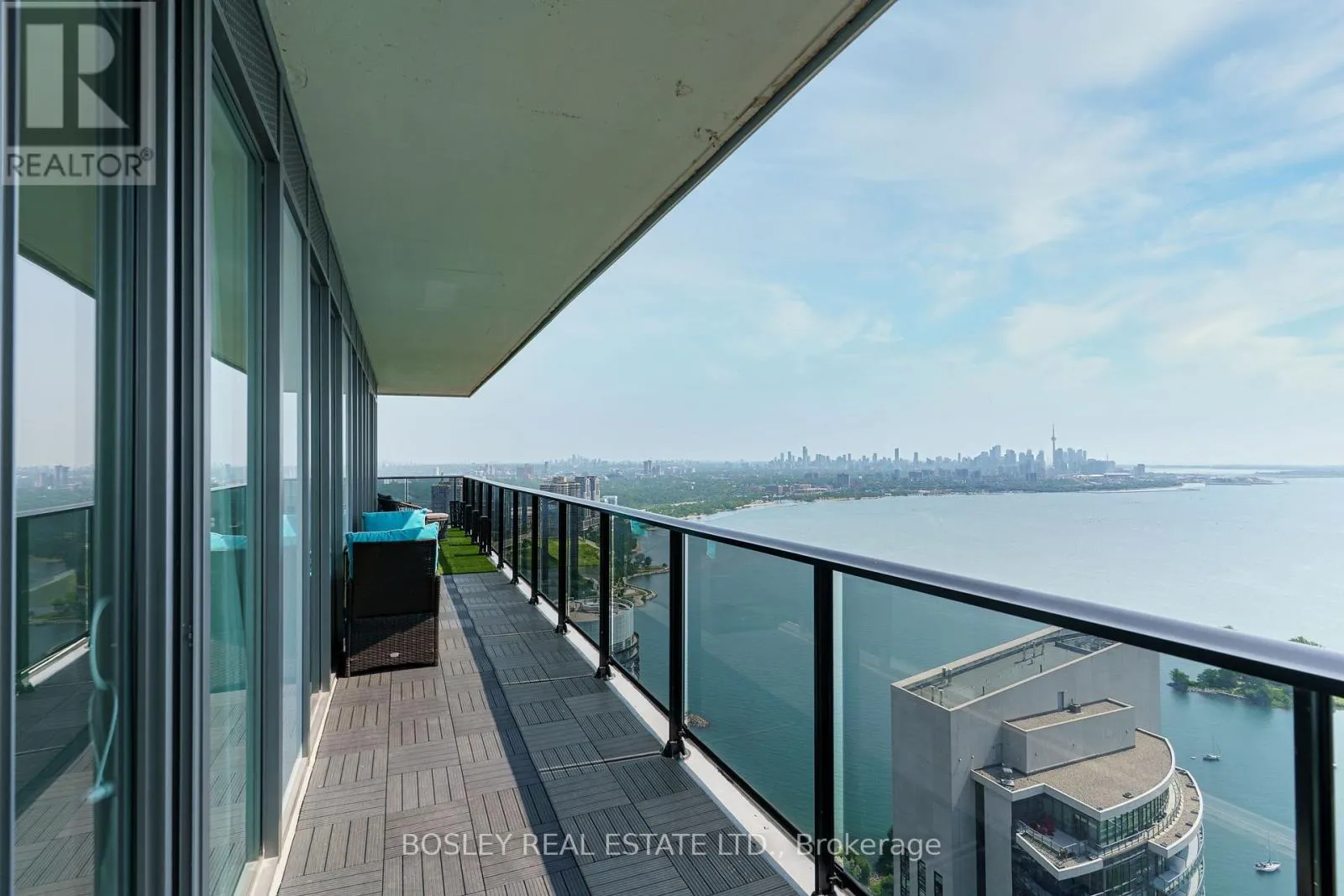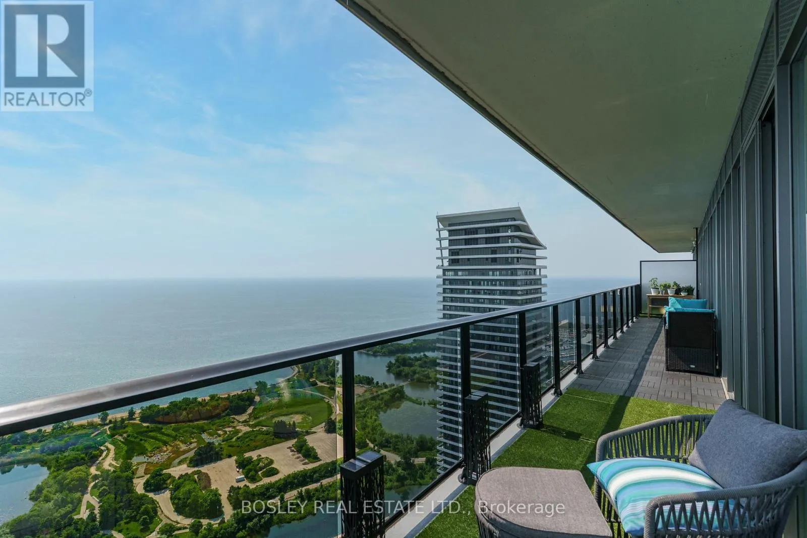 With TTC at your door and a future GO station planned, access to downtown & beyond is seamless. Rising 56 storeys, Vitaon the Lake is a 3-year-old building offering refined amenities including 24/7 concierge, 5 high-speed elevators & on-site management. The 5th floor features a fully equipped fitness centre with cardio, weights, yoga studio, saunas, a stylish party room & private dining room with walkouts to the pool, sundeck & BBQ terrace. Two guest suites, ample visitor parking, underground car wash and pet wash stations provide daily convenience. THE VIEW!! You'll be swept away upon entering this expansive 1,544 sq ft south/east corner suite, where unobstructed & breathtaking views stretch over Lake Ontario, the Mimico Yacht Club, and the glittering Toronto skyline & iconic CN Tower. Floor-to-ceiling windows bathe the interiors in natural light, while a tiled wraparound corner balcony extending the full length of the suite on both ends, offers magnificent sunrise-to-sunset vistas. The foyer with recessed ceiling, double closets, guest powder room & walk-in pantry, opens to a chefs kitchen with quartz backsplash, custom 11-foot quartz island & premium Thermador & Liebherr appliances. The open-concept living, dining and den features 9-foot smooth ceilings, wide-plank luxury floors and custom 7-inch baseboards throughout. The split-bedroom layout includes two elegant 4-piece ensuites with quartz counters & porcelain tile. The primary bedroom offers dual walk-in closets & south-facing balcony access; second bedroom features a walk-in closet & east-facing balcony access. Laundry room with stacked appliances, chest freezer, sink, cabinetry & closet storage. Includes 1 locker & 2 side-by-side parking spots. (id:27476)