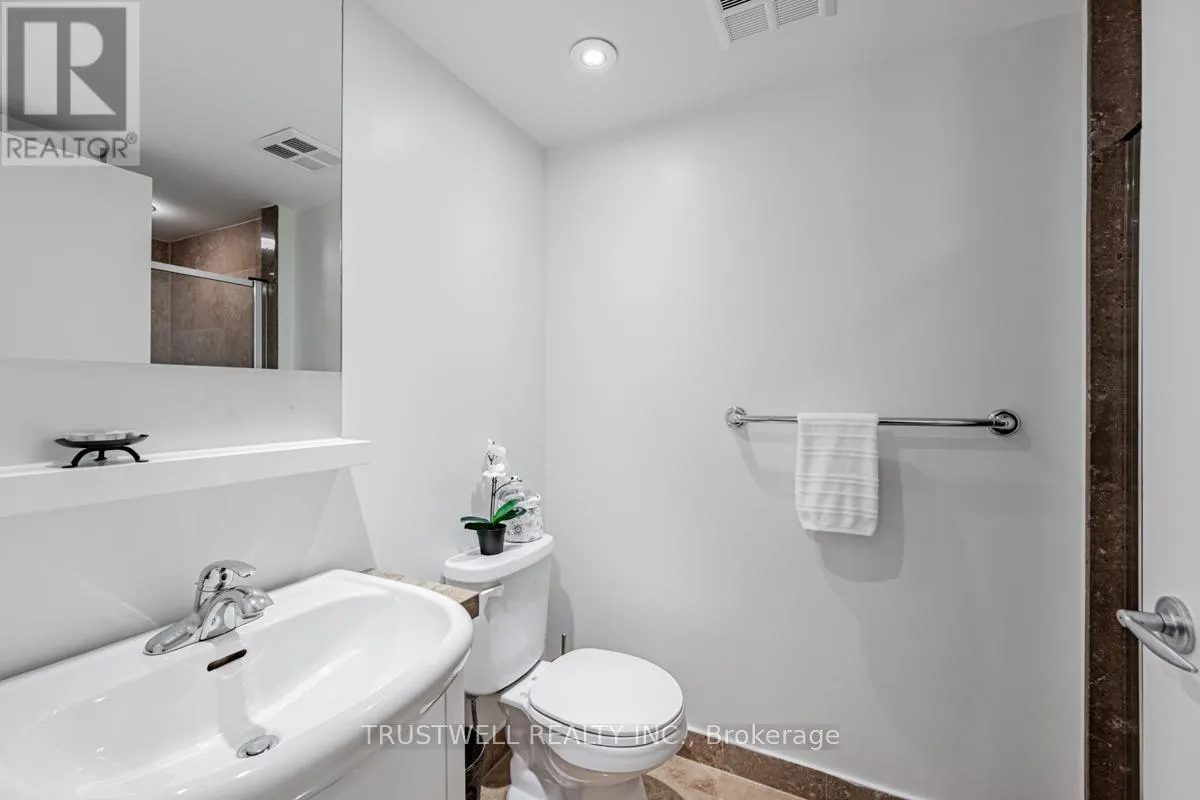The modern kitchen features granite countertops, a center island, double oven, and brand-new stainless steel appliances. Freshly painted with wood flooring throughout, the unit includes 1 bedroom plus a large enclosed den (ideal as a second bedroom) and a bright solarium perfect for a home office. Two full marble bathrooms and a marble foyer add a touch of elegance. Steps to transit, Union Station, the Financial District, dining, and attractions. Premium amenities included. (id:27476)
