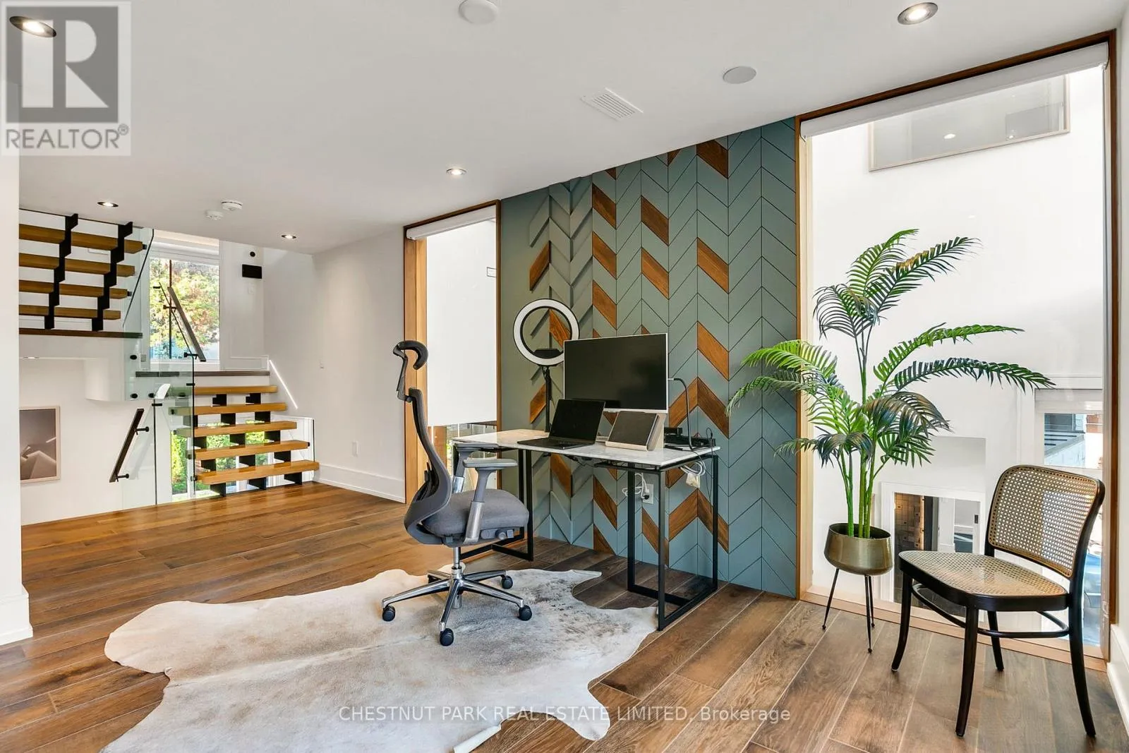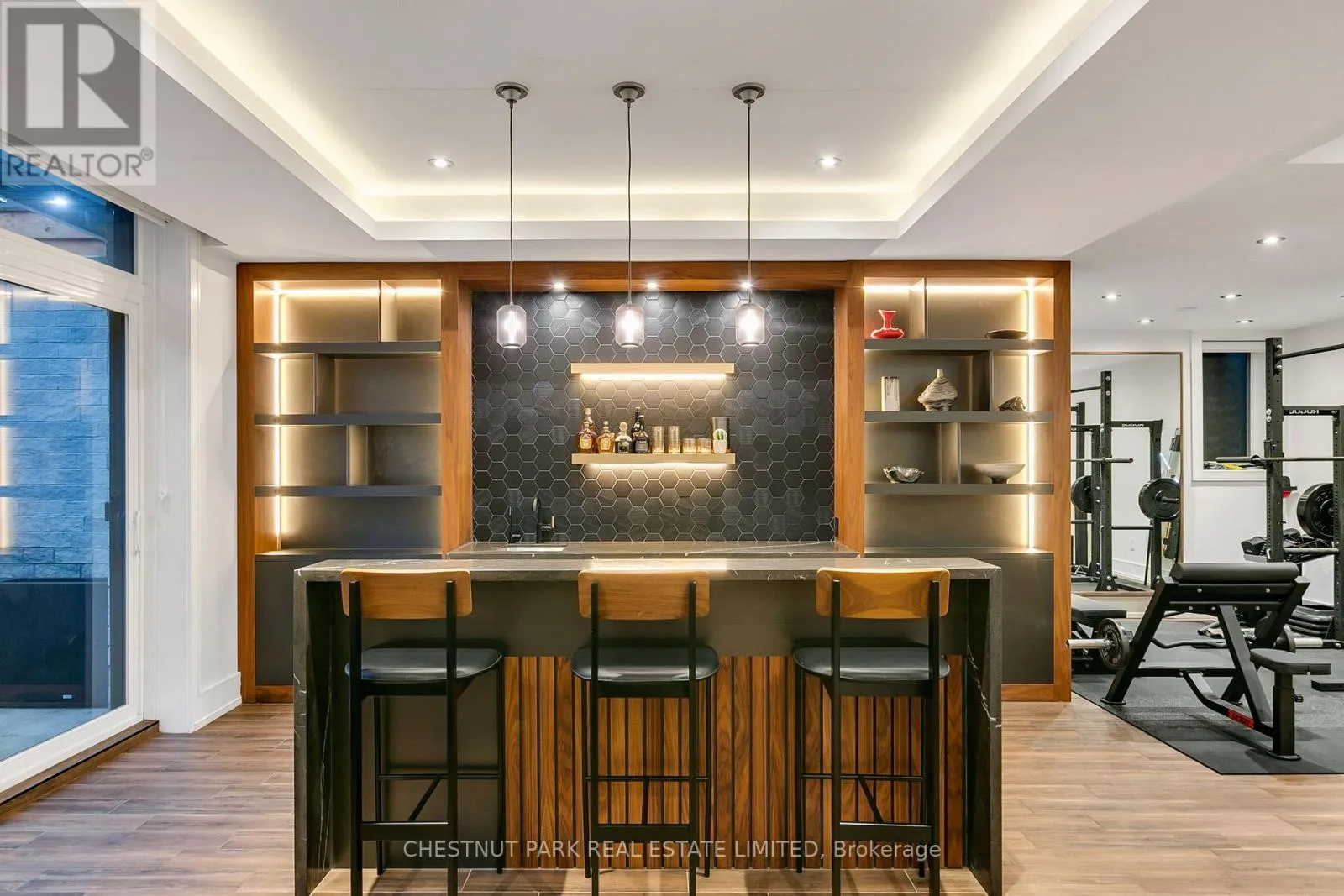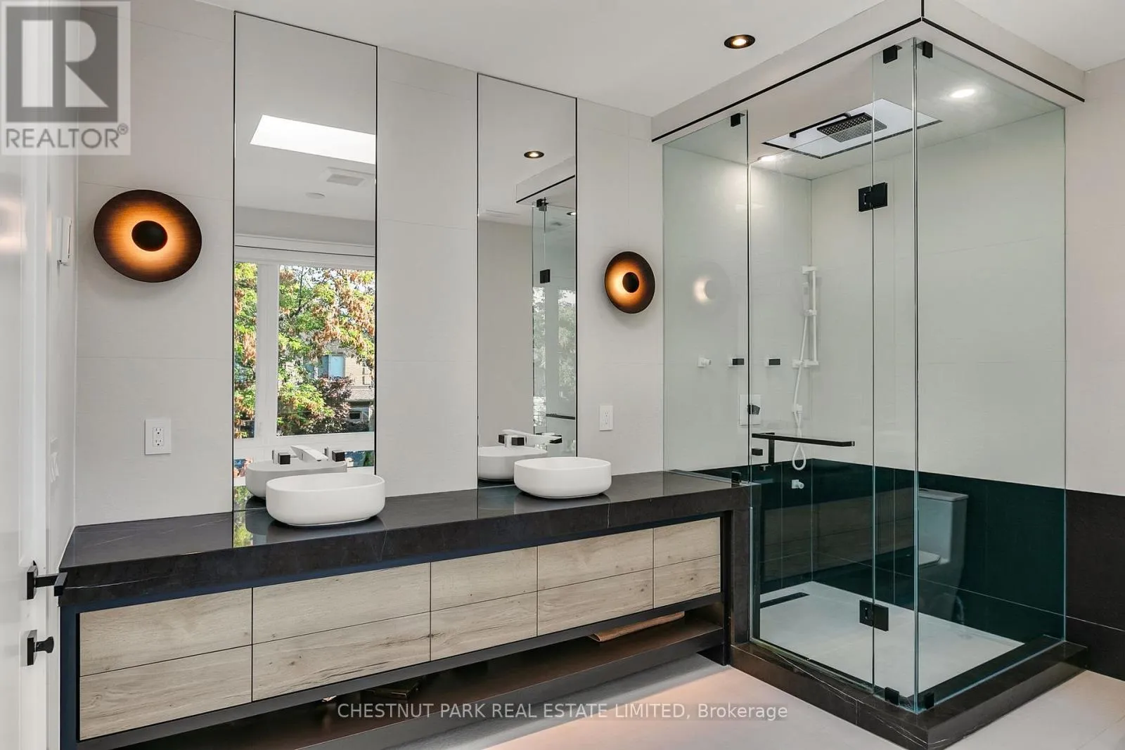 Outfitted with dual islands, a pantry, custom solid wood cabinetry with full-size porcelain slab doors, quartz countertops, matching backsplash & top-tier Wolf & Sub-Zero appliances, it is a showstopper. An architectural staircase with laser-cut, no-joint metal stringers, 3" solid white oak risers & glass railings is a central design feature. The home includes an elevator, a lit-up custom glass wine & art display & 2 laundry rooms. The primary suite is a private retreat, complete with two walk-in closets & a spa-inspired ensuite featuring a soaker tub & a skylit shower. A stunning mezzanine office (or den) overlooks the main floor, creating a dramatic, yet functional workspace. All Bedrooms have their own ensuite bathrooms. The lower level is well thought out, with over 9 ft ceilings, radiant heated floors, a bar, custom built-ins, a rec room with walkout to the yard, 2nd laundry room, gym, a powder room & a guest bedroom with an ensuite bath. The heated tile floors in the foyer & primary ensuite, professional landscaping, 11 skylights, 3 fireplaces, smart home system with features allowing you to monitor & manage the home even if you are halfway across the world, state-of-the-art alarm system, heated driveway, generator & a 2-car garage with EV charger round out the homes extensive list of luxuries.Set on a rare 50 ft lot, with professional landscaping (& room for a pool) this 4+1 bed, 7 bath home has architectural details at every turn, showcasing the perfect blend of modern innovation, sleek design & everyday comfort (id:27476)