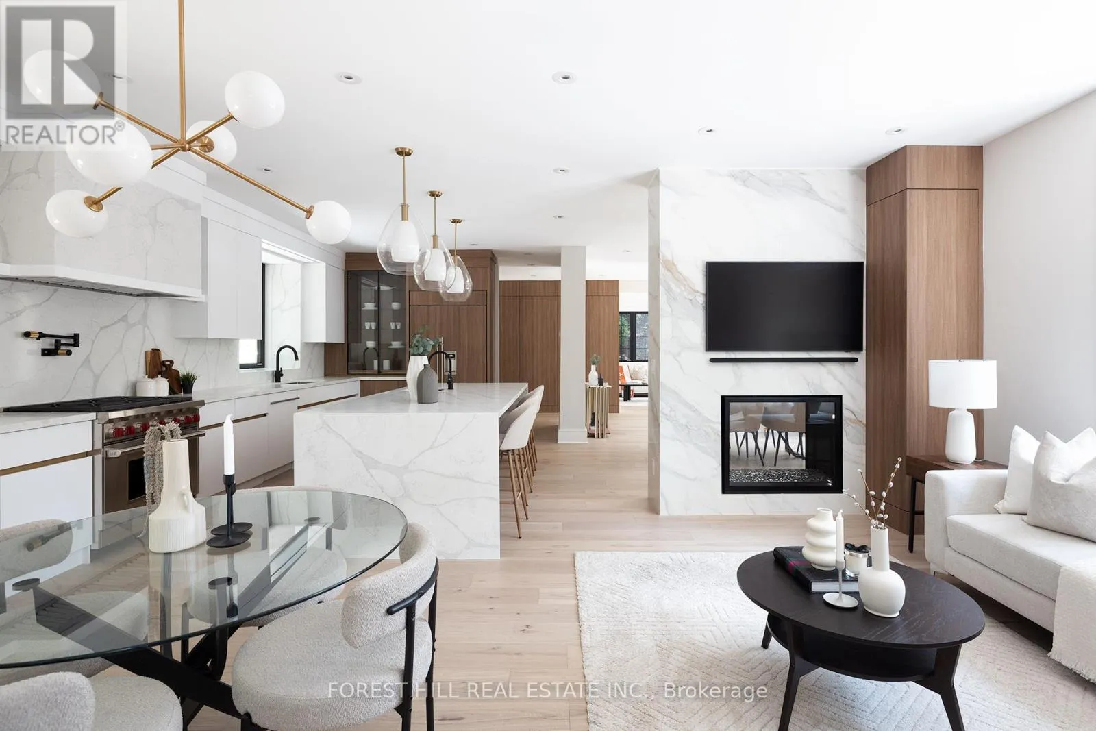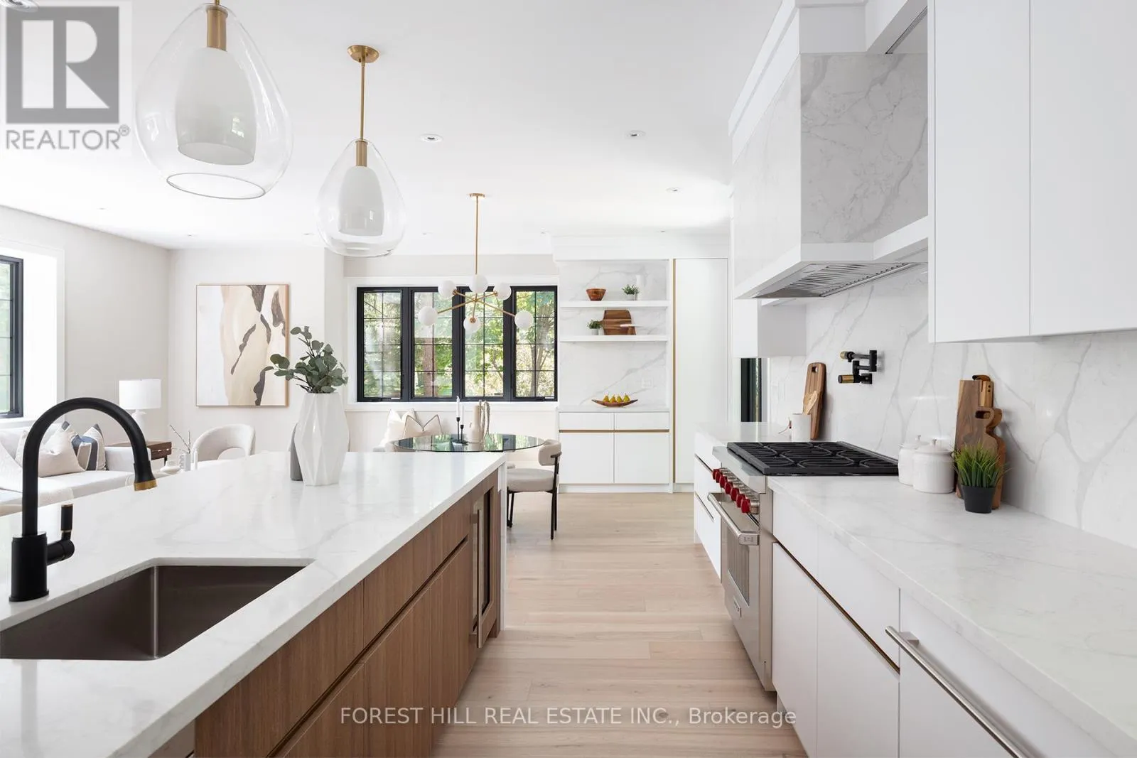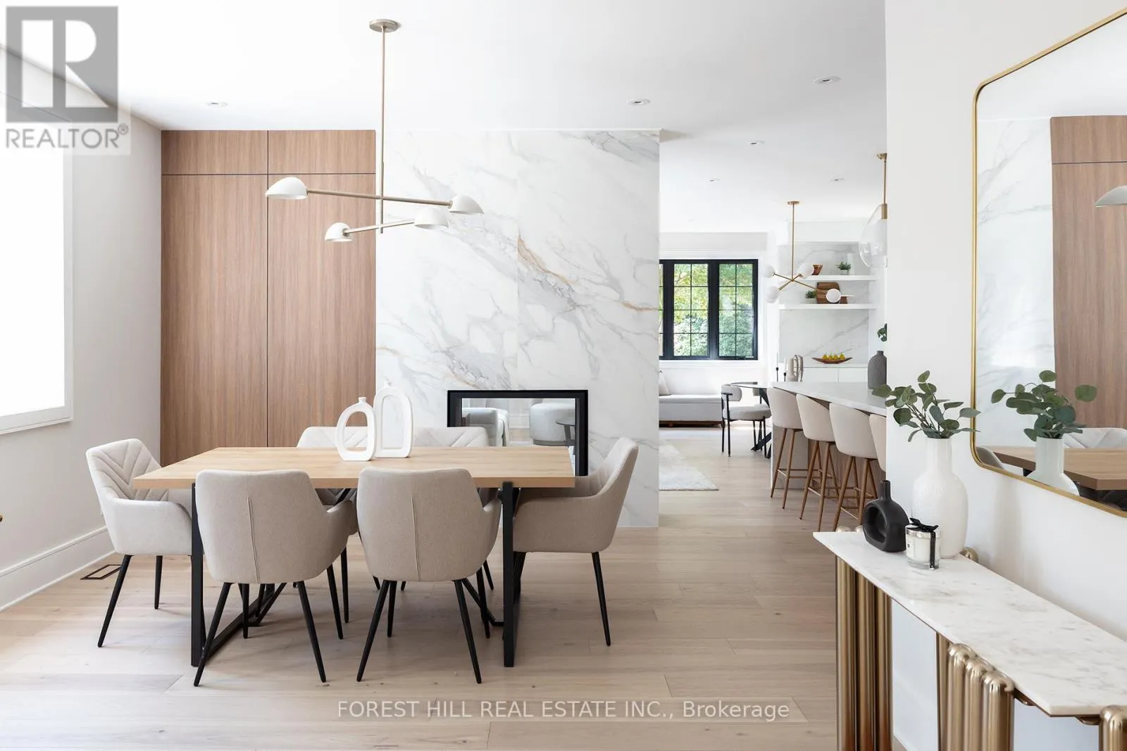 Natural light floods the main level, where the principal rooms overlook a tranquil, green backdrop. The open-concept kitchen and family area connect seamlessly to a private, ravine-like outdoor retreat, perfect for families who travel often or value low-maintenance living. Chefs kitchen with Sub-Zero refrigeration, a Wolf six-burner gas range and microwave drawer, Miele integrated dishwasher, and quartz waterfall countertops anchored by a double-sided porcelain fireplace. Upstairs, four spacious bedrooms offer privacy and flexibility. The primary suite is tucked away, featuring a generous walk-in closet and a spa-inspired en-suite. A secondary suite with its own balcony provides comfort for guests or extended family, while two additional bedrooms share a well-appointed Jack-and-Jill bath. Designer lighting from Union Lighting and wide-plank engineered hardwood flooring add warmth and refinement throughout. The bright, above-grade lower level extends everyday living with a spacious laundry room featuring Electrolux appliances, direct garage access, and a versatile open layout ideal for a home gym, media lounge, or office. Heated driveway and radiant in-floor heating to the NTI high-efficiency boiler, Siemens safety system, and front and rear irrigation for effortless upkeep. A short walk to Chorley Park, Summerhill Market, and the Evergreen Brick Works, and within close proximity to Toronto's top public and private schools, this is a rare turnkey residence that blends Rosedale charm with uncompromising modern luxury. (id:27476)