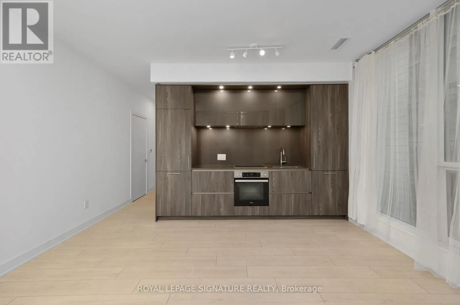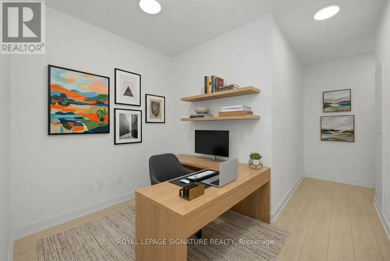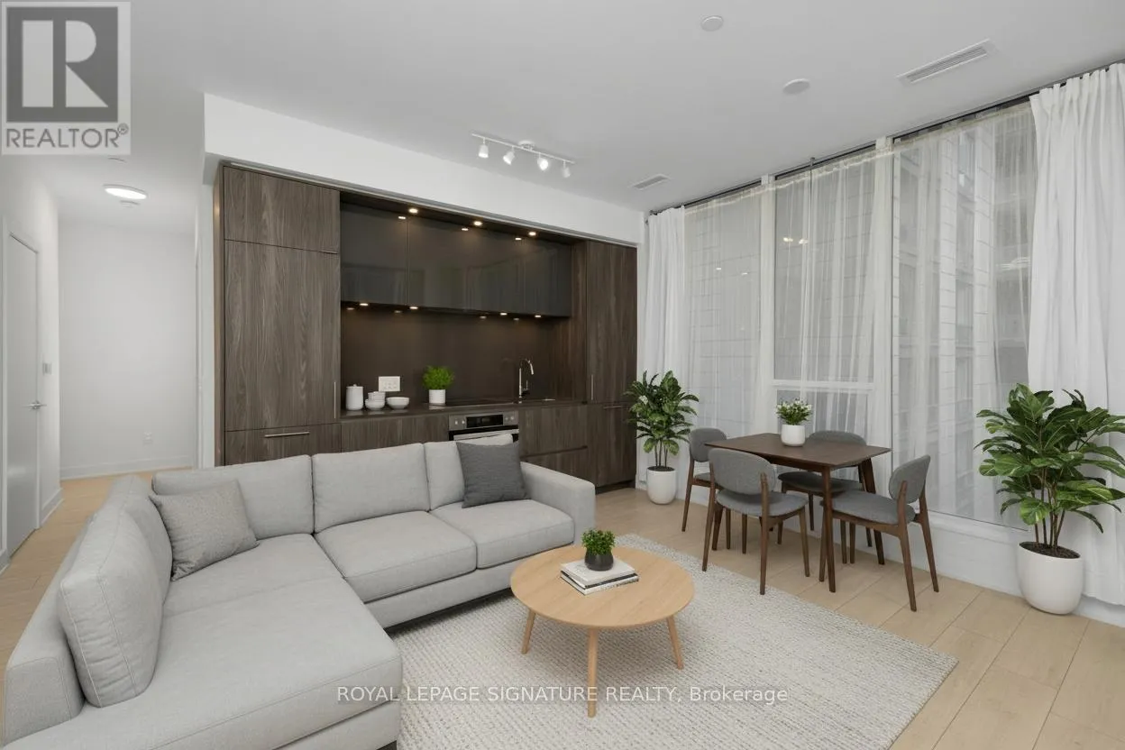 King St & Blue Jays Way Rare 631 sqft corner 1+Den suite at the prestigious NOBU Residences Toronto, offered at one of the lowest price-per-square-foot opportunities currently available in the building, with monthly maintenance fees conveniently less than $0.75 per sqft. The functional layout features 9 ft ceilings and a spacious den ideal for a home office or flexible guest space. Modern kitchen with built-in high-end appliances, ambient lighting, and generous storage.