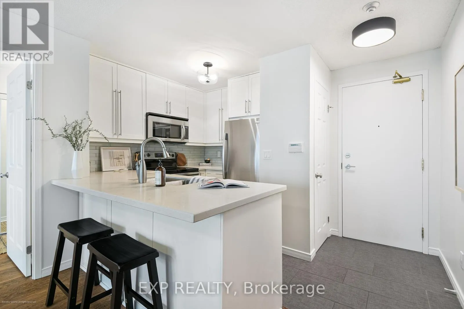 Inside, the space opens up generously. Floor-to-ceiling sliding glass panels flood the main living and dining area with soft, natural light, drawing the eye toward a lush, tree-lined courtyard a canopy of green that transforms with the seasons and offers a peaceful backdrop year-round. The layout is intuitive and functional, with a distinctly home-like feel thats increasingly rare in todays market. Both bedrooms are large enough to comfortably accommodate king-sized beds, a testament to the intelligent design.The kitchen and bathrooms have been thoughtfully updated, marrying contemporary finishes with timeless appeal. Its a space that feels instantly livable not just a place to stay, but a place to belong.Beyond the suite, residents enjoy access to a concierge (perfect for the modern delivery lifestyle), a rooftop deck with sweeping views for summer entertaining, a well-equipped gym, party room, and more. Here, in the heart of the city, where cobblestone streets meet cafe culture and historic architecture meets modern convenience, this home offers something rare: a true sense of place. Seller has rented a parking space within the building for 14 years; additional parking may be available for rent (subject to availability and third-party arrangements) (id:27476)