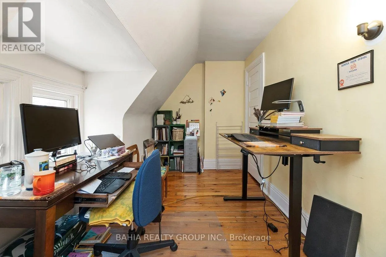 Excellent transit options include three streetcar lines and the Dundas West transit hub (subway, GO and UP Express) all within a short walk. Currently configured as a legal duplex, the home offers exceptional flexibility for homeowners or investors. The upper unit spans the second and third floors and features three bedrooms, a living room, eat-in kitchen and a large deck with city views. The lower unit occupies the main floor and finished basement and includes a living room with wood-burning fireplace, separate dining room, spacious kitchen and a comfortable lounge and bedroom in the basement. Both units feature wood floors, 4-pc bathrooms with Japanese Toto toilets and in-suite washer/dryers. Updates include a new furnace and hot water heater (2024), new washing machines and updated electrical breaker panel. The same family has lovingly owned the home for over 30 years. The deep backyard includes a patio, herb and vegetable garden, raspberry, blackberry and currant bushes and a peaceful moss garden. At the rear is a rare double-brick garage with parking, workshop and storage space. The garage location has also been assessed and recommended for a potential laneway house. A rare opportunity offering income potential, redevelopment possibilities or conversion to a single-family home. (id:27476)