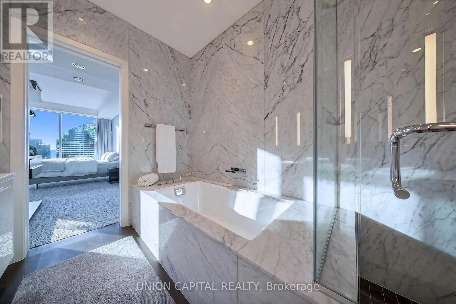 University / Adelaide Perched high above the iconic Shangri-La Hotel Toronto within the exclusive Private Estates collection, this spectacular South-East corner residence offers an elevated living experience in one of downtown Toronto's most prestigious addresses. From sunrise over Lake Ontario to glittering evening views of the CN Tower and city skyline, every moment here is framed by breathtaking, unobstructed panoramas.