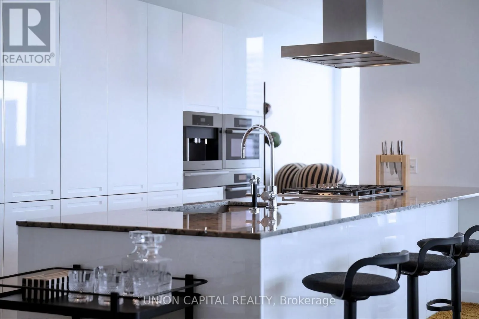 Spanning 1900 sq ft of impeccably designed space, this 2 bedroom + den suite blends refined elegance with modern comfort. A Boffi kitchen - complete with high-gloss lacquer cabinetry and premium Miele and Sub-Zero appliances - anchors the home, while herringbone hardwood floors, soaring 10-ft ceilings, and automated blinds create a seamless sense of sophistication throughout. The primary retreat is a true sanctuary, featuring a generous walk-in closet and a spa-inspired 5-piece ensuite wrapped in Carrara marble. A well-appointed second bedroom with its own ensuite ensures privacy for guests, while the separate den offers a refined and versatile space for a home office, sitting area, or private guest accommodations. Step out onto the expansive balcony and take in the city from above - an ideal extension of your living space. Indulge in a fully serviced, hotel-inspired lifestyle with access to a 24-hour concierge & doorman, valet and chauffeur services, and the renowned Miraj Hammam Spa. Wellness amenities include a 24-hour fitness centre, yoga studio, and a 20-metre indoor lap pool with hot tub, infrared sauna, and steam rooms. Enjoy seamless access to the building's celebrated dining destinations including Bosk Restaurant, Mott 32 Toronto, the Lobby Lounge, along with in-suite dining and hotel bar service at your convenience. Complete with a rare two-car private garage with storage, complemented by private on-site automotive detailing services, this is a truly exceptional offering - where private estate living meets the effortless luxury of a five-star hotel. (id:27476)