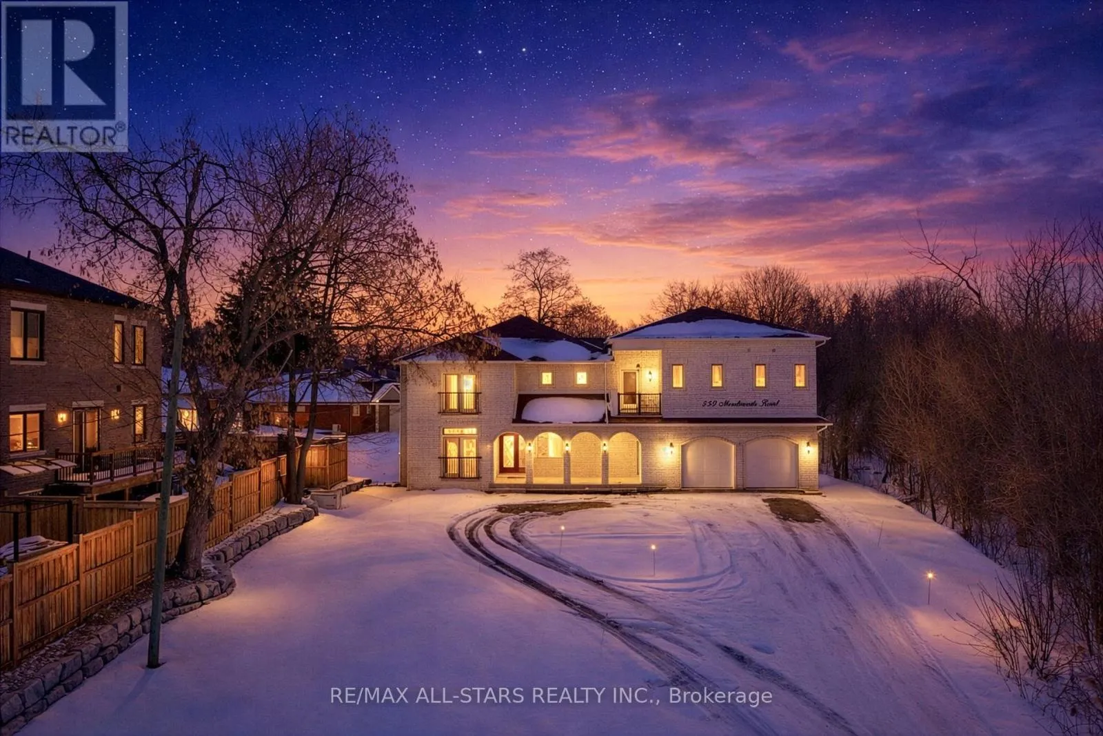 Ellesmere Rd / Meadowvale Rd (Minutes to 401) Exceptional custom-built Mediterranean-inspired 5-bedroom residence in the highly coveted Highland Creek. Perfectly positioned on a 100 x 200-foot lot and gracefully set back from the street, this impressive home welcomes you with a stately driveway, a wrought iron fence and gates, a striking white exterior façade, and a covered porch framed by elegant arches, all contributing to its timeless architectural appeal.
