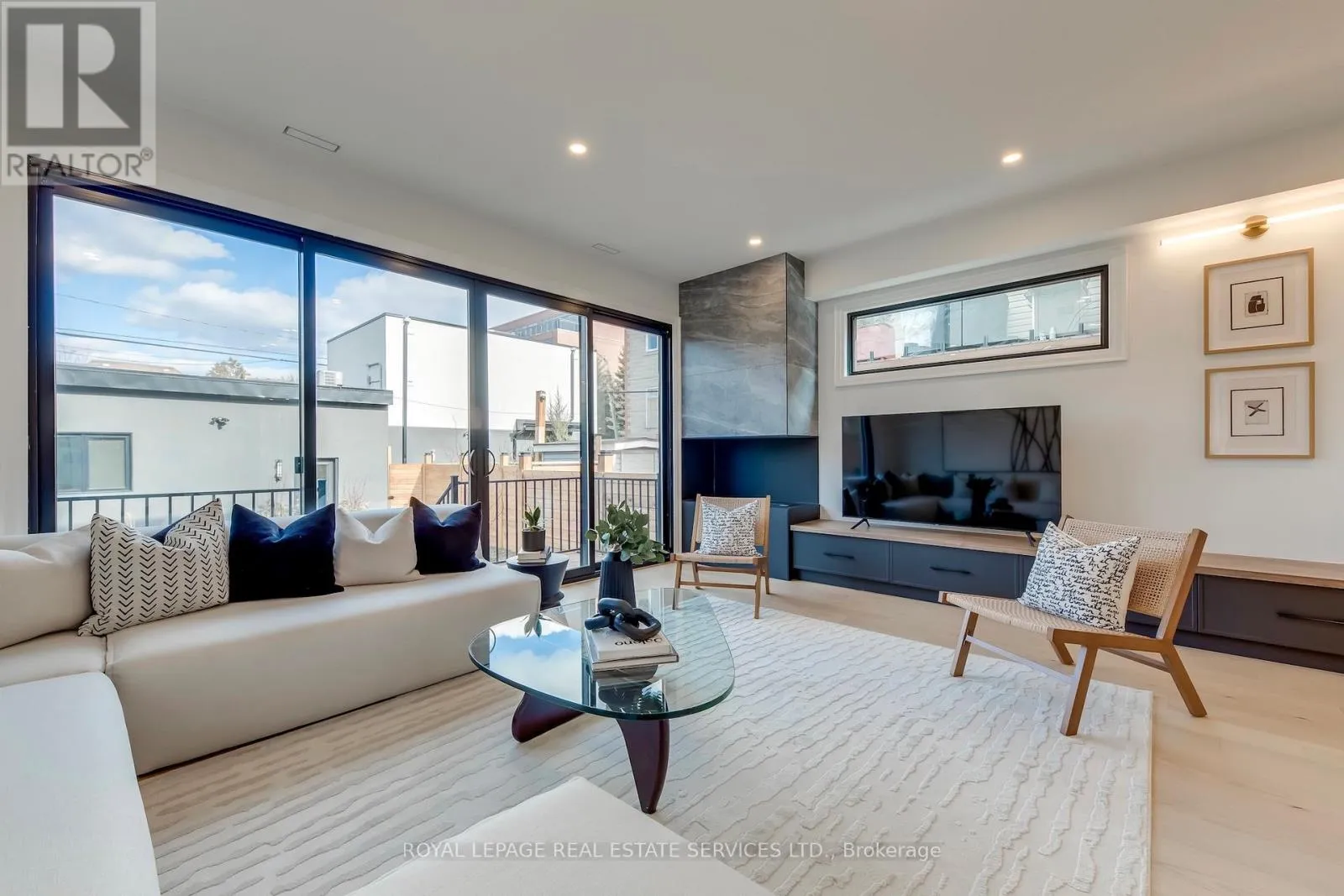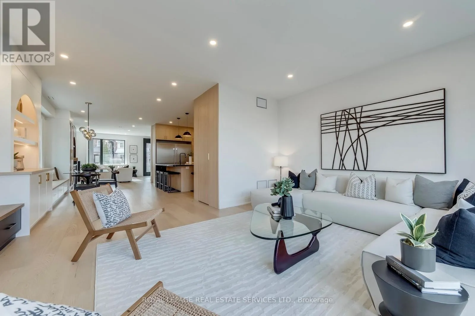 8 bedrooms total, 7 bathrooms total, 3 kitchens, 3 laundry areas, and 4,805 sq ft of total residential area. The main house offers 5 bedrooms and a bright, open interior shaped by large rear glazing, multiple skylights, and a clean glass-railed staircase that carries light through the core of the home. White oak engineered hardwood, carefully integrated built-ins, banquette seating, and a full wall of family-room cabinetry give the house both warmth and structure. The primary retreat features approx. 10.5-ft ceilings, custom built-ins, dressing area, and a beautifully finished ensuite. The third level adds 2 more bedrooms, a lounge/study, and its own sense of separation for older children, guests, or work-from-home use. The lower level includes a separate entry, kitchen, living area, heated floors, and separate laundry. Privately positioned on the lot, the detached laneway house includes 2 bedrooms, 2 bathrooms, kitchen, laundry, independent access, and a bright, well-resolved layout that lives more like a small home than a secondary structure. Well suited to multigenerational living, extended family, guests, or buyers seeking integrated supplementary space without giving up privacy. Located in the Runnymede-Bloor West Village area, close to transit, parks, schools, village shops, and the everyday conveniences that support west-end family living. (id:27476)
