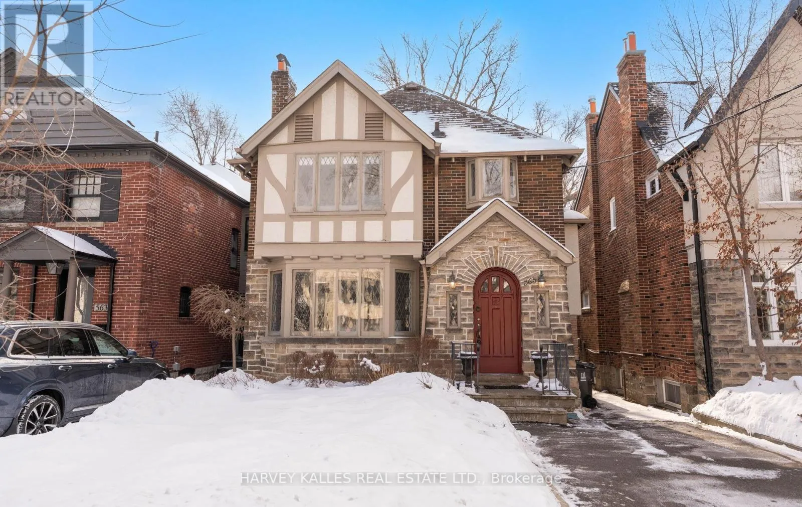 Avenue/Eglinton/Bathurst Beautiful brick and stone detached home in the heart of Upper Forest Hill Village. This 3+2 bedroom residence blends timeless character with comfortable family living, highlighted by stunning leaded glass windows and an inviting fireplace add warmth and charm throughout. 1O+ curb appeal! The vaulted-ceiling family room is filled with natural light from a skylight and opens directly to a generous, south-facing backyard, creating a seamless indoor-outdoor connection ideal for everyday living and entertaining.