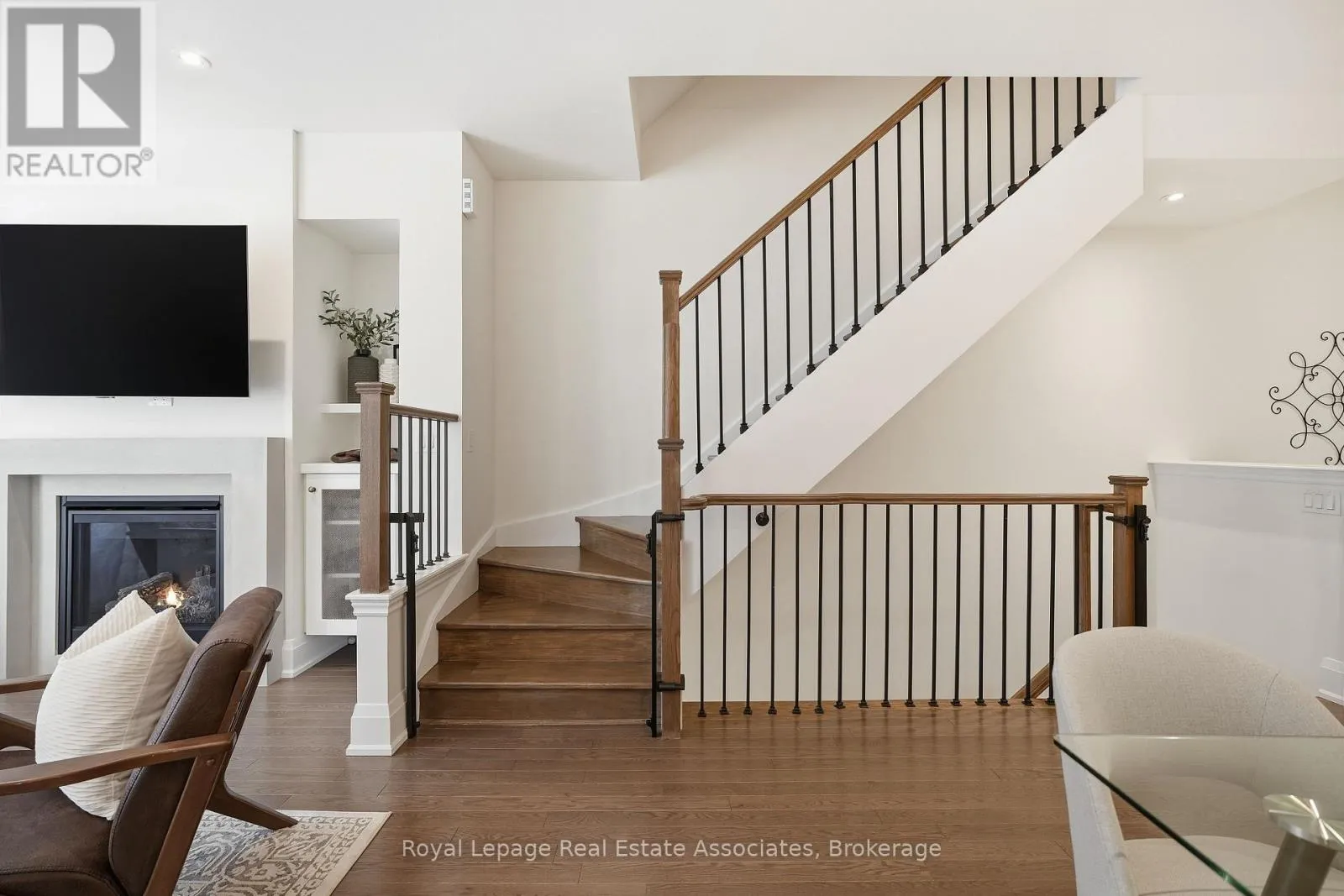The bright, open-concept living room is anchored by a gas fireplace with custom built-in cabinetry and millwork, complemented by pot lights across the main floor and designer lighting in the dining room that adds warmth and style. Upstairs, the primary suite feels like a private retreat, offering a huge walk-in closet, a walkout balcony, and a serene ensuite featuring a deep soaker tub, double vanity with quartz counters, and a separate glass shower with custom doors. The second bedroom is generously sized and includes a Murphy bed (which can stay or go), making it ideal for hosting friends and family while keeping the space incredibly versatile. The third bedroom is perfect for a home office, nursery, or flex space. The garage features an upgraded car lift, allowing for 2-car parking or the option to use it for extra storage, a rare and valuable bonus. Then comes the showstopper: your private 300 sq ft rooftop terrace, complete with a pergola, gas BBQ hookup, and spectacular views, the perfect spot for summer entertaining, sunsets, and relaxed weekends at home .All of this is just steps to the waterfront trails, parks, restaurants, cafés, groceries, transit, and GO-Train, with quick access to highways and downtown Toronto. Snow removal, landscaping, and water included. Just move in and enjoy. (id:27476)