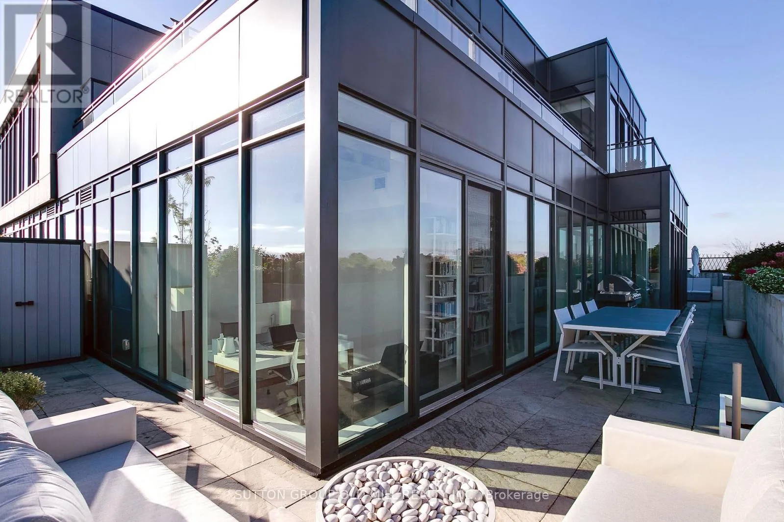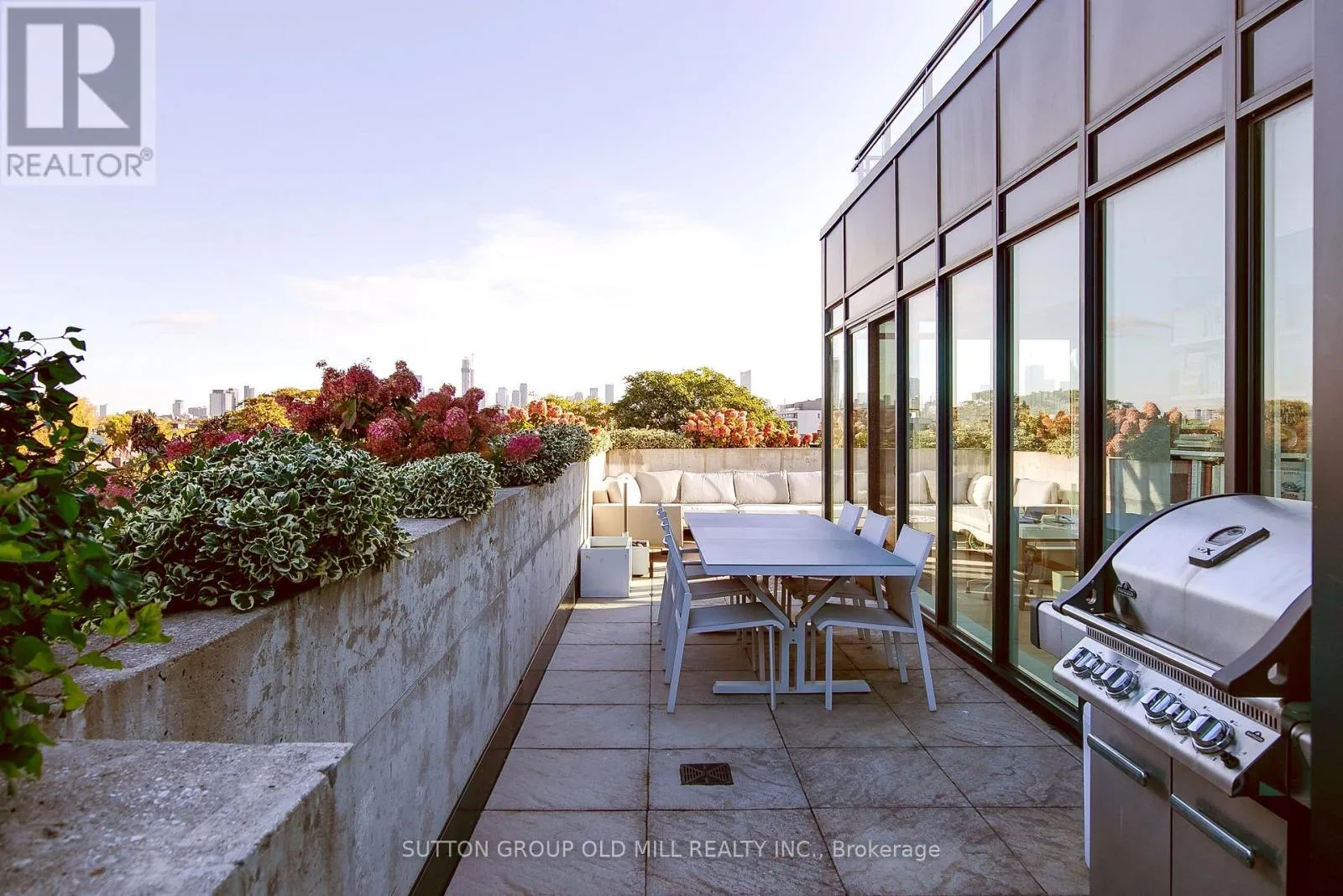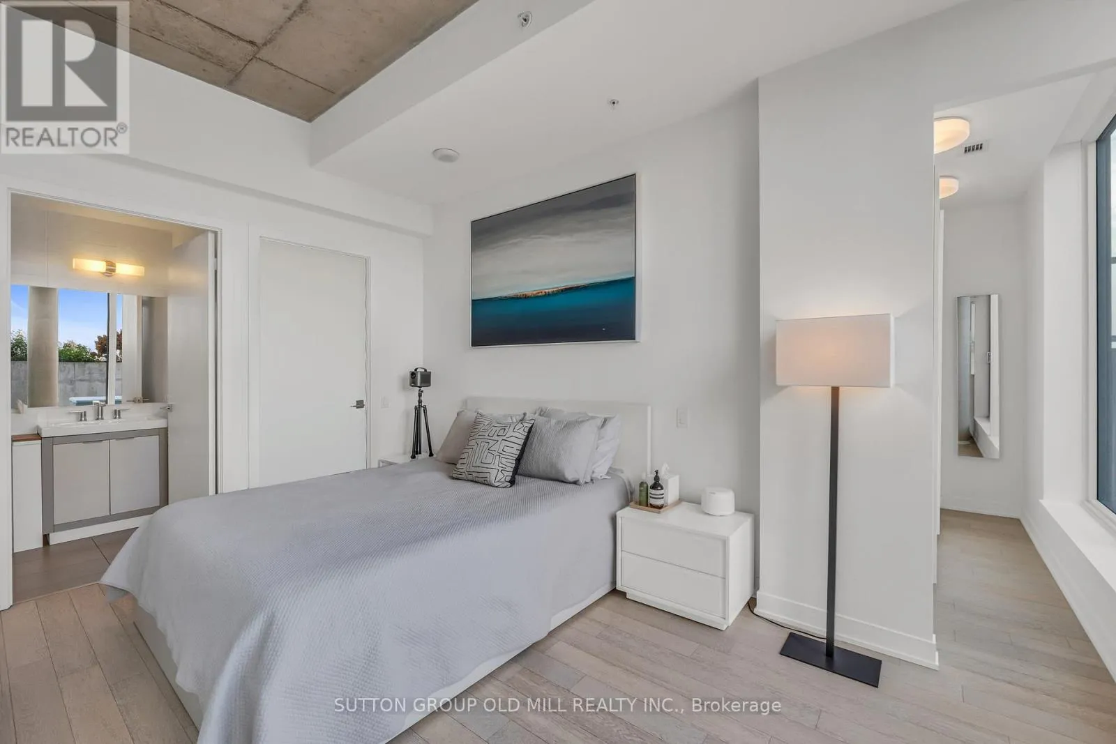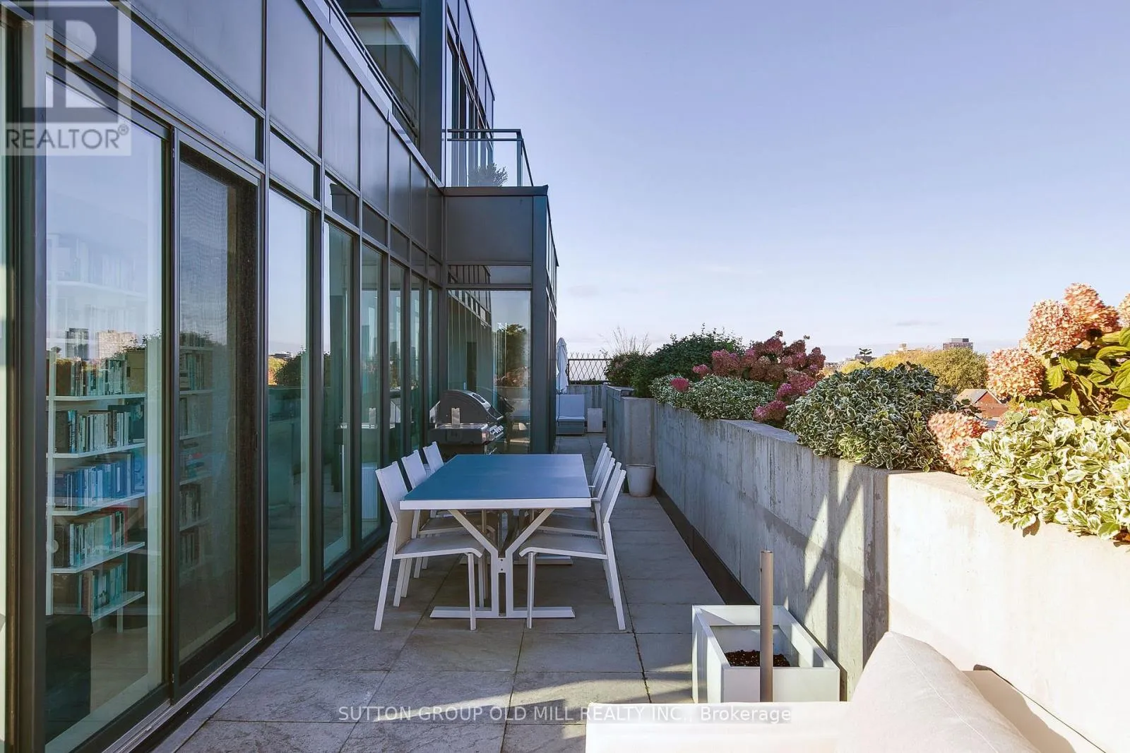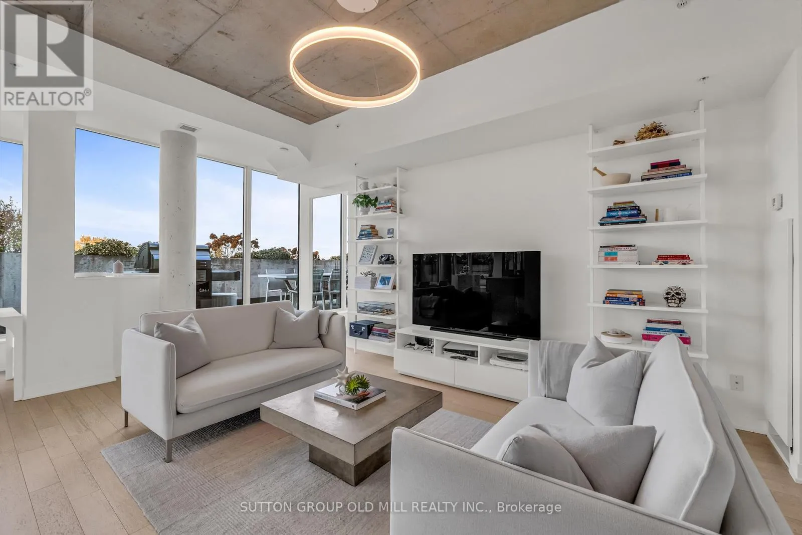 Spanning over 1,250 square feet, the layout is beautifully balanced for both entertaining and everyday living. Floor-to-ceiling windows wrap the suite in light, accentuating the brushed oak floors, exposed concrete ceilings, and minimalist design aesthetic. The sleek, open-concept kitchen features integrated appliances, a gas cooktop, and an oversized island that makes cooking - or cocktails - a social event of its own. Each of the two bedrooms enjoys its own ensuite, offering the ideal split-bedroom plan for privacy and the primary bedroom boasts two walk-in closets. A discreet powder room serves guests, while the second bedroom doubles as a bright, inspiring home office for those who work - or create - from home. Outside, the terrace steals the show. Designed for true outdoor living, it features a direct gas line for BBQs, lush landscaping, and ample space for dining, lounging, and entertaining under the open sky. It's the kind of space rarely found in the city - expansive, private, and endlessly inviting. Set within a quiet seven-storey boutique building that occupies one of College West's most vibrant pockets, this home blends urban sophistication with neighbourhood charm. Walk to the cafés, restaurants, and shops of Little Italy, Dufferin Grove, and Ossington - or stay in and watch the sunset from your terrace. Welcome to 130 Rusholme, Suite 601 - where contemporary design meets effortless luxury. Welcome Home. For additional pics, virtual tour and floor plan check out: www.130Rusholme.com (id:27476)