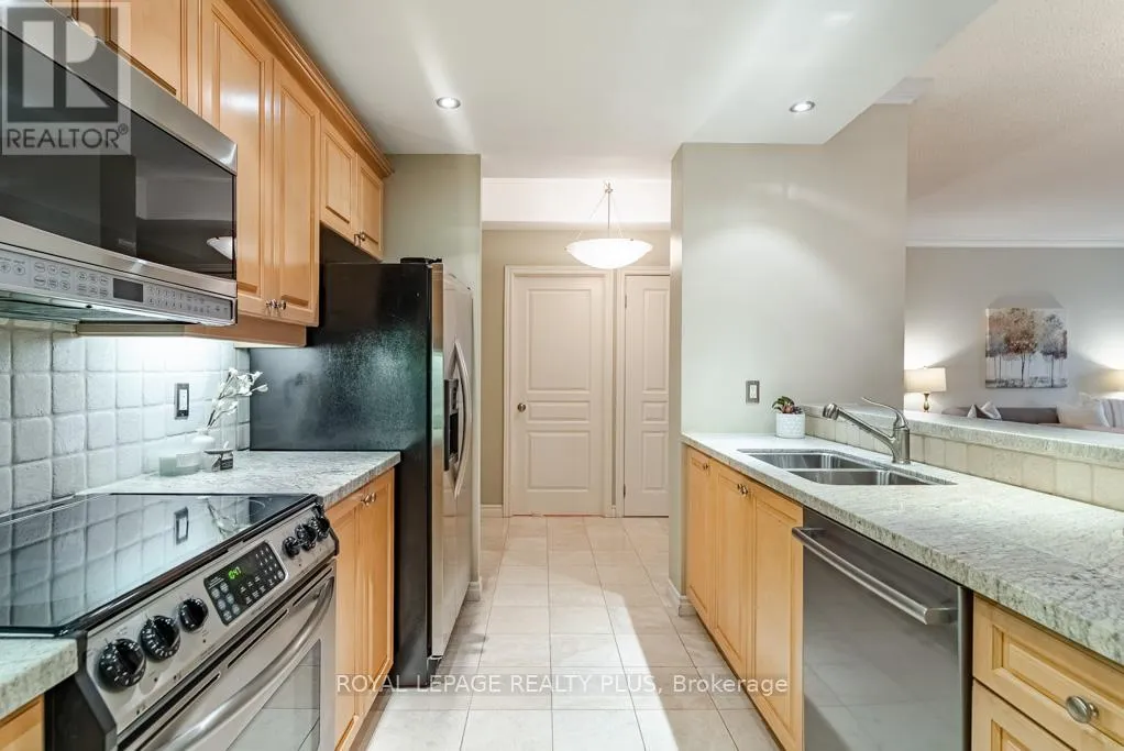 Bloor / Old Mill Rd Welcome Home to The Terraces of The Old Mill! This Coveted Building is located steps to the Historic Old Mill Restaurant and Spa. This 2 bedroom, 2 Bath unit has unobstructed North Views of the Park and Ravine. Featuring 9 ft ceilings, An Open Concept Living Room with a walkout, A great sized Dining Room with Crown Moulding and with plenty of room for Family Functions! The Chef's Kitchen Overlooks the dining room with granite countertops and stainless appliances.
