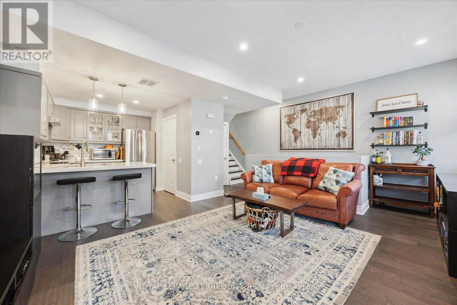 ..whatever you may need is right in your neighborhood! Enjoy sun filled large rooms, open main floor concept, main floor separate laundry room with stackable washer and dryer plus pantry/storage space. Checkout our extra deep main hall closet with super storage wrapping under the stairs. We are freshly painted, all Kitec plumbing removed, upgraded bathrooms, custom shelving throughout, lots of built-ins, Engineered flooring and no carpet anywhere, custom window coverings, California shutters, new pot lights, dimmer switches, stainless steel appliances, the list goes on. Third floor loft has a working cubby with built in desk and shelves, amazing natural light with a spectacular view of your oversized terrace and stunning skyline; very convenient to work from home. This is perfect for the working professionals, first time Buyers or an opportunity to downsize. This is your own private oasis right above the city's vibrant streets. Entertain or simply relax enjoying your personal BBQ area, under the canopy on your own patio set. Family and pet friendly, this complex is professionally cared for with tailored landscaped grounds. Low maintenance living with super entertaining space. Ready for you, welcome home! (id:27476)