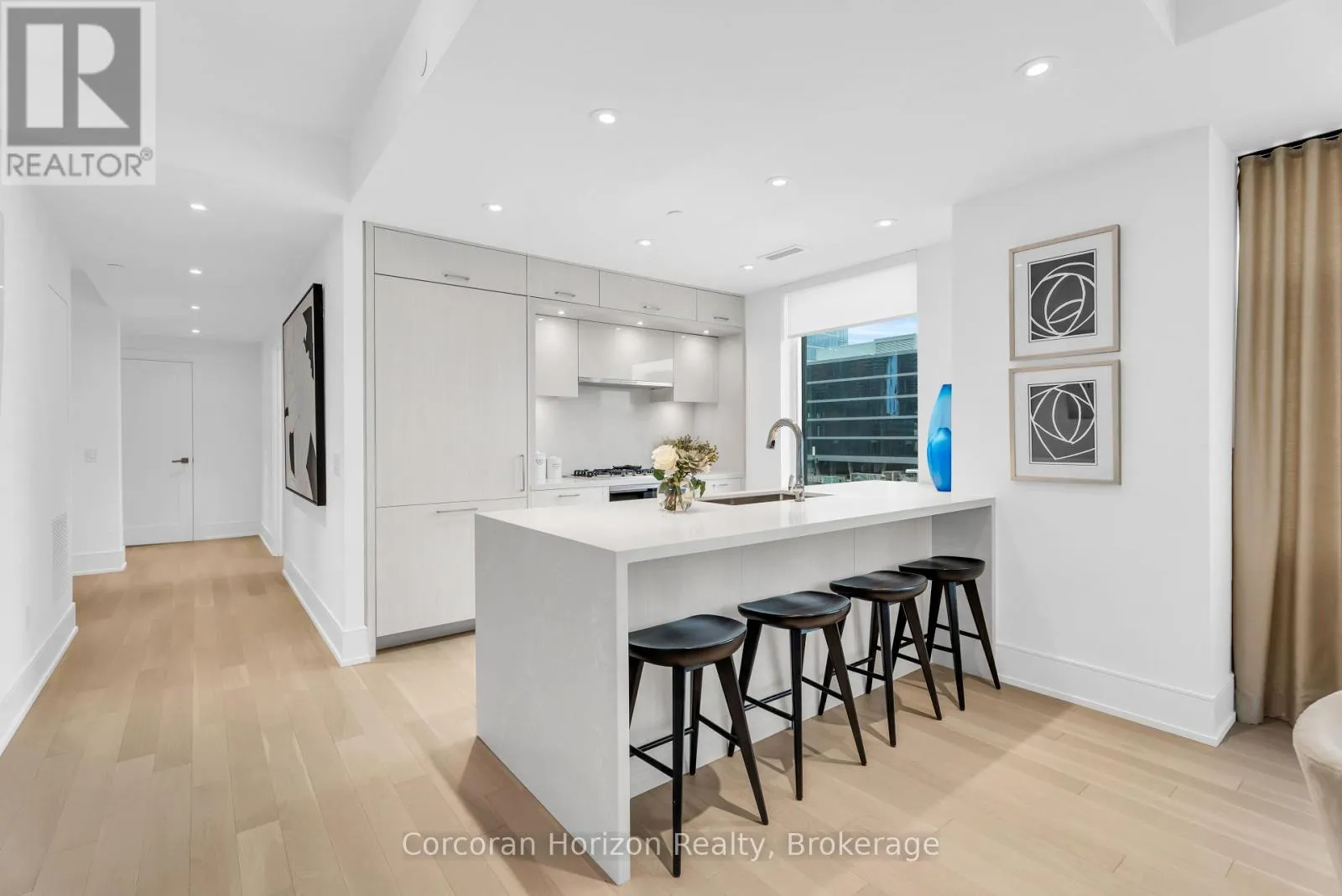This sun-filled northwest corner suite spans 1,515 sq.ft. and features 2 Bedrooms + Study and 2.5 Bathrooms, with oversized windows that flood the home with natural light and showcase dynamic city views. Thoughtfully designed with a seamless, carpet-free layout, it boasts rich hardwood floors, engineered quartz countertops, and a full suite of premium Miele built-in appliances. The spacious primary retreat is a serene sanctuary, complete with a spa-inspired ensuite and boutique-style his and hers walk-in closets. A generous second bedroom, dedicated study, and beautifully appointed bathrooms provide flexibility and comfort for modern living. Enjoy 24-hour concierge and security along with an exceptional collection of amenities, including a state-of-the-art fitness centre and weight area, private dining room, entertainment lounge, elegant fireplace lounge, and a stunning outdoor pool with tanning deck (seasonal).Complete with 1 parking space and 1 locker, this residence offers a Walk Score of 94 and Transit Score of 100 - placing you steps from world-class dining, shopping, and the energy of Wellington Street West. This is downtown Toronto living at its finest - sophisticated, sunlit, and seamlessly connected to everything the city has to offer. (id:27476)