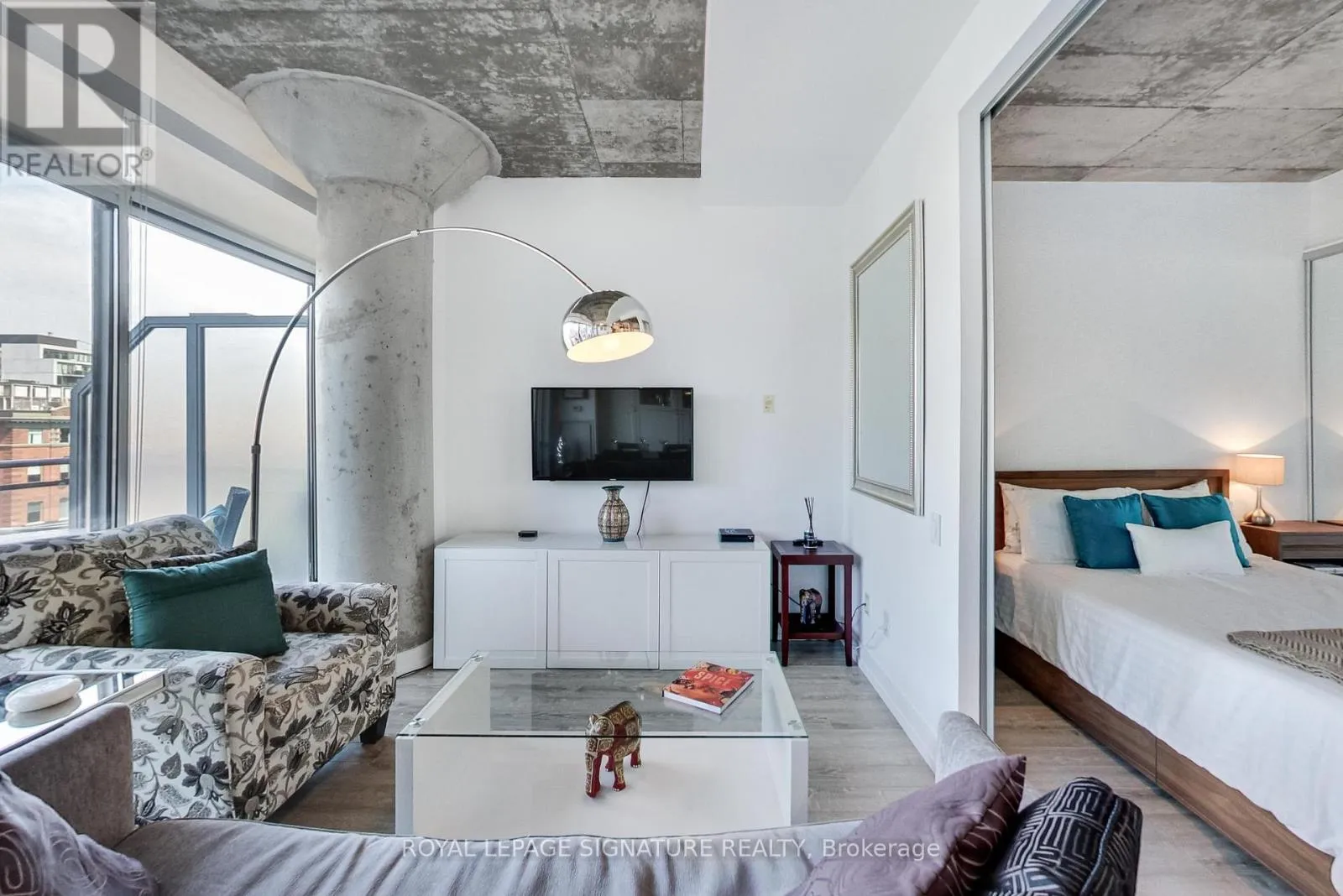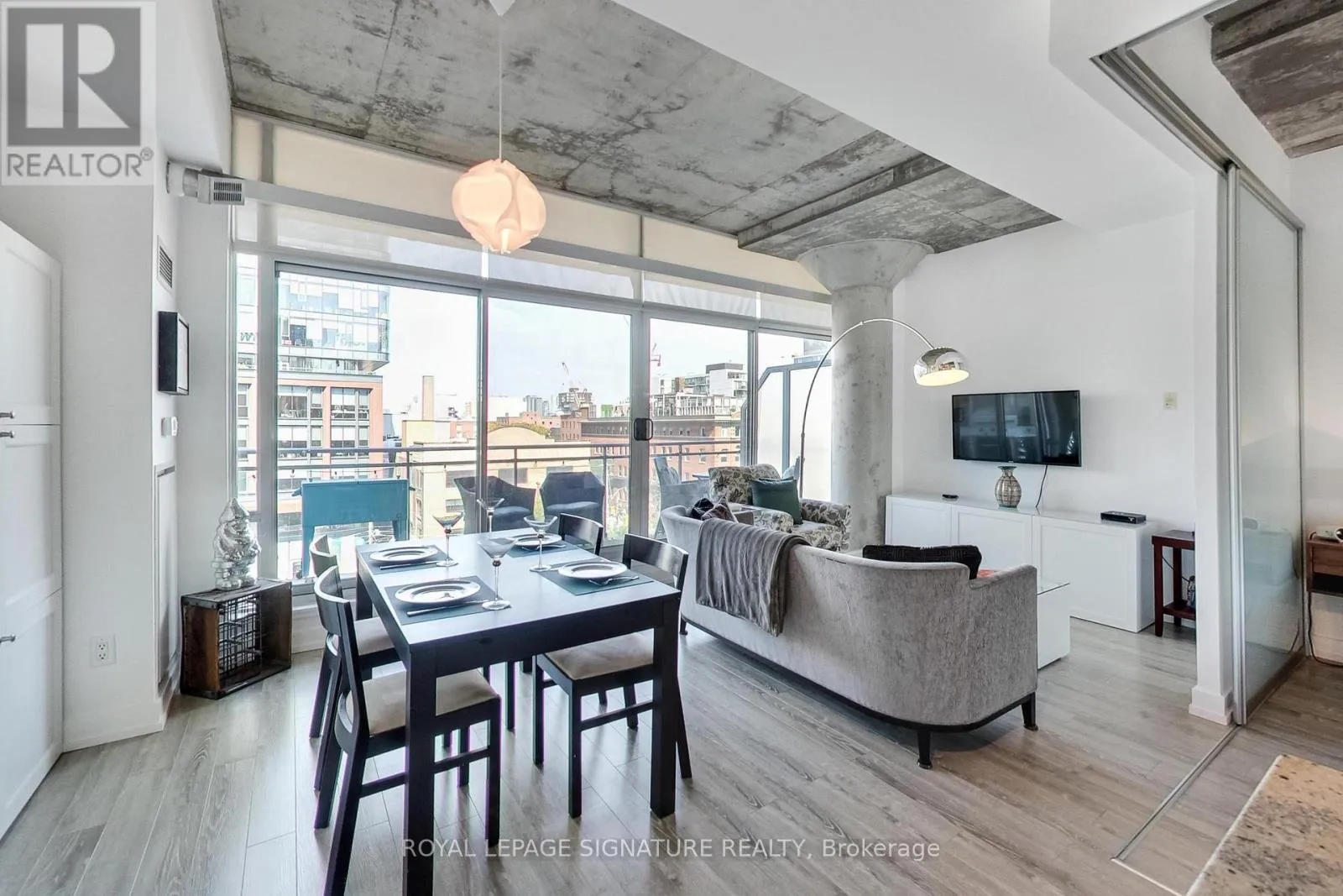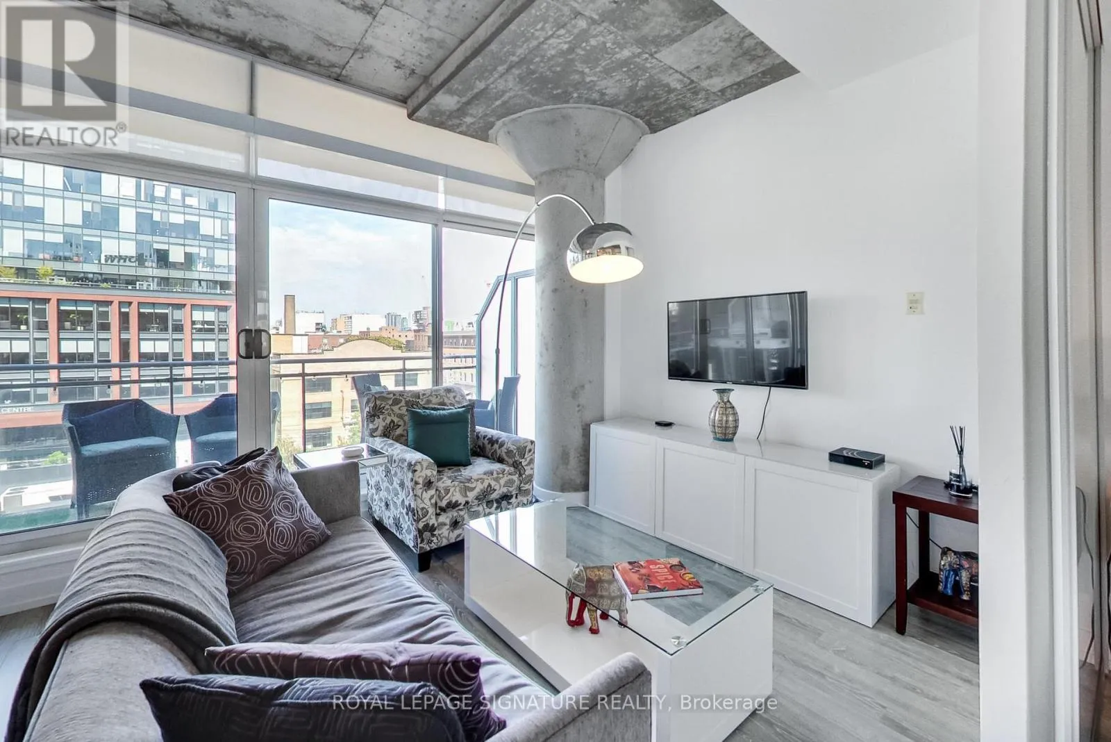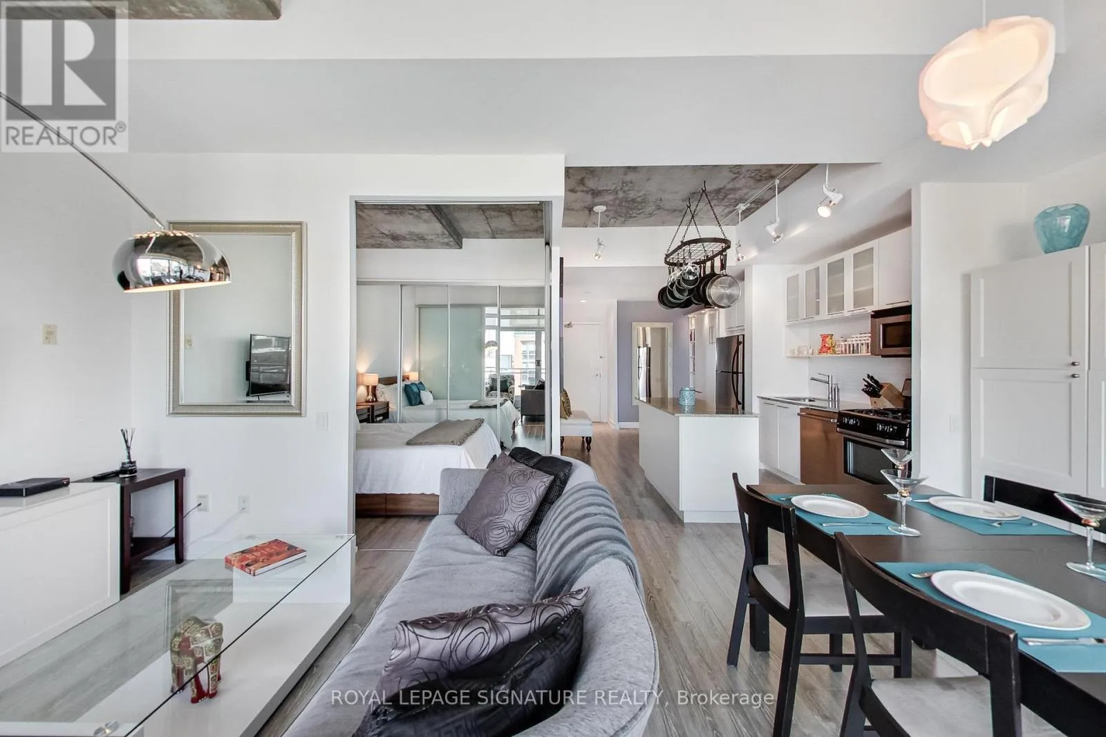 Cross Streets: King St W / Portland St. ** Directions: King StW / Portland St. Live in one of the best boutique soft lofts among all the action of King West! This bright and spacious urban loft has a very efficient, open concept 1 bedroom + den layout with a generous entertainment space. Includes 1 underground parking spot & 1 locker. 10' exposed concrete ceiling. Modern white kitchen with an island and gas cooking! Brand new flooring throughout.