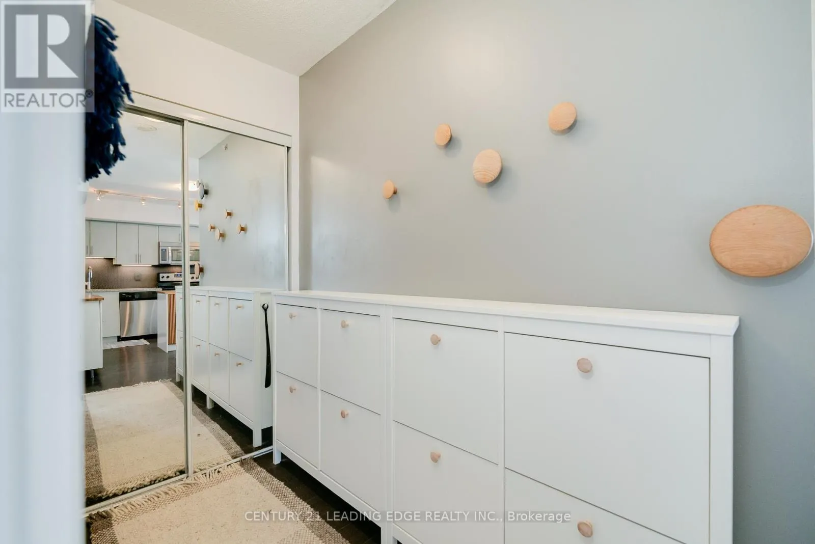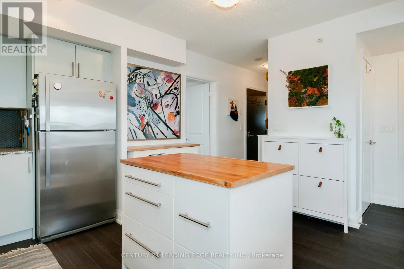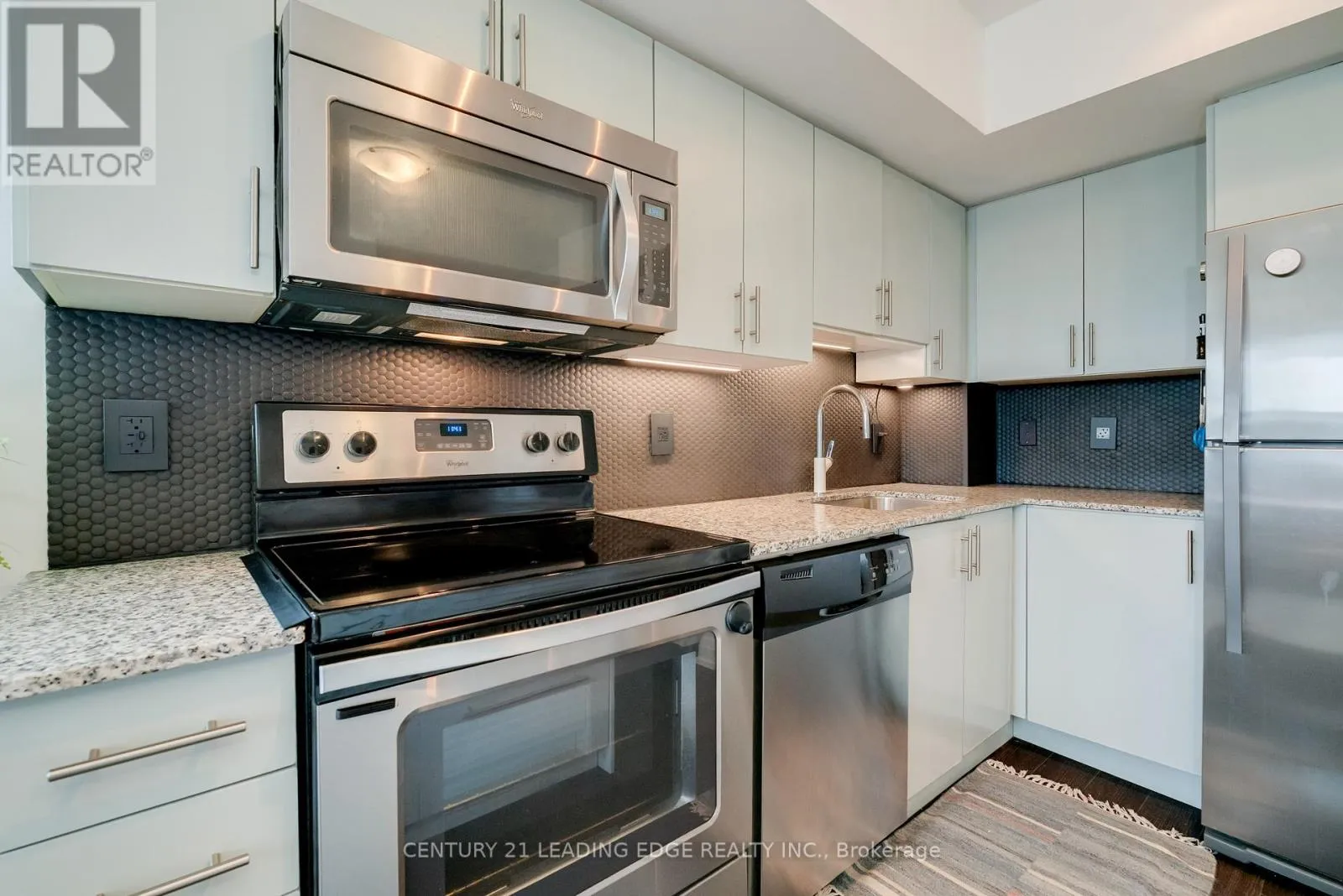 A bus stop directly outside the front door makes taking the 20 bus to a nearby subway station a breeze or jump on the 300B Bloor-Danforth Blue line night bus which arrives every 15 minutes. Don't take transit? No problem, you can park in your owned, underground parking space. This well-maintained and clean building also offers free visitor parking, a large party room and a bright and well-appointed exercise room. A package locker in the mail room keeps your deliveries safe so you never have to worry about arranging for a delivery. Being on the 6th floor, you'll enjoy the light from the windows of the north facing communal terrace. Access the terrace year-round but enjoy the patio furniture, gardens and BBQ in the warm months. This building has been well-managed, keeping the maintenance fee lower than many of the nearby condo buildings, even most of the newer buildings in the area. But at only about 10 years old, this building is still fresh and new. The many upgrades in the suite include custom island and sideboard with butcher block tops in kitchen, stylish backsplash with matching plugs and covers, new pull-down faucet, under-mount lighting. Updated vanity, cabinet and lighting in bathroom, upgraded Miele washing machine. Mirrored front closet door and bamboo slat door in 2nd bedroom.2nd bedroom is currently being used as a living room and living room being used as combined kitchen/dining room. (id:27476)
