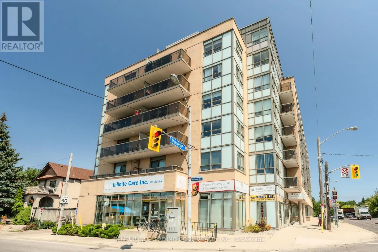 Danforth Ave & Warden Ave Look no further because this is THE ONE! Welcome home to the Terrace on Danforth. This south west facing corner suite has 2 bedrooms and views for days. With a neighbour on only one side and no unit above, you'll have tranquility as you enjoy the sunsets across the lake and the trees of Birchcliff.The Terrace Condo is located directly at the corner of Warden and Danforth Ave making it a short trip to 3 different subway stations as well as the Main Street GO station.