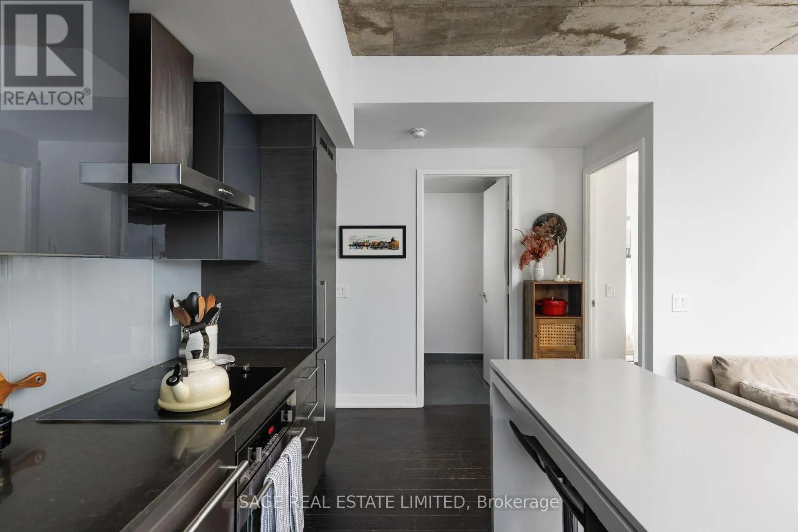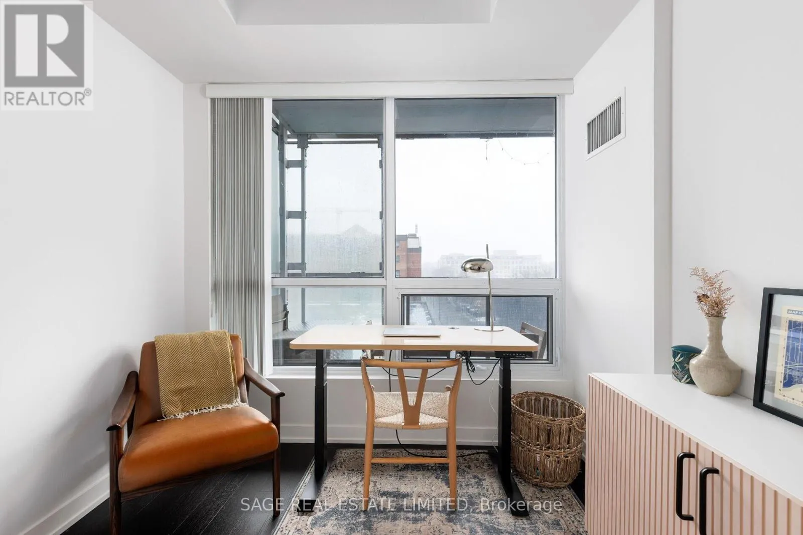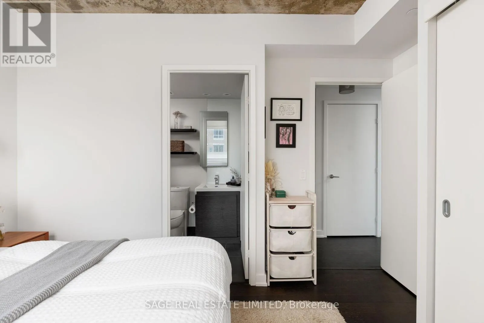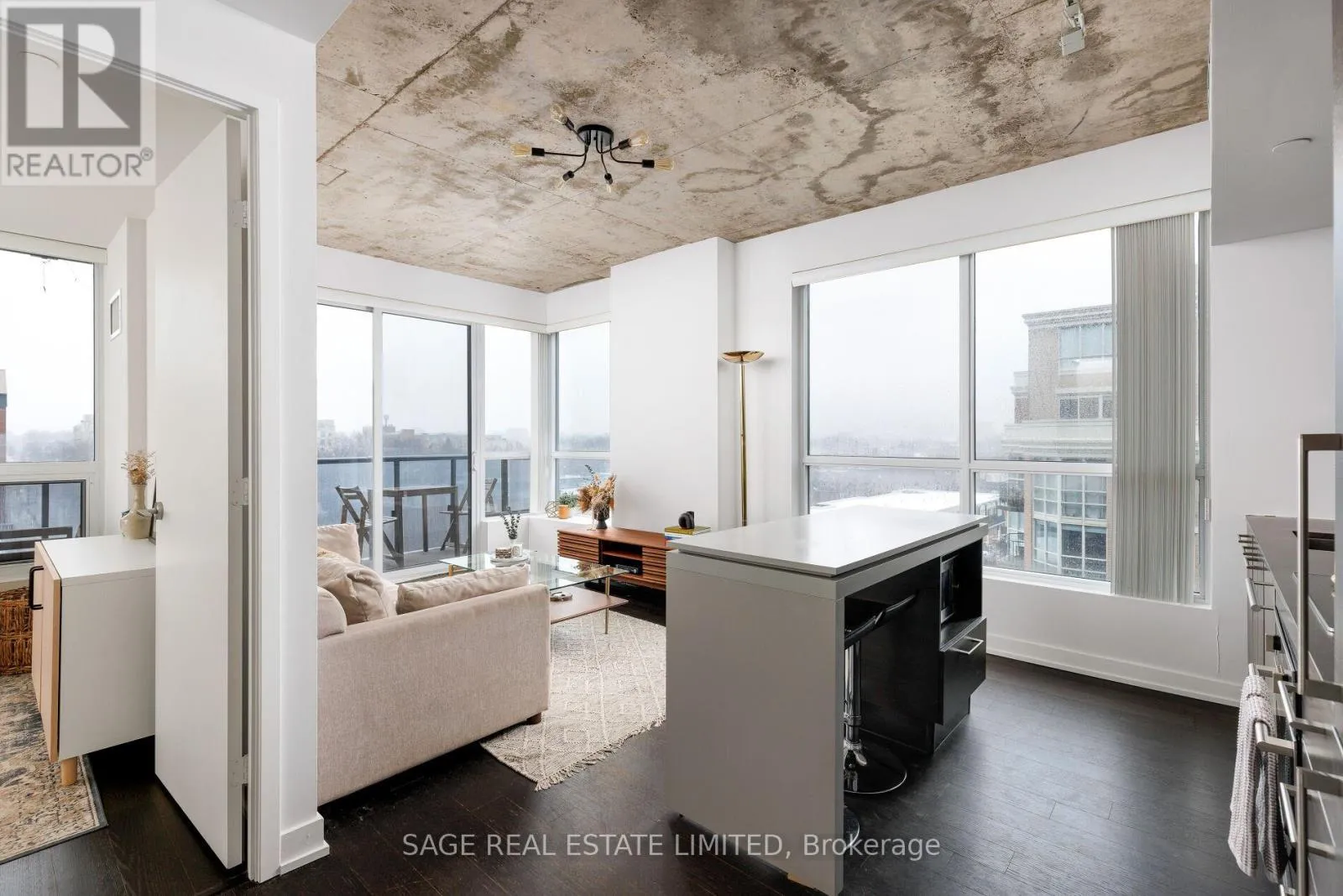 King & Shaw Bright. Airy. Effortlessly cool. This north east corner 2 bedroom, 2 bathroom suite blends modern design with a distinct loft aesthetic and exceptional everyday livability. Featuring 9 foot ceilings, exposed concrete, and expansive windows, the space is flooded with natural light and framed by leafy residential views over Queen West, lush and green in the summer, with a subtle skyline in the distance.