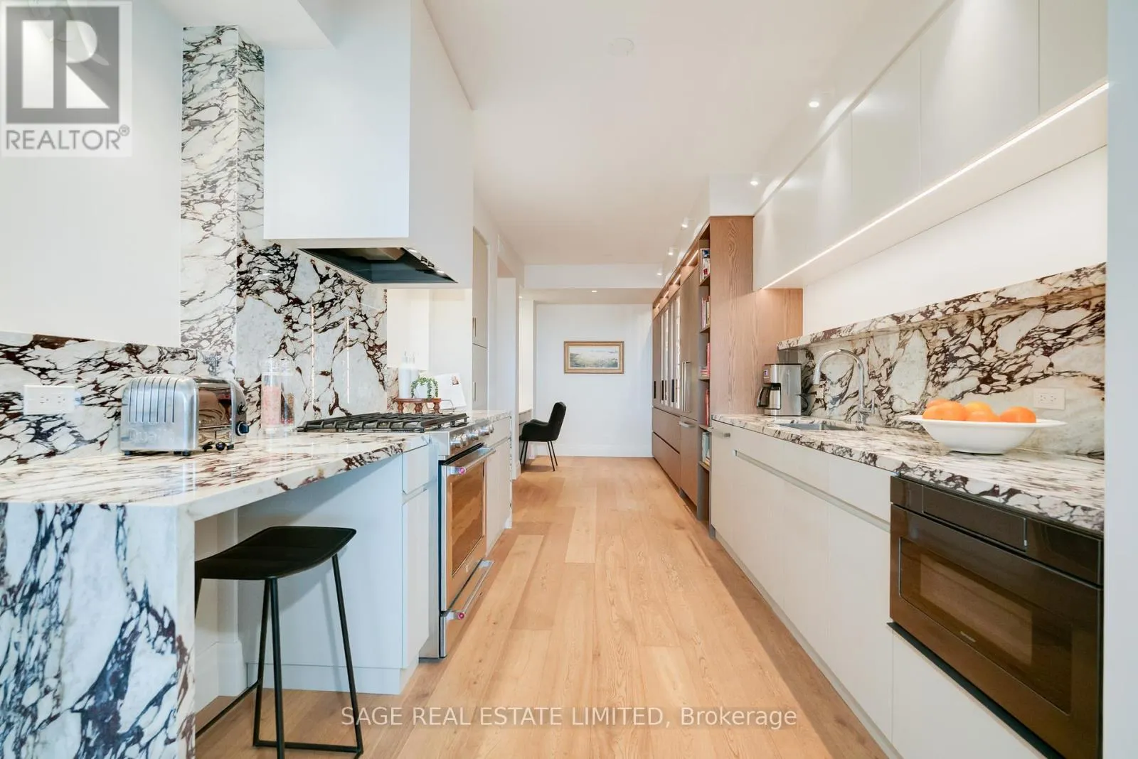 Summerhill's Gourmet Grocers, Dining, Subway Access and Specialty Shops Provide the Ultimate in Convenience. Completely Redone in 2022, This Remarkable Suite Leave Nothing to be Desired. Enter Directly from Your Private Elevator, Where You'll Enjoy the Spacious Foyer and Walk-in Coat Closet. The Bright, Open Concept Living & Dining Rooms Offer an Airy and Inviting Atmosphere. In Winter, the Sleek Gas Fireplace Creates a Cozy Retreat and the Generous Balcony - With its Own Gas Barbeque - Provides the Ideal Spot for Outdoor Relaxation and Entertaining in Summer. Professionally Designed, the Kitchen Features Premium Appliances Including a Gas Range, as well as Extensive Counter and Cupboard Space. The Den Has Been Meticulously Customized With High-Quality Built-Ins, Creating a Perfect Home Office Complete With a Built-In Desk, Shelving & Storage. Overlooking the Treetops, the Primary Suite Comfortably Fits a King-Sized Bed and Features a Generous Walk-In Closet in Addition to a Stunning, Expansive Ensuite Bathroom. The Second Bedroom Serves Well as an Excellent Guest Room, Office or Den and is Enhanced by an Abundance of Storage, Including a Wall of Built-Ins and a Double Closet. Finished in Elegant Italian Marble, the Guest Bathroom Adds a Further Touch of Luxury and Sophistication to This Delightful Space. An Unparalleled Opportunity to Own a Truly Sensational Treetop Suite With Two Side-by-Side Parking Spaces, Right at the Elevator + Two Storage Lockers, in One of the City's Most Sought-After Residences. (id:27476)