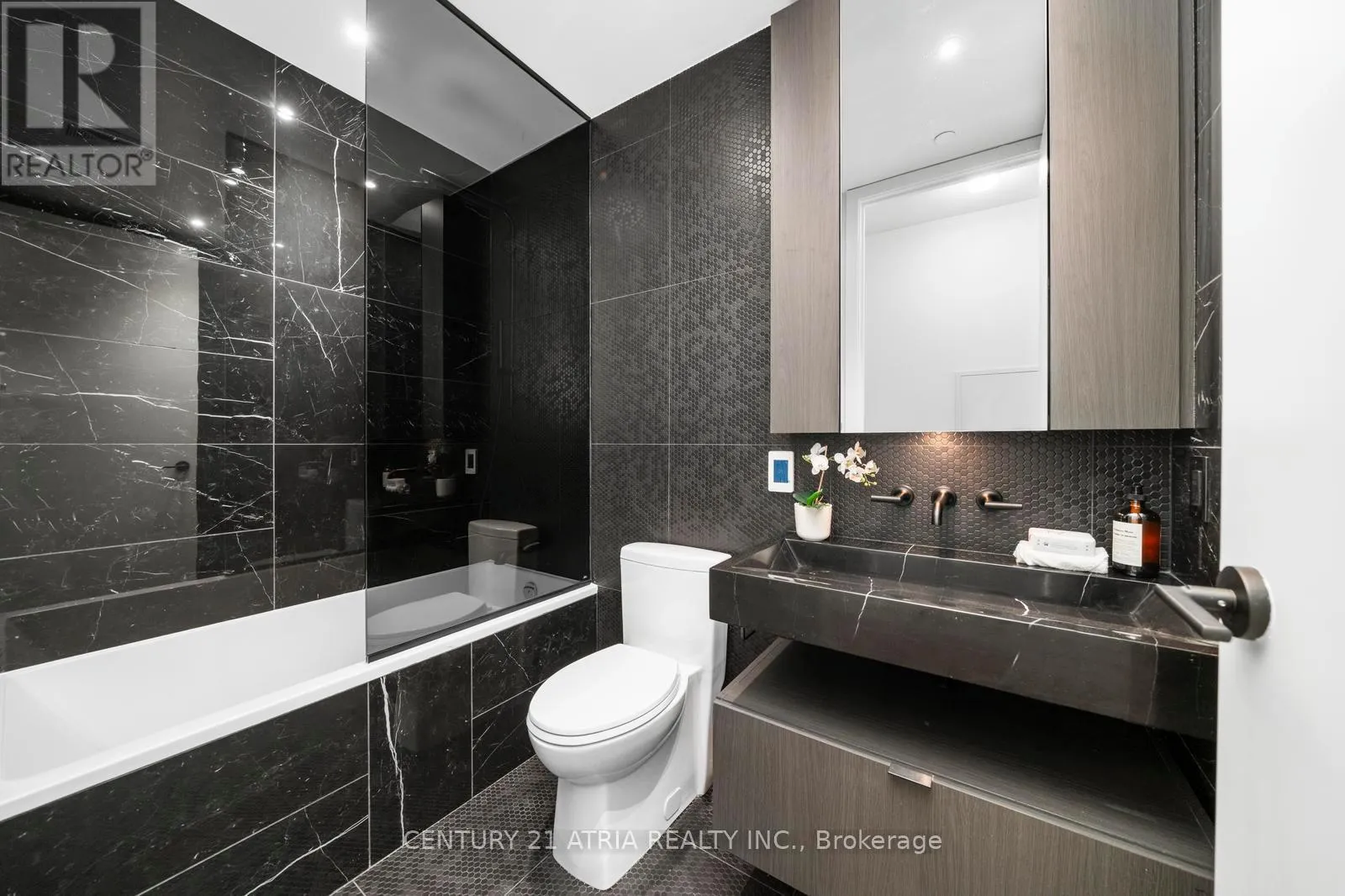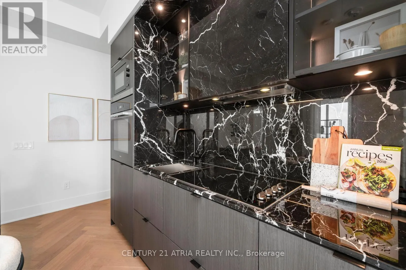 At the heart of the home is a showpiece chef's kitchen featuring Miele 30" integrated appliances, a dedicated wine cellar, and a dramatic marble waterfall island W/extended dine-in seating for six-perfect for entertaining. Premium stone continues throughout W/marble countertops, range surround& full-height backsplash. The spa-inspired bathrooms are finished to the highest standard W/one-piece marble sinks, heated floors& stone-clad feature walls surrounding a sculptural tub. Double door to the gallery-aliked balcony from living and bedroom- have your fresh breeze with the 300 degree view. Thoughtful upgrades include herringbone flooring throughout, custom Cecconi Simone tinted/illuminated cabinetry& sleek layered lighting W/pot lights & custom closet organizers. A generous primary retreat features a double closet for effortless storage. A statement residence in the heart of Yorkville-luxury, light &views without compromise. Parking included. Residents enjoy an impressive collection of amenities, including a 24-hour concierge, an elegant lobby, visitor parking, an indoor/outdoor infinity pool, a tranquil rooftop Zen garden W/ BBQs,a fully equipped gym W/spas, kid's playrm, an intimate piano lounge, a dramatic party rm& the building's signature Bordeaux lounge, Zen reflection rm, theatre rm,wifi-social lounge &business centre. Perfectly situated across from the Four Seasons Hotel, the address is surrounded by the world's most prestigious brands boutique store &acclaimed Michelin-star restaurants. The ROM, top galleries, TTC subway stations, the University of Toronto all at your door steps. (id:27476)