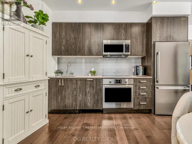THE KINGSWAY AND ASHLEY RD Welcome to 293 The Kingsway, a boutique condo perfect for young professionals, growing families, or anyone looking to downsize. This elegant 2-bedroom, 2-bathroom unit creates a modern and inviting atmosphere. The open-concept layout offers a spacious feel, and the quiet balcony overlooks a serene interior garden. Custom kitchen, with quartz countertops and sleek shaker cabinets, is perfect for any home chef, complete with full-size stainless steel appliances.