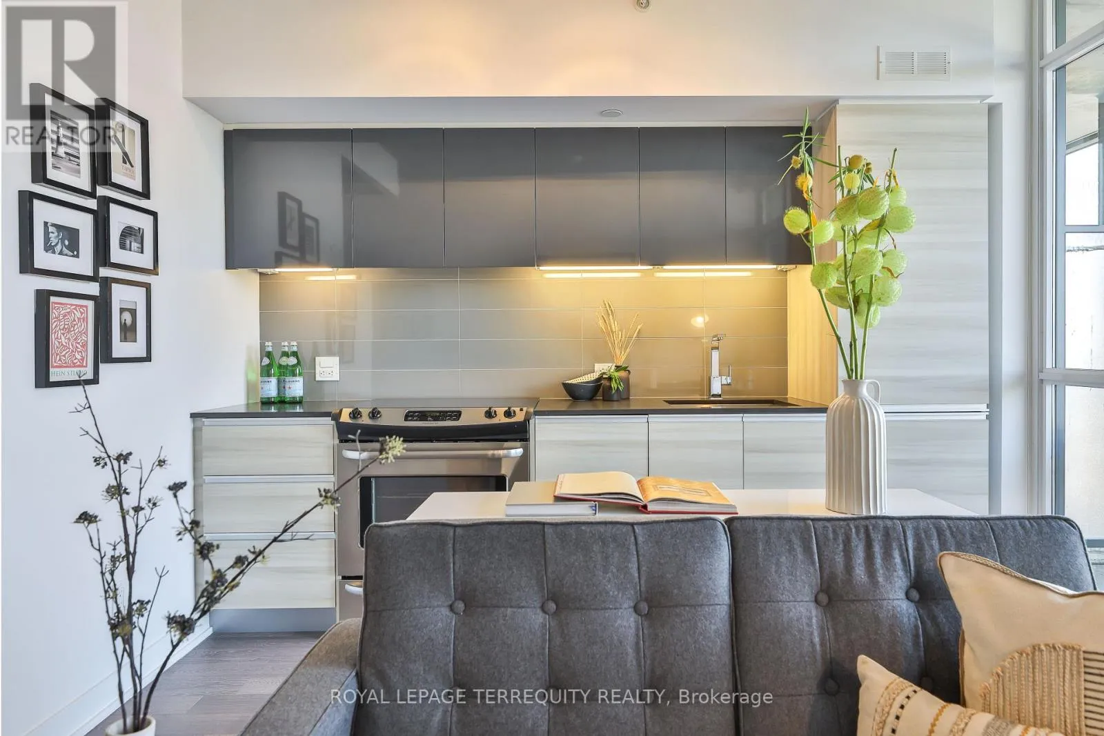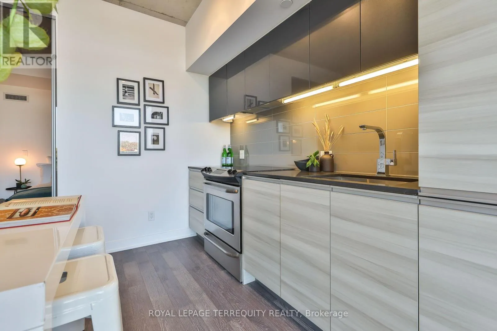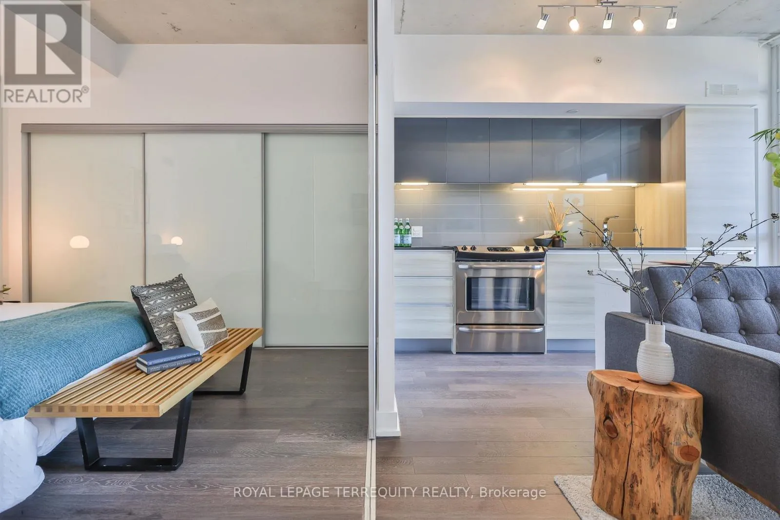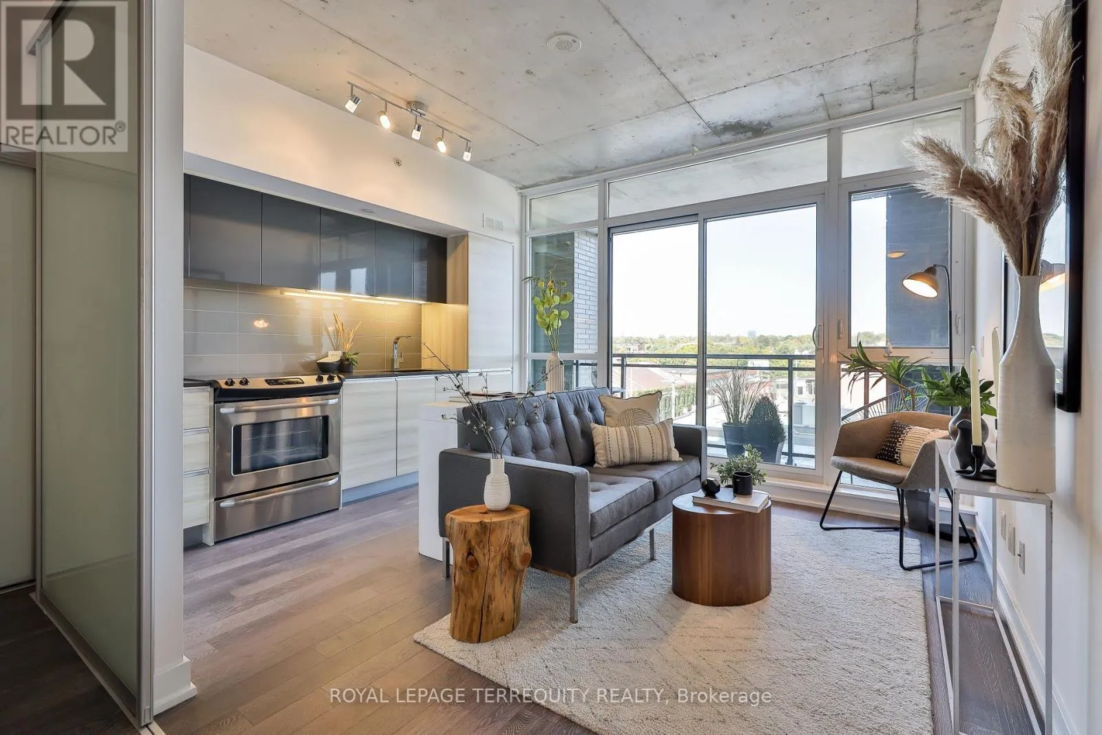 Cross Streets: Carlaw Ave & Dundas St E. ** Directions: S of Carlaw Ave. Amazing Opportunity @ The Carlaw! Bright, airy, and impeccably styled loft, this turn-key suite delivers smart design with a cool, confident edge. Small but mighty, the layout is clean and intentional - a contemporary integrated kitchen, private bedroom, exposed concrete ceilings, crisp white walls, and floor-to-ceiling windows that flood the space with natural light.