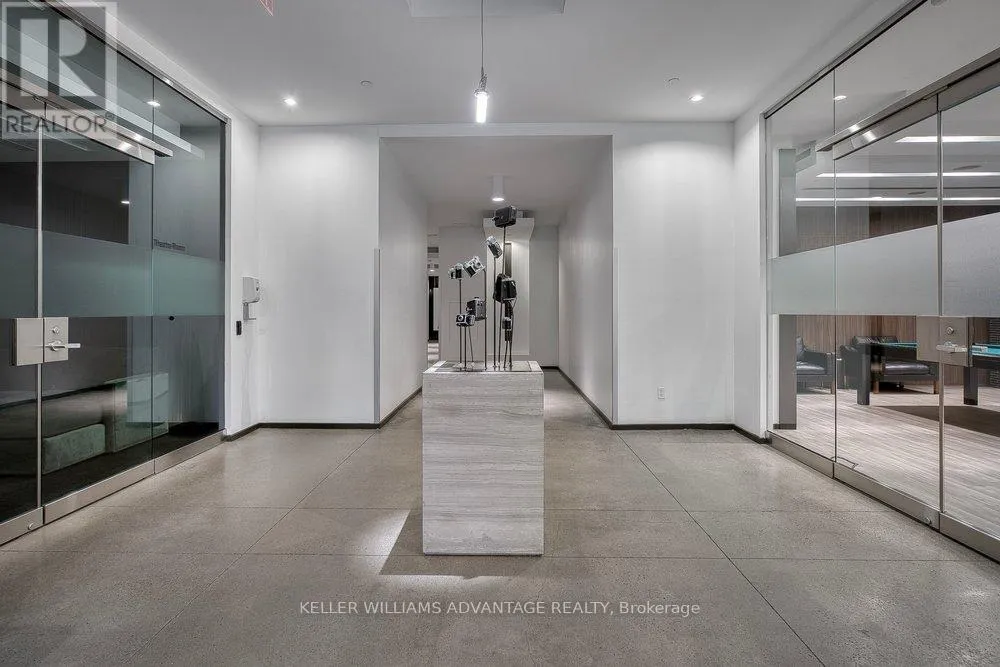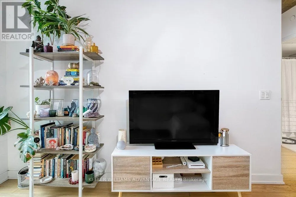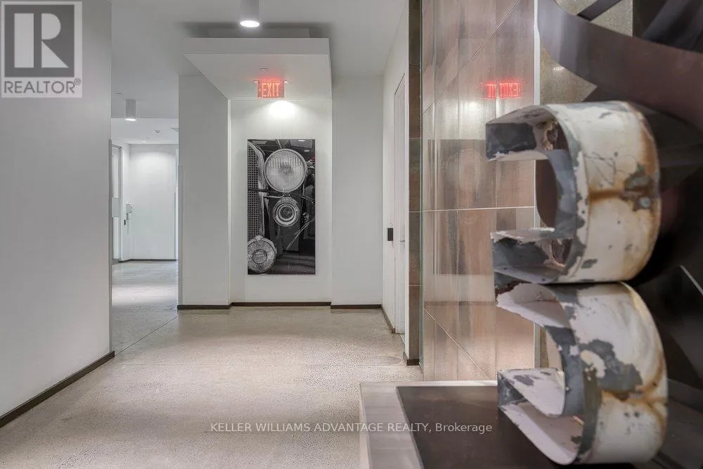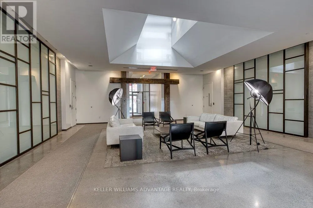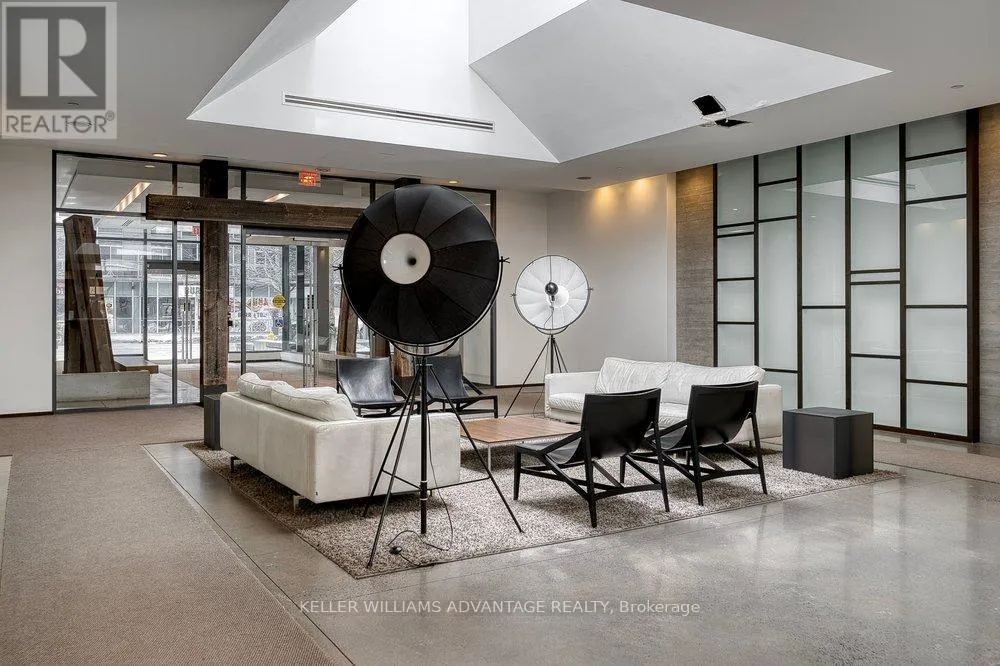 King & Shaw Spectacular 1 bedroom, 1 bathroom condo available for sale in the heart of King West. Bright, spacious unit that's brimming with gorgeous detailing: Soaring 9 foot exposed concrete ceilings, exposed brick wall, and an enormous balcony spanning the entire unit, offering breathtaking views. Wide-plank wood flooring throughout. Sleek European-designed modern kitchen with built-in stainless steel appliances, stone counter-tops, a panel fridge, and a centre island.