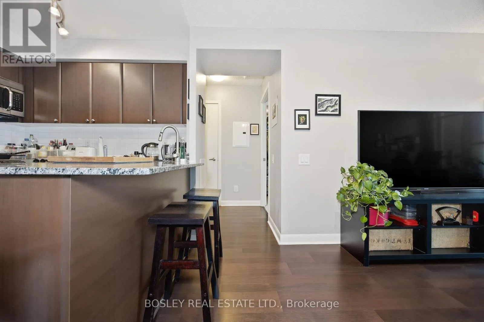 The bedroom includes both a walk-in closet and a second closet, offering far more space than most condos of this size. An additional storage locker near the parking space gives you even more room for luggage, seasonal items, or sports gear. Inside the unit, the layout makes excellent use of every square foot. The kitchen provides generous counter space for cooking and meal prep, while the breakfast bar and separate dining area give you options for quick meals or hosting friends. Another welcome bonus: no neighbours living above the unit, adding a level of quiet and privacy that's hard to find in condo living. Located at 525 Wilson Ave, the building puts transit almost literally at your doorstep. Wilson Subway Station is about a two-minute walk away, making commuting downtown, midtown, or up to Vaughan simple and predictable. Drivers will appreciate quick access to Allen Road and Highway 401. Daily errands are just as convenient. Costco, Downsview SmartCentre, No Frills, Yorkdale Mall, and a wide variety of restaurants and takeout spots are all nearby. Residents enjoy a full range of amenities including an indoor pool, fitness centre, visitor parking, BBQ area, and 24-hour concierge. A smart layout, great storage, and unbeatable connectivity make this a one-bedroom that truly stands out. (id:27476)