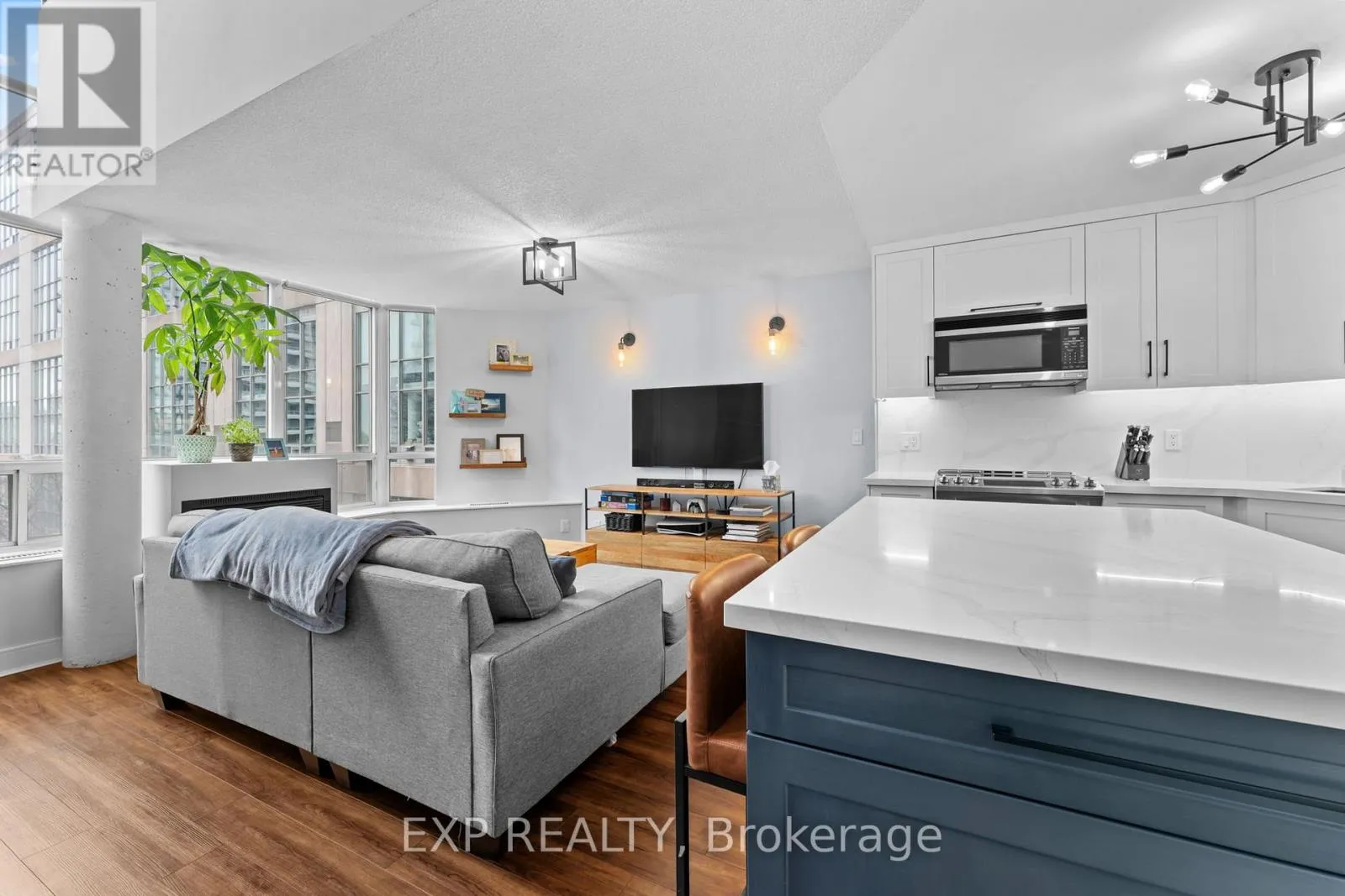 Cross Streets: Manitoba St & Grand Ave. ** Directions: QEW Parklawn Rd Exit to Legion Rd N to Manitoba St. Welcome to a fully renovated two-storey, south-facing loft offering sweeping lake views and access to a beautifully landscaped rooftop garden terrace, where over 900 sq ft of open-concept living unfolds beneath huge 17-foot ceilings and dramatic floor-to-ceiling windows, creating the feeling of a private townhouse in the sky within a coveted heritage building.