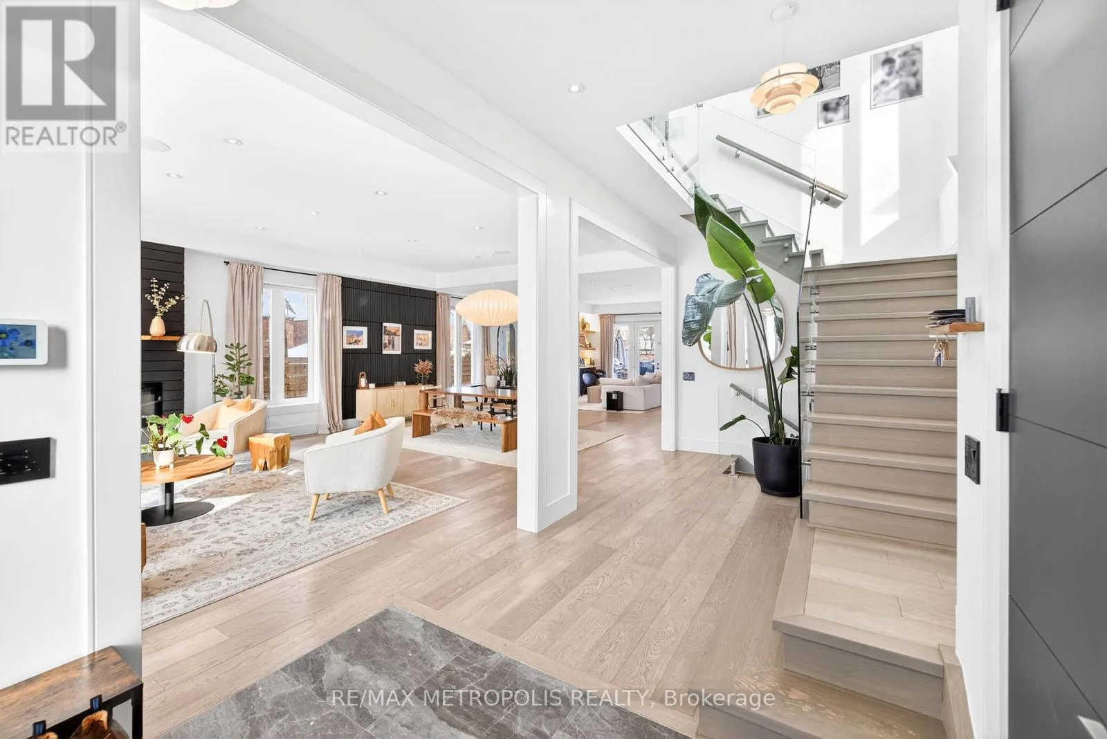 DANFORTH RD / WARDEN AVE Custom-built, architectural masterpiece, approximately 4,300 sq ft of impeccably finished living space where no detail was overlooked and no expense spared. A true showpiece featuring soaring 43-ft wide lot and a dramatic atrium foyer combined with an open concept look, the home is anchored by a chef-inspired kitchen with a waterfall island and walk-in pantry. Premium finishes throughout include hardwood floors, an integrated speaker system, smart home technology and an EV charger while a striking glass staircase adds modern elegance.