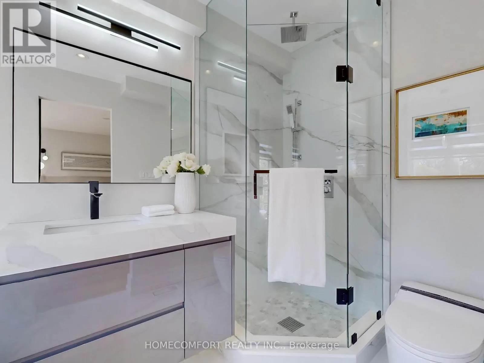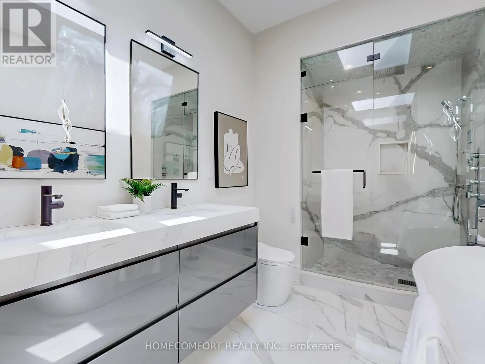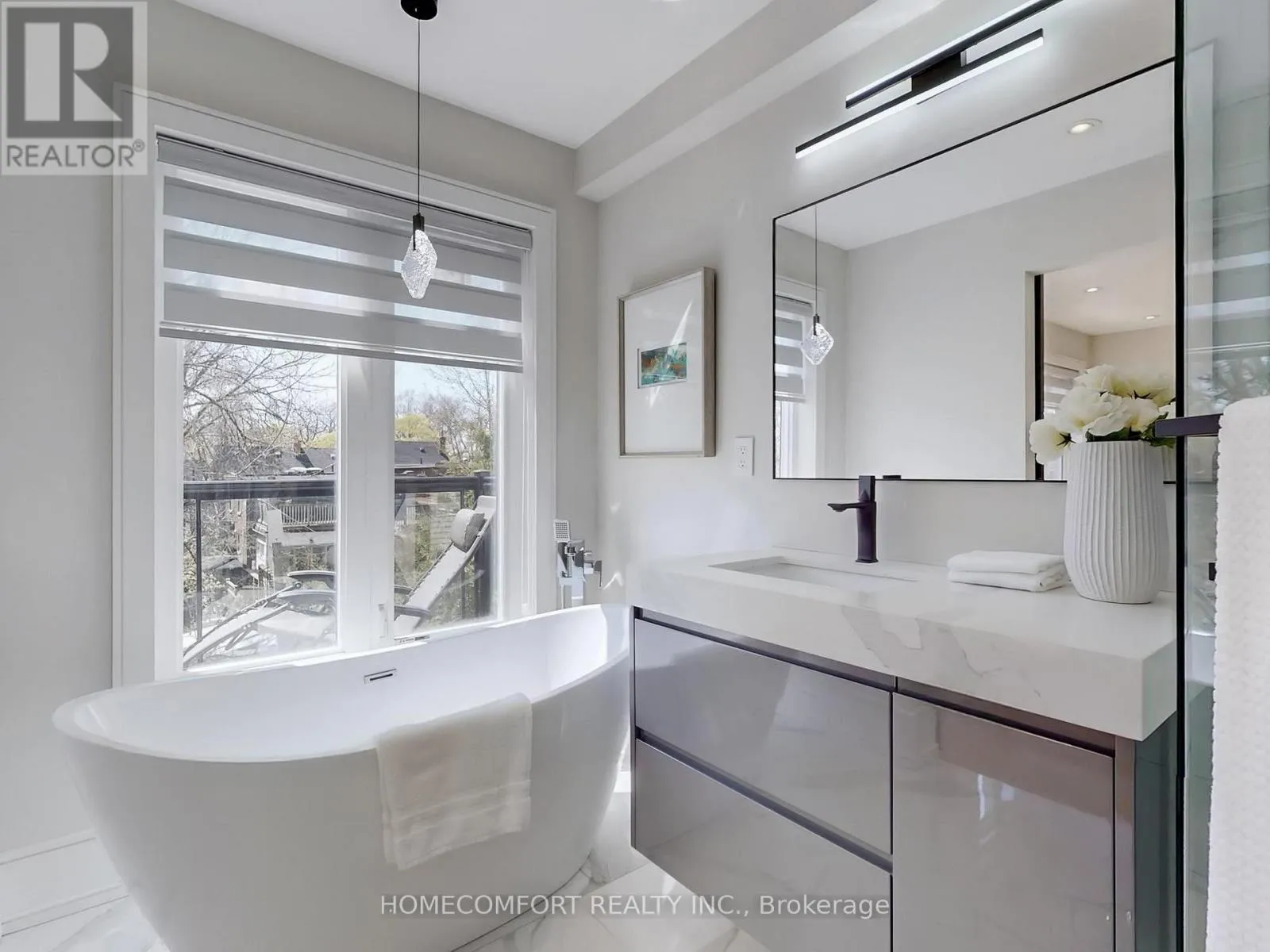 Fiber Glass Fire Recess Board underneath the Modern Stucco Facade securing high level fire safety, Weeping Pipe and Sump Pump Drain System drive away wet basement worries. * Extremely high Third Floor 9'5" ** 3 Level Sundecks** High end grade Mahogany hardwood exterior door. Step into the best-in-class interior Luxuriously appointed with: Solid wood custom Interior Doors & High-Quality hardware throughout *Open concept Living/Formal Dining room. *Powder room with Smart Toilet. *Modern Kitchen designed boasts an 8ft Center Island, Top of the line Wolf/Subzero appliances. The cabinet panels feature top quality piano lacquer finish. *Family Room Stone Slab decorated Gas Fireplace and a Floor-To-Ceiling Patio Sliding Door walk-out to a Patio. 2 Separated B/I Bluetooth Celling Speaker Systems in Main Floor and Lower Level. Open Rising Staircase with glass railing & Skylight above. Second-Floor features: 3br all have Ensuite and big closets; Laundry Room with Sink. *Third-Floor Primary Bedroom with Extraordinary Finishes, 2 Walk-In Closet provide massive storage spaces , 6-Piece Ensuite with Smart Toilet, Digital display Faucets, Freestanding Bathtub, Italian Shower Kits(2nd floor bathrooms as well). *A Private Office has 2 Walk-In Closet can be converted into 5th bedroom. *Lower-Level In-law Suite Features: Sun filled Great Room only a few steps up to the Backyard, Kitchen, 2 Bedrooms, Bathroom and Laundry. Additional highlights include: Security Camera System, Smart Door Bell System, Centre Vacuum rough in. Don't miss the chance to own this one-of-a-kind gorgeous home in one of Toronto most sought-after neighborhoods. (id:27476)