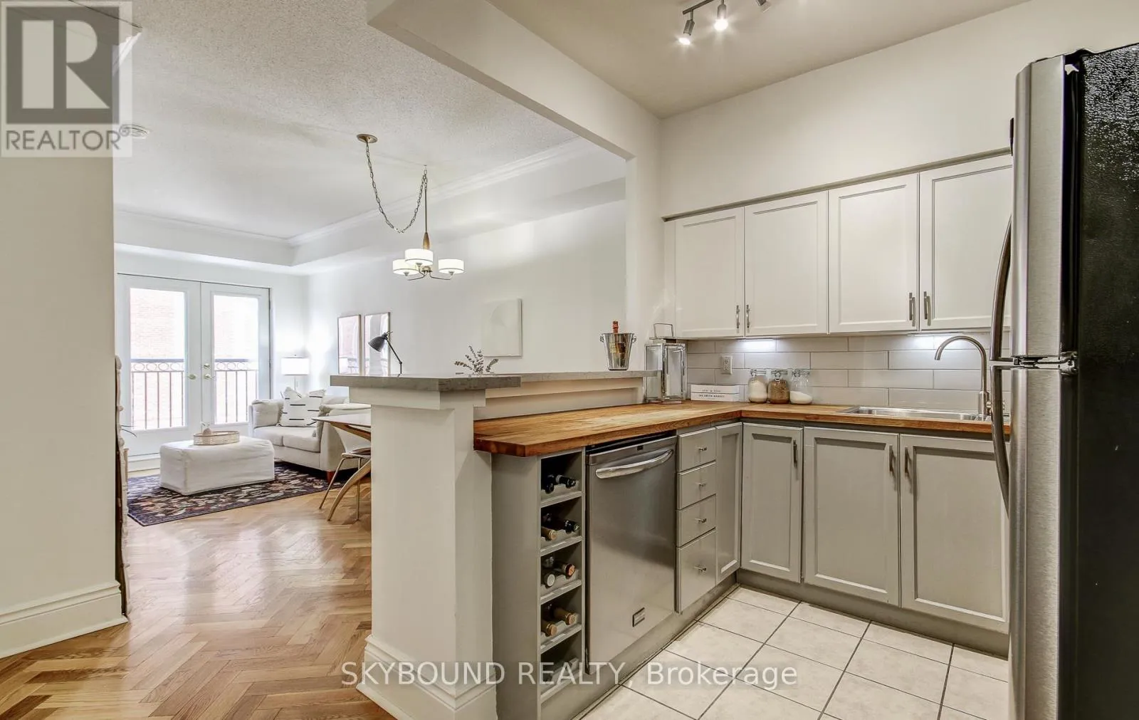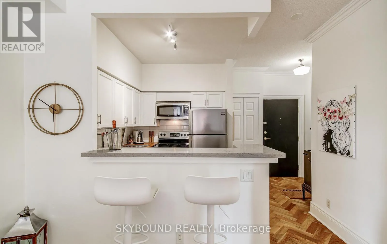 Cross Streets: Jarvis and Richmond. ** Directions: Hey Google... Welcome to the French Quarter! Parisian-inspired classic charm, literally three blocks from St Lawrence Market! This perfect 1-bedroom suite has the layout we all dream of - 9' ceilings, an actual kitchen with butcher-block and quartz counters, full-size stainless steel appliances, and plenty of prep space...Just what you need to cook up a storm! There's ample room for a real dining table to host those French-themed dinner parties, a living area that comfortably fits a large sofa with room to spare, and a great-sized bedroom (with a real door) with custom-built bookcases and a triple-width deep closet.