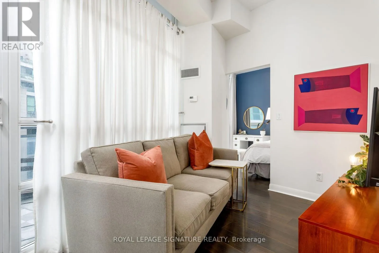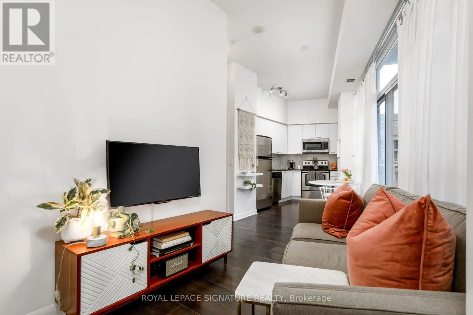 Cross Streets: Bathurst/Lakeshore. ** Directions: Off Bathurst Street. The perfect starter condo does exist - and it's right here at 15 Bruyeres Mews. Unit 705 checks all the boxes: a bright, modern one-bedroom with a proper bedroom (window + closet included...not one of those interior 'den-style' bedrooms). High ceilings and floor-to-ceiling windows give the space an airy, elevated feel, while the layout makes everyday living easy.