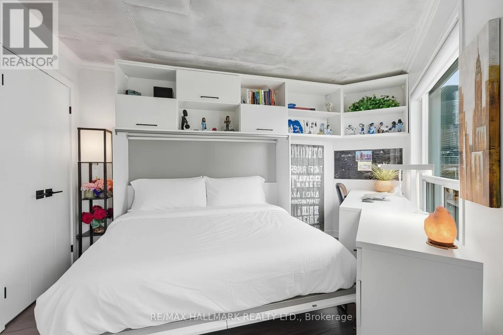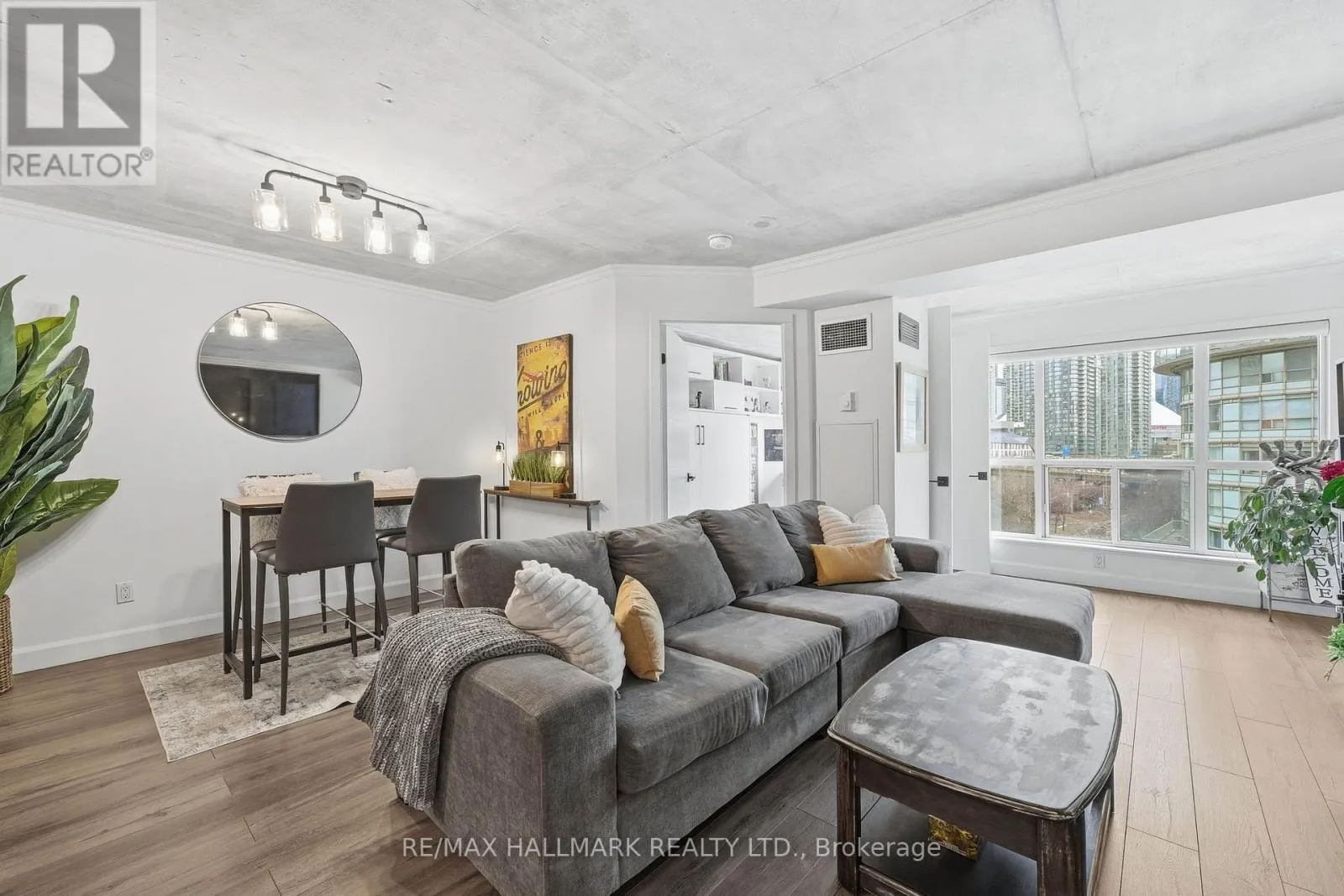 Cross Streets: Queens Quay West & Dan Leckie Way. ** Directions: South on Dan Leckie Way, West on Queens Quay West. This Queens Harbour 2 bed suite, tucked along Toronto's downtown waterfront, blends nearly $95K in modern upgrades, custom finishings, and exposed concrete ceilings for a subtle loft-like feel. The layout is thoughtfully designed, with defined living spaces, separated bedrooms, a fully renovated shared 4pc bath, and two walk-outs to a southeast-facing balcony with lake and city views.