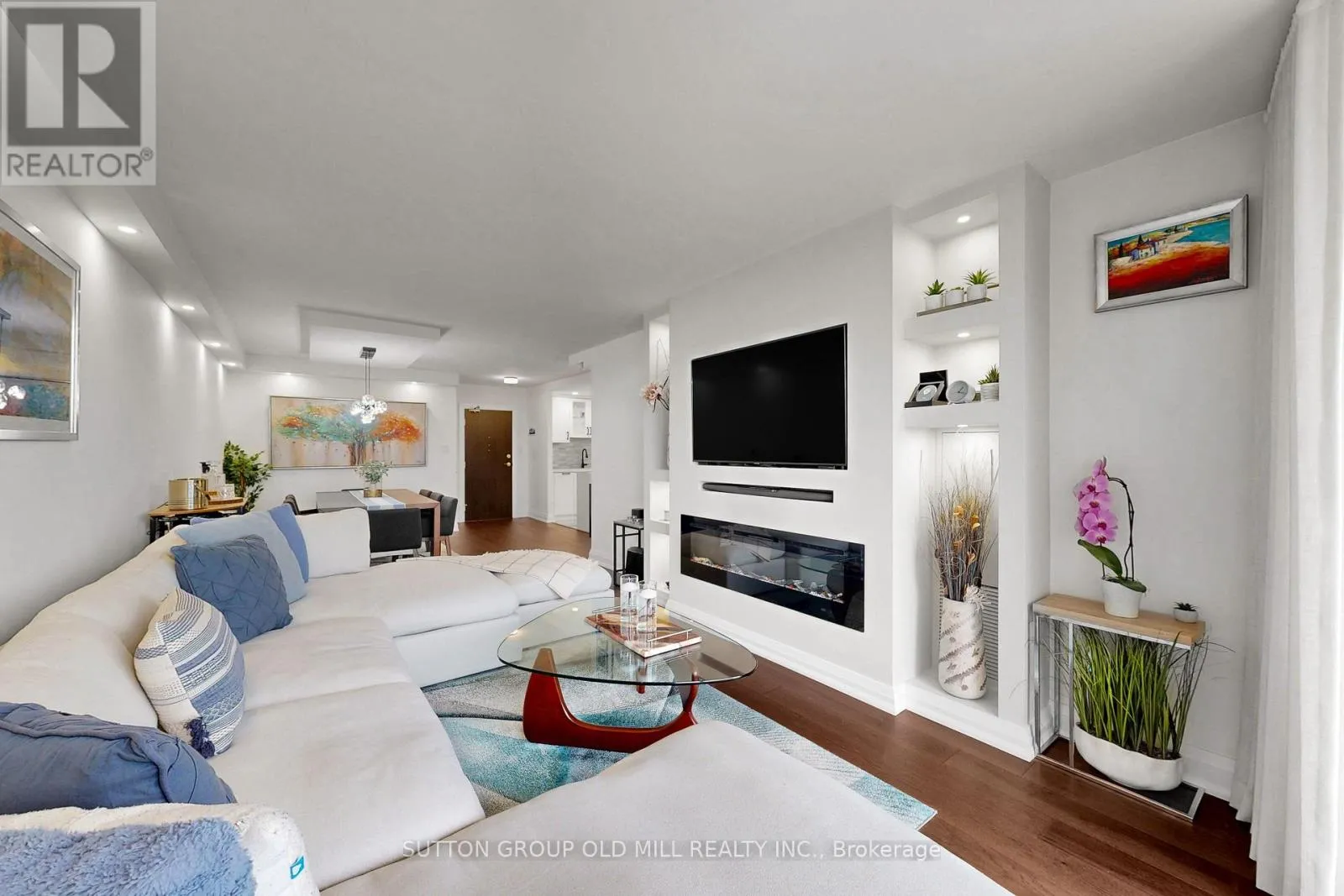 A Bright Living Room Overlooking Balcony Stands As A Statement In Its Own Right - Boasting Exquisite Custom Built-In Entertainment Wall With Electric Fireplace & Pot-Lights, Offering A Quiet Relaxed Evenings. A Generous And Private Primary Suite, Quietly Set At The Rear Of The Home, And Features Wall To Wall Closet And 3-Piece Ensuite. Two More Generously Sized Bedrooms And Luxurious Bathrooms, Rich Engineered Hardwood Flooring Throughout, Pot Lights, Custom Built-in Closet Organizers in Every Bedroom, Custom Window Coverings And Blinds, New Trims And Doors & Smooth Ceilings Are Just A Few Of The Highlights Of This Move-In Ready Unit Which Truly Redefines Luxury And Everyday Comfort. Extra Storage Is Thoughtfully Incorporated In The Laundry Room And Locker, Ensuring Both Function And Ease. Excellent Schools, Convenient TTC Access, Shopping & Major Transit Are All Just Steps Away. Must Be Seen To Be Fully Appreciated. Newly Renovated Recreation Center Offers An Impressive Array Of Amenities Including: Indoor And Outdoor Pools, Sauna, Large Gym With Plenty Of Equipment, Party Room, Ping Pong, Golf Simulator, Squash Court, Basketball Court And Tennis Court, And Outdoor Playground (id:27476)
