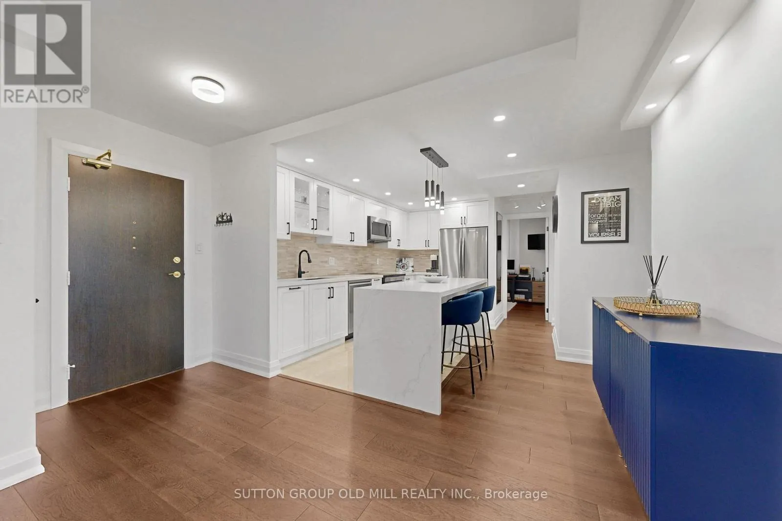 Cross Streets: Burnhamthorpe & Mill Rd. ** Directions: Burnhamthorpe Rd/Mill Rd. Urban Living At Its Finest! Absolutely Gorgeous 3-Bedroom 2-Bath Corner Unit That Seamlessly Blends Luxury Style And Comfort With Exceptional Versatility Nestled In Markland Woods, One Of Toronto's Most Desired West-End Neighbourhoods! Fabulously Updated From Top To Bottom With Superior Finishes And Attention To Details Throughout! This Beauty Offering Over 1,100 SF Of Modern Living Space Including The Expansive Custom Designed Chef's Kitchen Showcasing Top-Of-The-Line Appliances, Oversized Waterfall Island, Sleek Quartz Countertops Flowing Into Bright And Airy Open Concept Living & Dining Area Perfect For Entertaining And Everyday Living.