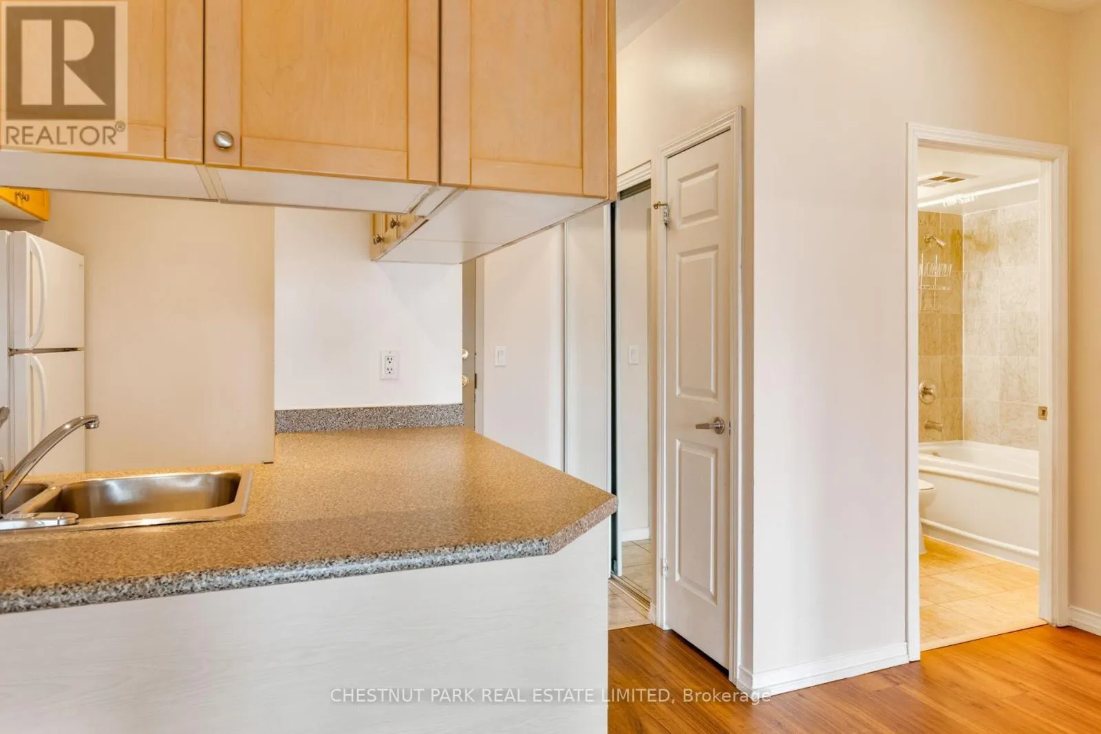 The spacious bedroom also features its own balcony walkout and includes a large double closet with easy access to the 4 piece bathroom and ensuite laundry. The large balcony overlooks Dr. Lillian McGregor Park offering beautiful greenspace. 1 car parking and 1 storage locker are also included and hydro, heat and water are included in the maintenance fees. The building offers fabulous amenities including a concierge, gym, media room, sauna and rooftop deck. Walk out your front door to every amenity imaginable with transit, shopping, dining and entertainment at your doorstep. Easy access to the Financial District, major hospitals, universities and so much more. (id:27476)