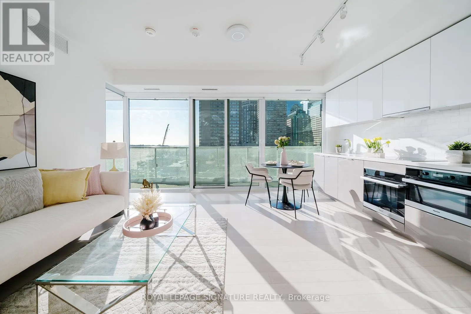Step out onto the full-length balcony from the living area, perfect for morning coffee or evening relaxation.The modern chef-inspired kitchen features premium integrated Miele appliances, complemented by tasteful upgrades including automatic curtains for added comfort and convenience.Residents enjoy world-class amenities, including a 24-hour concierge, outdoor pool, fully equipped fitness centre, party and media rooms, and library. Ideally located where the city meets the lake - steps to transit, Union Station, Financial District, St. Lawrence Market, Scotiabank Arena, Rogers Centre, shops, groceries, and everyday essentials.Experience the ultimate in sophisticated lakefront living. Monthly maintenance fee includes Rogers unlimited high-speed internet. (id:27476)