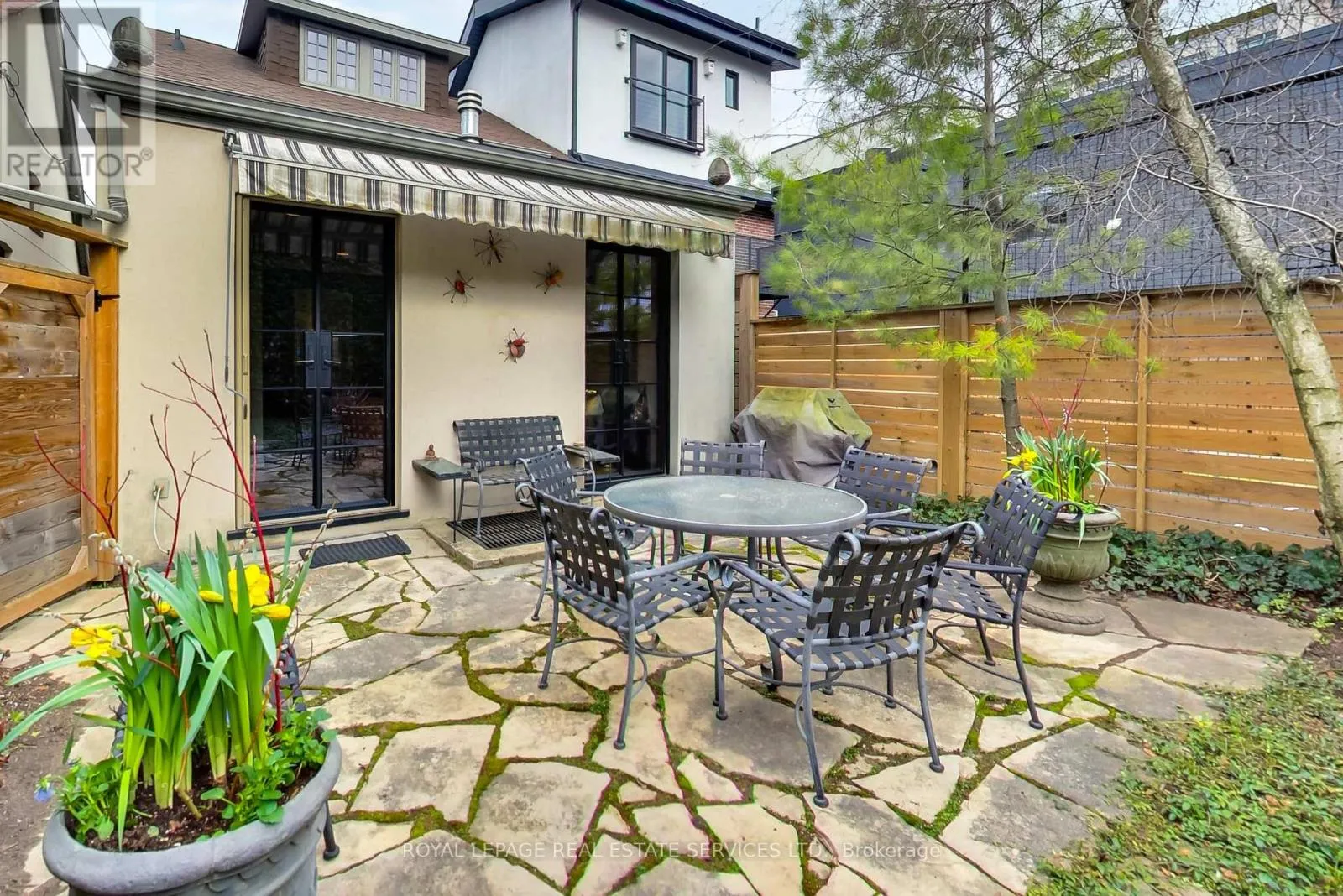 The spacious living room with decorative fireplace flows into a formal dining room, creating a sophisticated setting for entertaining.At the rear, a stunning family room addition with exposed brick, gas fireplace, powder room, and striking black wrought-iron French doors opening to the private garden. The bright kitchen offers excellent storage, black stone countertops, white subway tile backsplash, stainless steel appliances, and an eat-in area with lovely sight-lines. Upstairs, the generous primary bedroom features wall-to-wall closets, built-in drawers. A spacious second bedroom overlooks the streetscape, while the family bath includes a glass shower, soaker tub, and vanity storage. A spiral staircase leads to the finished third-floor loft, a bright and versatile space with good ceiling height, skylight, large window, and knee-wall storage, and lovely Casa Loma views. The lower level includes a separate side entrance, a 3-piece bath, excellent storage, and flexible living space perfect for guests, teens, a home office, or nanny/in-law potential. Outside, the rear garden feels like a hidden escape in the heart of the city, with flagstone, mature plantings, and exceptional privacy. Live in the heart of the city at the foot of Casa Loma. Steps to Dupont Subway Station, well positioned between Downtown and Midtown- walking distance to the shops and restaurants and amenities in Yorkville, the Annex and Yonge and St Clair. 15min drive to the Allen Expwy. Top rated public and private schools including Brown & Deer Park. (id:27476)