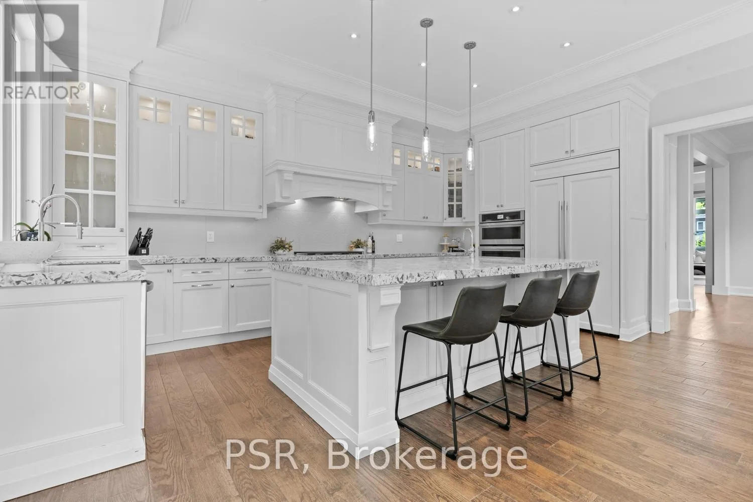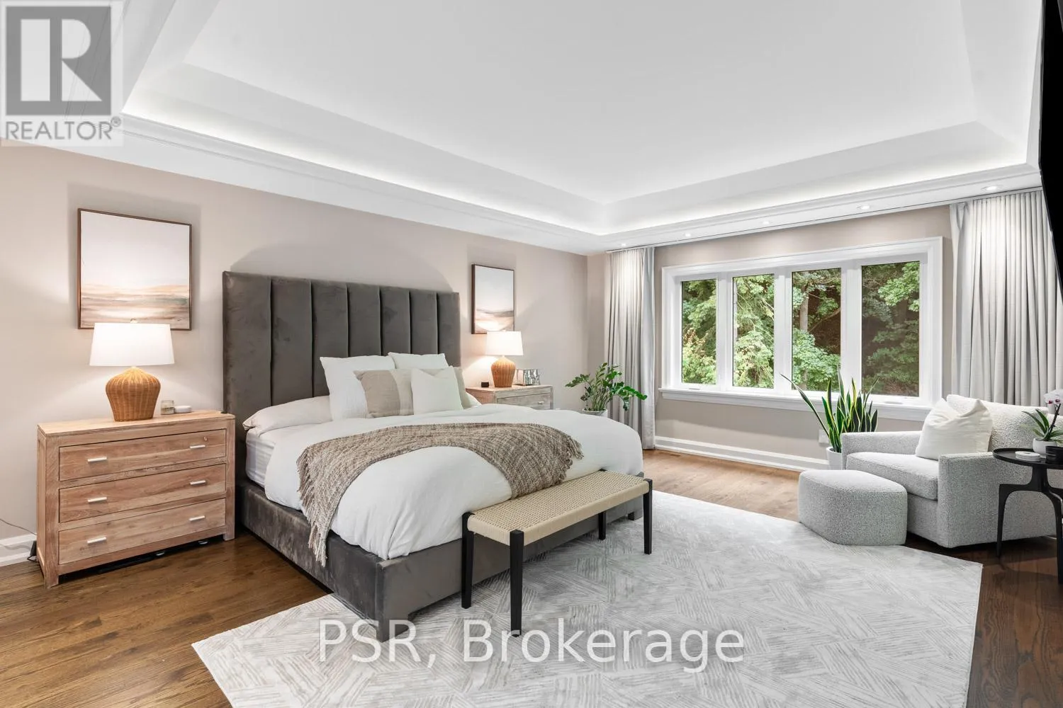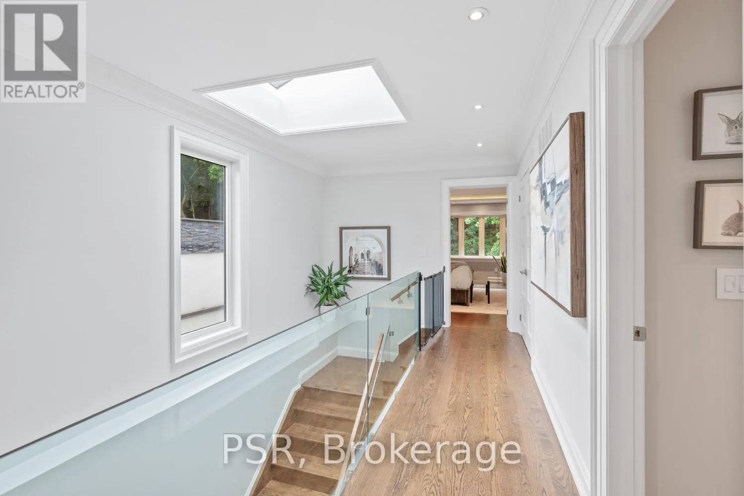 Bloor / South Kingsway This stately Swansea residence, gracing an impressive 190ft-deep lot, offering nearly 4000 square ft of luxurious living space, is a masterpiece of modern sophistication and precision craftsmanship. One of Toronto's most sought-after communities, the vibrant gardens lead to an exquisite granite facade, accentuated by a warm and commanding red-oak door beneath an archway. Step inside, and experience the tranquility of triple-glazed windows, the skylight illuminating the stairwell, the sleek glass railings, the solid oak and porcelain floors, the meticulous millwork, and the recessed ceilings.