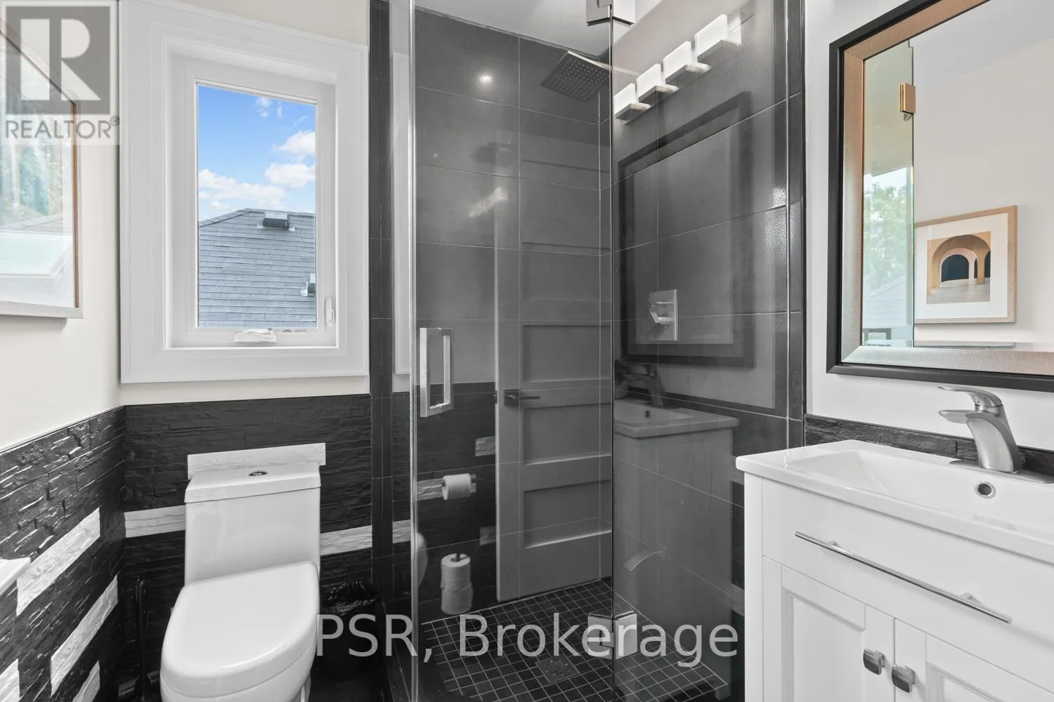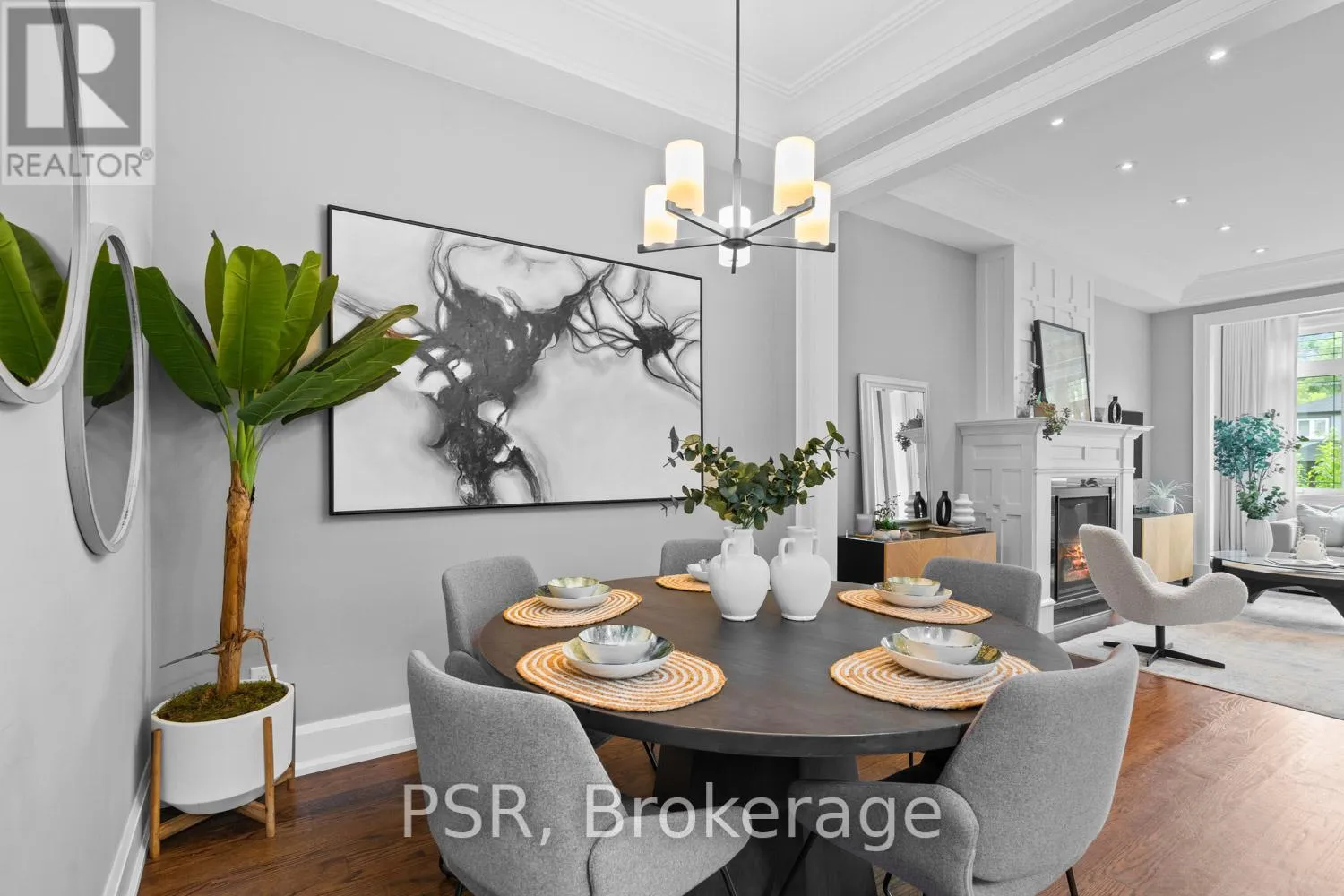 The main floor's soaring 10ft-ceilings and intimate fireplace enhance the spacious, well-defined living and dining rooms. The resplendent kitchen is a culinary haven, featuring quartz countertops, a grand centre island, an origami-inspired backsplash, a 6-burner gas range, and a fireplace warming the kitchen-side dinette and inglenook. Custom 8ft pocket doors transform the kitchen into a private drawing room, adding an elegance to evening gatherings. Upstairs, every bedroom boasts 9ft ceilings, and every bathroom is appointed with contemporary flair. The palatial primary suite is a serene retreat, complete with a customized walk-in closet with a skylight, micro-forest views, and a lavish 5-piece ensuite designed to pamper and impress. Downstairs offers 8ft ceilings, in-floor heating, a separate entrance, a stylish 4-piece bath, two expansive rec rooms-with one designed for effortless division for more rooms. A roughed-in kitchen ready to accommodate caterers, a nanny, or visiting friends and family. The rear grounds are a true oasis, with towering canopies, open skies, playful chipmunks, and blue jay songs. Enjoy the gas-line barbecue on the deck, terrace lounging, and fireside dining. This urban sanctuary is surrounded by iconic parks, serene waterside trails, Bloor West Village, the Cheese Boutique and the prestigious Swansea Public School and Ursula Franklin Academy. (id:27476)