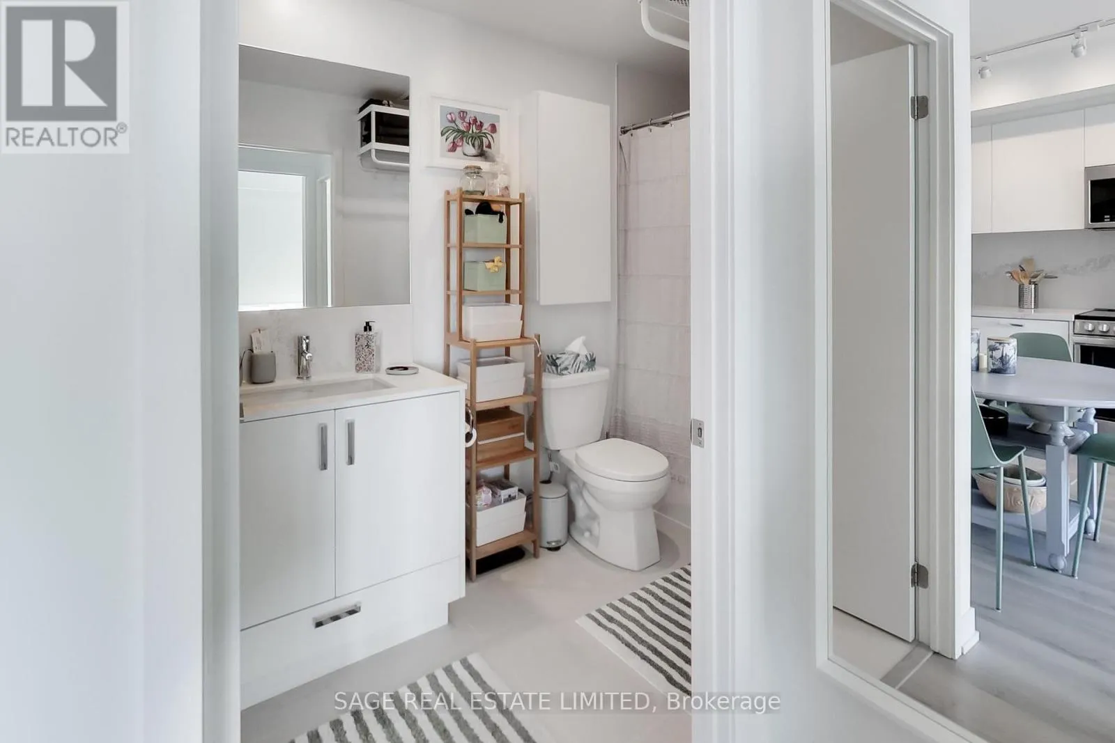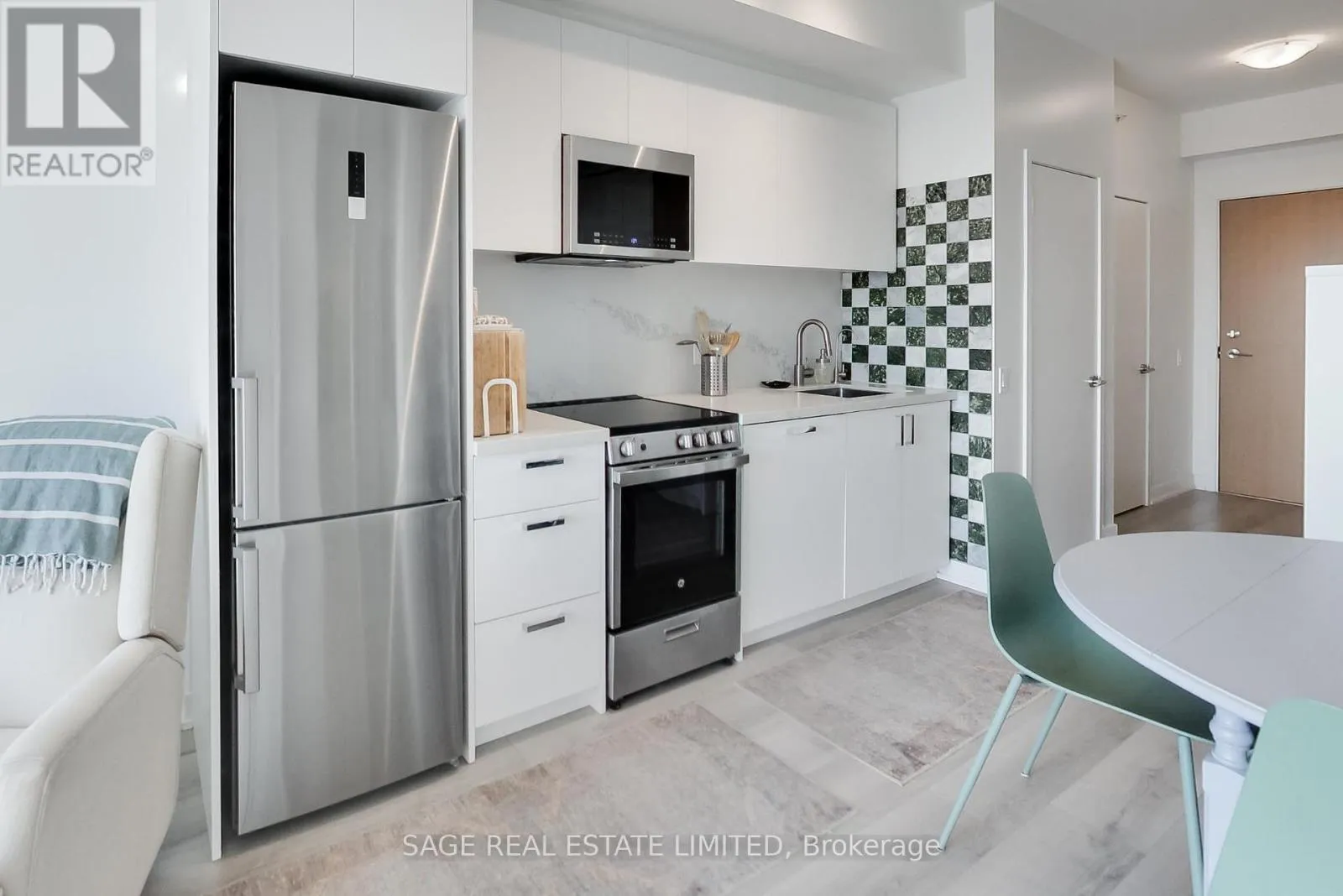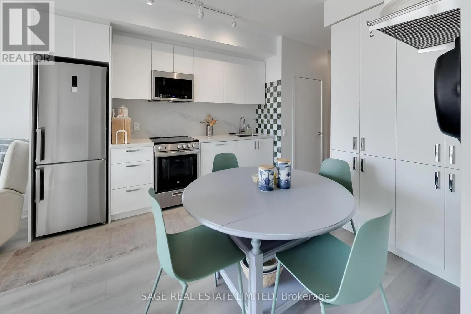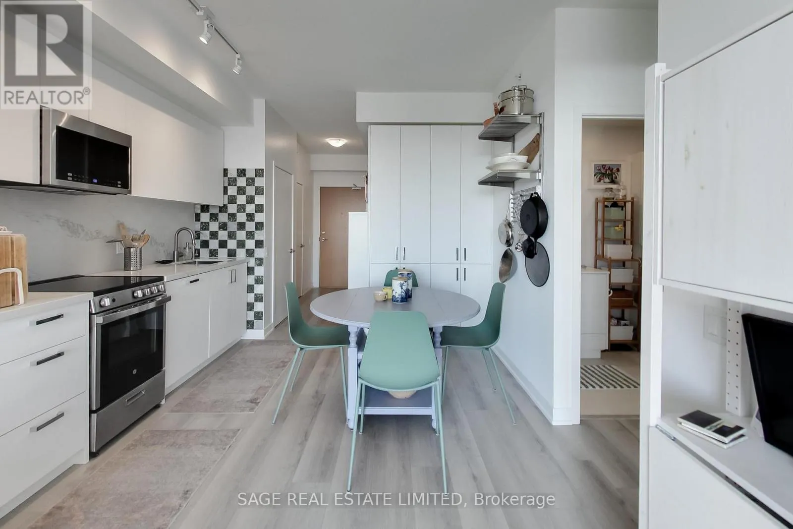 The kitchen impresses with stainless-steel appliances, a large custom pantry, quartz counters/backsplash, a marble accent backsplash, and a reverse osmosis water filter. Integrated storage and built-ins continue throughout, complemented by sleek roller shades on all the windows for a polished finish. The spacious living area opens to a balcony overlooking a tree-lined neighbourhood, with unobstructed skyline views and beautiful sunrises. The bedroom shares the same view through floor-to-ceiling windows and includes a generous walk-in closet, while the four-piece bath pairs clean, modern design with function and more built-in storage. Steps from your front door, enjoy local cafés, restaurants, and everyday conveniences along St Clair West, or head to Stockyards Village for shopping and dining. The TTC streetcar is right outside, connecting you seamlessly to the rest of the city. High Park is a short ride or scenic walk away, and nearby Earlscourt Park offers pools, rinks, sports fields, and fitness facilities. Building amenities include a concierge, gym, party room, playroom, and rooftop deck with more unobstructed skyline views. A perfect balance of style, comfort, and community - this is west-end living done right. (id:27476)
