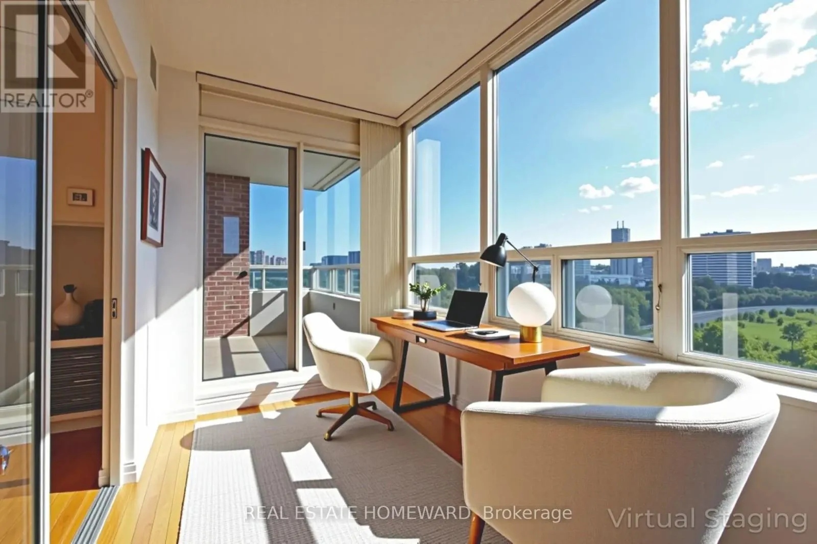 From the moment you step into the elegant foyer-with its ample storage-you'll feel the generous sense of space and natural light. The expansive living and dining area is wrapped in wall-to-wall windows, flooding the home with sunshine and opening onto a private balcony. Here, panoramic city and treetop views set the stage for unforgettable sunsets. The chef-inspired kitchen boasts stone countertops, premium appliances, and abundant cabinetry, paired with a bright breakfast area overlooking lush greenery. A versatile solarium/den offers an ideal workspace for a home office. The primary suite serves as a peaceful retreat with a walk-in closet and private ensuite. A second bedroom with its own ensuite provides comfort and privacy for guests or multigenerational living. A stylish powder room and a dedicated laundry room with full-size appliances further enhance everyday convenience. Residents of this gated, beautifully landscaped community enjoy resort-style amenities, including a saltwater indoor pool, fitness center, party room, tennis and squash courts, saunas, and 24-hour security. Ideally located near golf courses, trails, schools, shopping, transit, and major highways, The Palisades delivers both tranquility and exceptional connectivity. Move-in ready and meticulously maintained, this residence is more than a home-it's a statement of refined living in one of Toronto's most exclusive communities. Pictures Showing Furniture Have Been Staged Virtually. (id:27476)