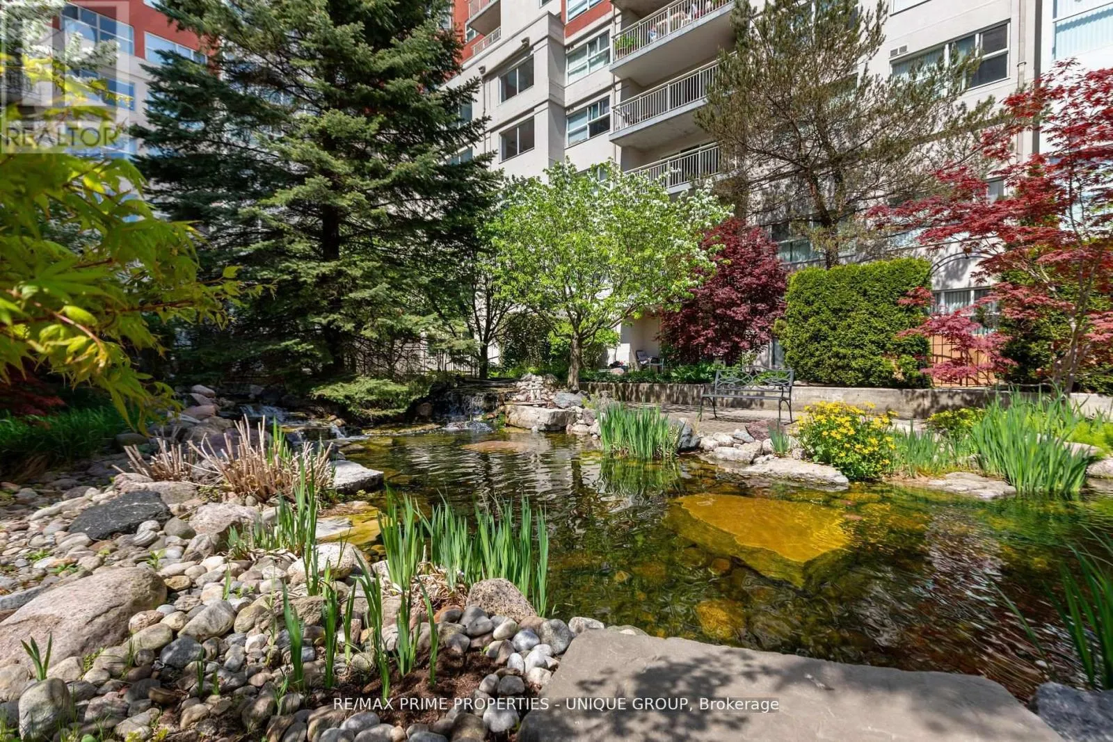 Wynford/Don Mills/DVP Ravine. Sunny and spacious 2 bdrms, 2 full baths, approx. 1460 SF. All Rooms Overlook Ravine & Award Winning, Professionally Landscaped Courtyard. Freshly painted. Huge living room with gas fireplace creates toasty ambiance. Perfect for fall & winter evenings. Dining Rm suitable for family gatherings easily accommodates 10 ppl. Large Balcony Overlooks Koi Pond & Waterfalls, has Legal Gas BBQ ~ Perfect For Summer Dining & Entertaining.