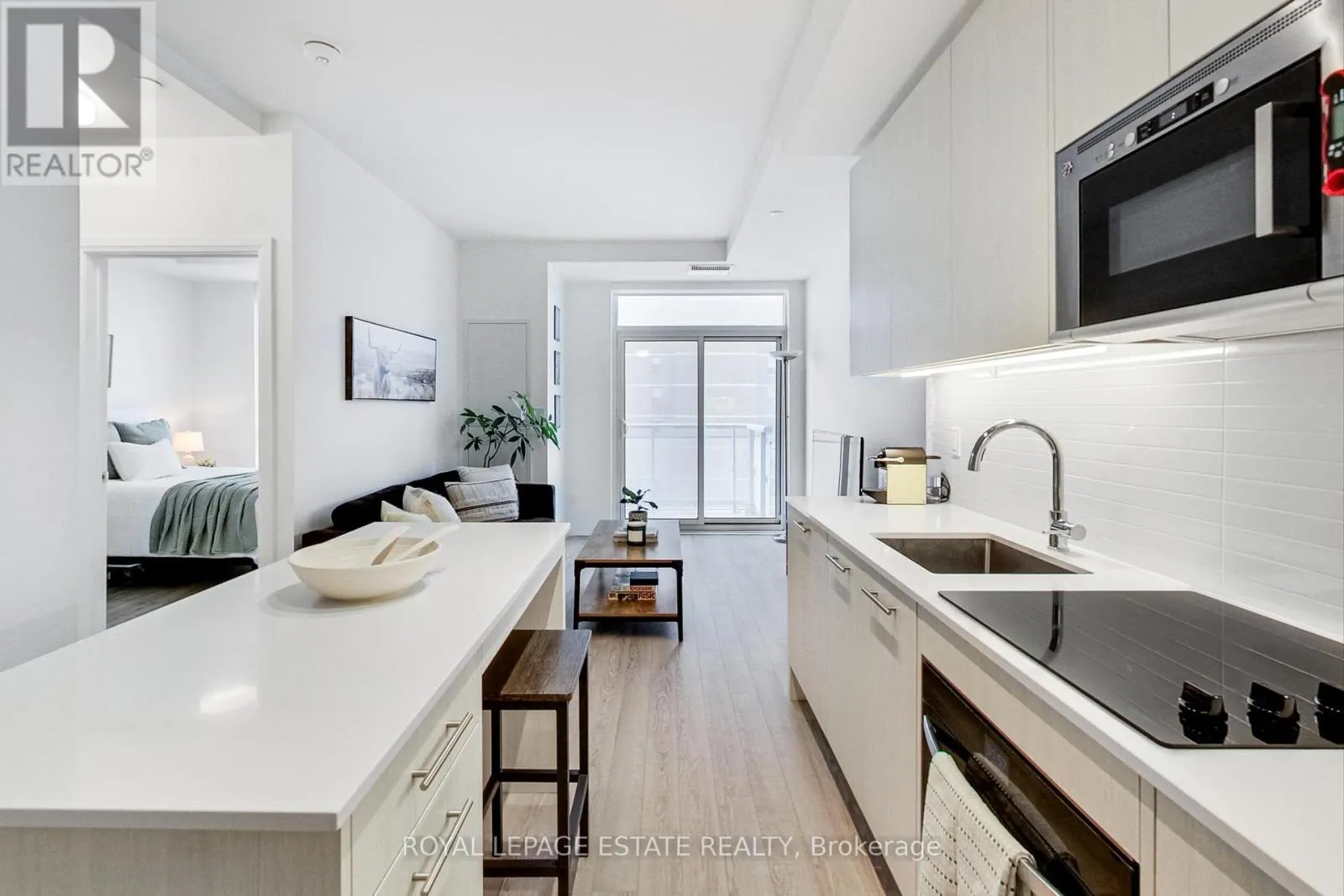 Cross Streets: Main/Danforth. ** Directions: South west block of Main and Danforth. Bright and spacious 1 Bed, 1 Bath unit with large balcony in newly Built Linx Development. This 554 square foot floor plan is a thoughtfully designed open concept space. The kitchen includes built in appliances, sleek counter tops and a large island for breakfast or food prep. The bedroom is large enough for a queen sized bed, and has a walk in closet! Enjoy natural light from east facing windows and a sliding door to the balcony where you can enjoy morning sun.