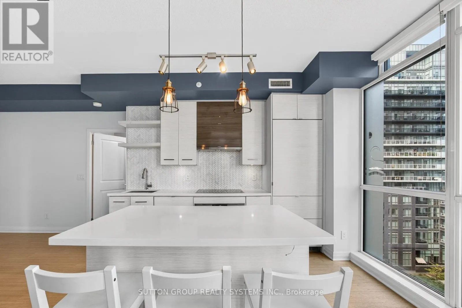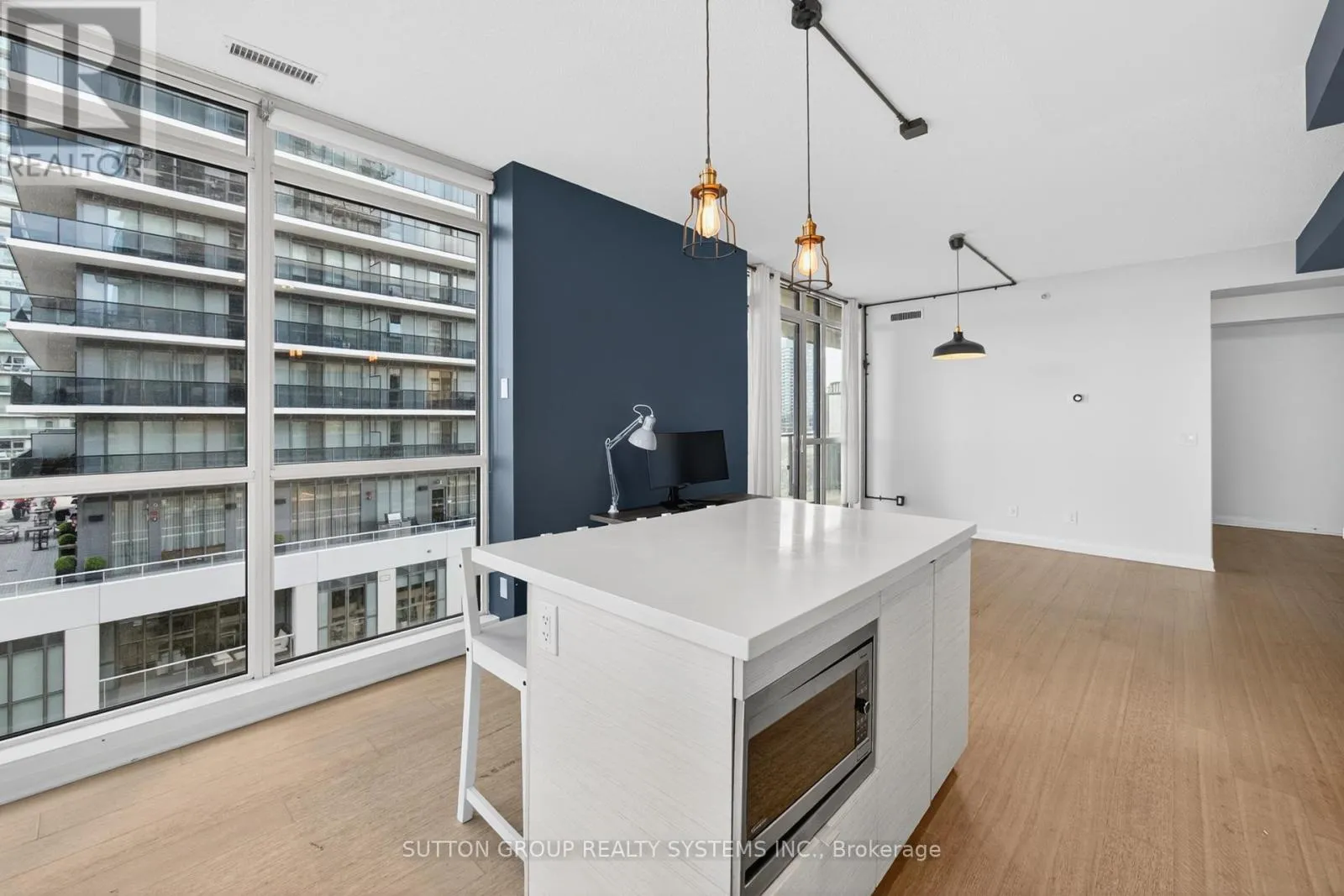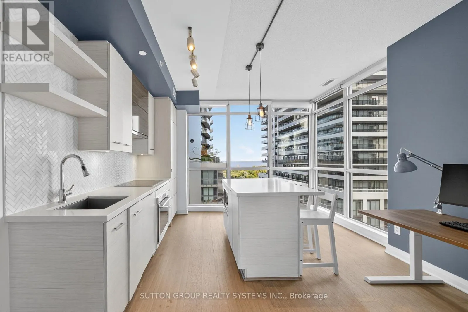 Walk In To This Unit & Breath The Openness - Be Inspired, Unwind Your Creative Side & Get Carried Away By The Naturally Bright Open Concept Layout With Gorgeous Finishes, Neutral colours & Tons Of Upgrades Including Gleaming Floors, Floor To Ceiling Windows, High Ceilings, Sparkling Clean Modern Kitchen, Boasting Built-In Appliances, A Large Centre Island , Quartz Countertops, Undermount-Sink, Track Lights, Backsplash & Lots Of Cabinet/Counter Space. One Large & Comfortable Primary Bedroom Flooded With Tons Of Natural Light Offers A Walk-In Closet Equipped With Closet Organizers & An Ensuite Bathroom With Engineered Stone Vanity Top. Conveniently This Condo Is Equipped With An Ensuite Upgraded Washer and Dryer Combo. Walk Out & Enjoy Your Own Covered Balcony Offering A combination Lake & City-Views. With Top Notch Amenities Including An Indoor Pool, A 24-hour concierge, Fitness Studio, Yoga studio, Whirlpool, Party Room, Billiard- Room, Guest Suites, Outdoor Courtyard With A BBQ Area, Rooftop Terrace, Experience a Truly Elevated Way Of Living In This Boutique Residence, Which Delivers A Sense Of Luxury & Exclusivity Rarely Found In Larger Buildings. This is A Home For Those Who Appreciate Fine Living. Schedule A Private Tour To Experience Its Unique Charm & See Why It's The Perfect Place To Call Home. (id:27476)