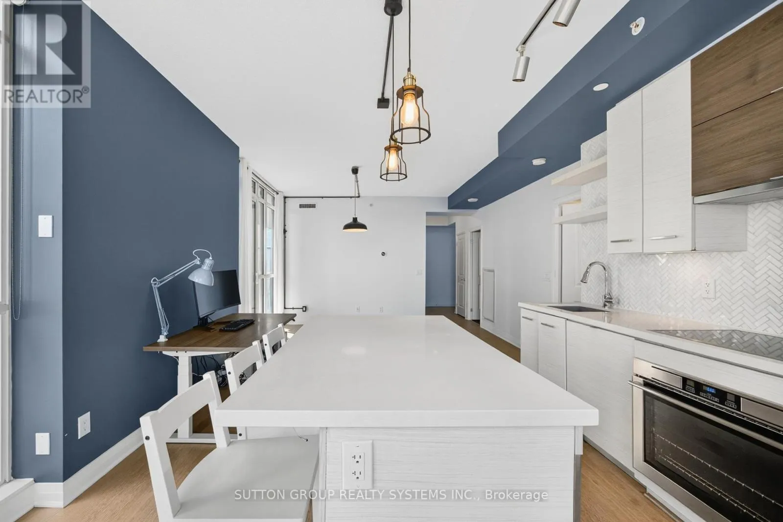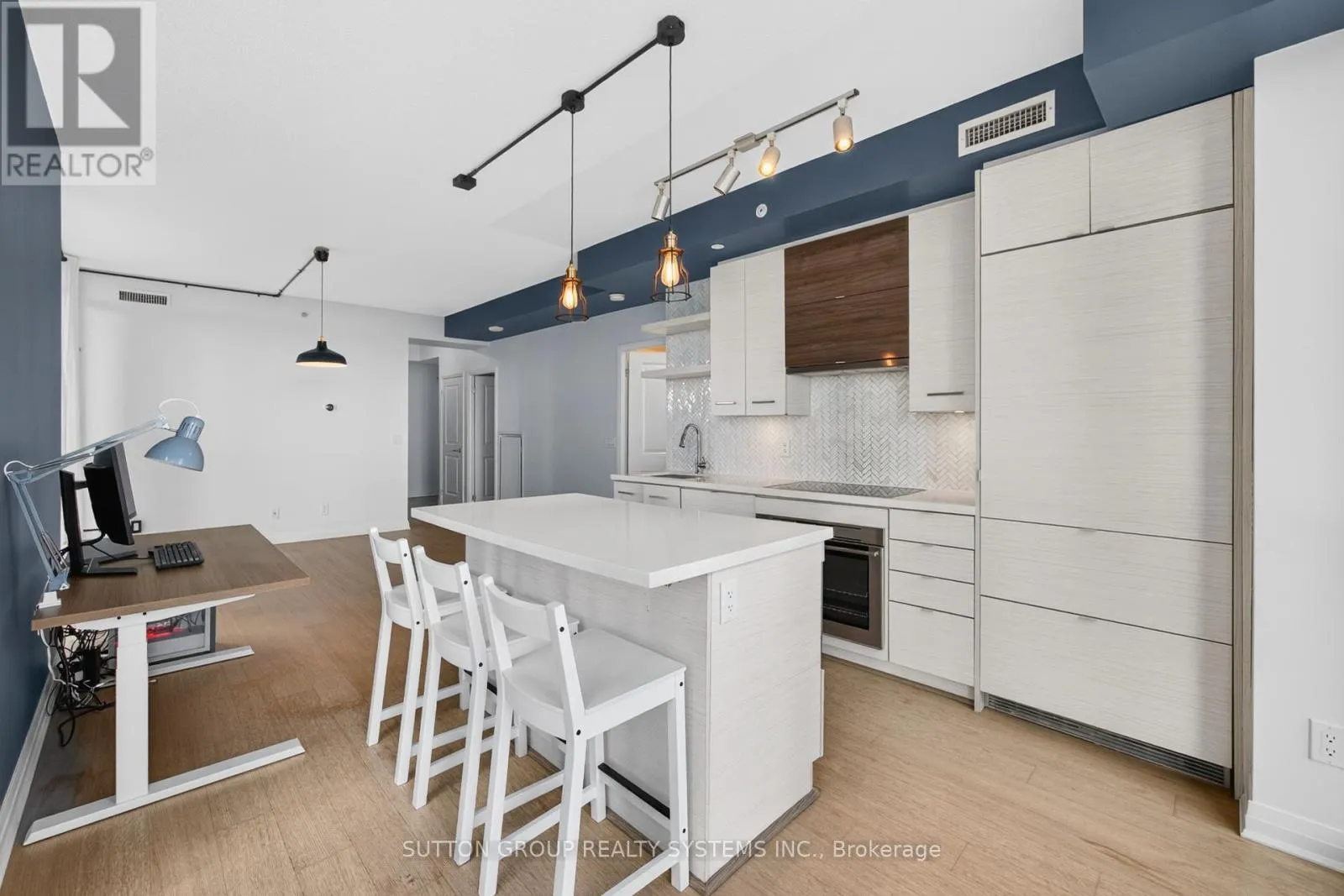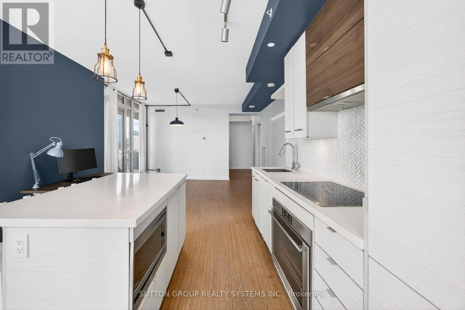 Walk In To This Unit & Breath The Openness - Be Inspired, Unwind Your Creative Side & Get Carried Away By The Naturally Bright Open Concept Layout With Gorgeous Finishes, Neutral colours & Tons Of Upgrades Including Gleaming Floors, Floor To Ceiling Windows, High Ceilings, Sparkling Clean Modern Kitchen, Boasting Built-In Appliances, A Large Centre Island , Quartz Countertops, Undermount-Sink, Track Lights, Backsplash & Lots Of Cabinet/Counter Space. One Large & Comfortable Primary Bedroom Flooded With Tons Of Natural Light Offers A Walk-In Closet Equipped With Closet Organizers & An Ensuite Bathroom With Engineered Stone Vanity Top. Conveniently This Condo Is Equipped With An Ensuite Upgraded Washer and Dryer Combo. Walk Out & Enjoy Your Own Covered Balcony Offering A combination Lake & City-Views. With Top Notch Amenities Including An Indoor Pool, A 24-hour concierge, Fitness Studio, Yoga studio, Whirlpool, Party Room, Billiard- Room, Guest Suites, Outdoor Courtyard With A BBQ Area, Rooftop Terrace, Experience a Truly Elevated Way Of Living In This Boutique Residence, Which Delivers A Sense Of Luxury & Exclusivity Rarely Found In Larger Buildings. This is A Home For Those Who Appreciate Fine Living. Schedule A Private Tour To Experience Its Unique Charm & See Why It's The Perfect Place To Call Home. (id:27476)