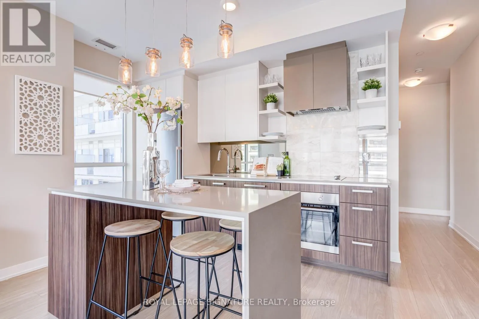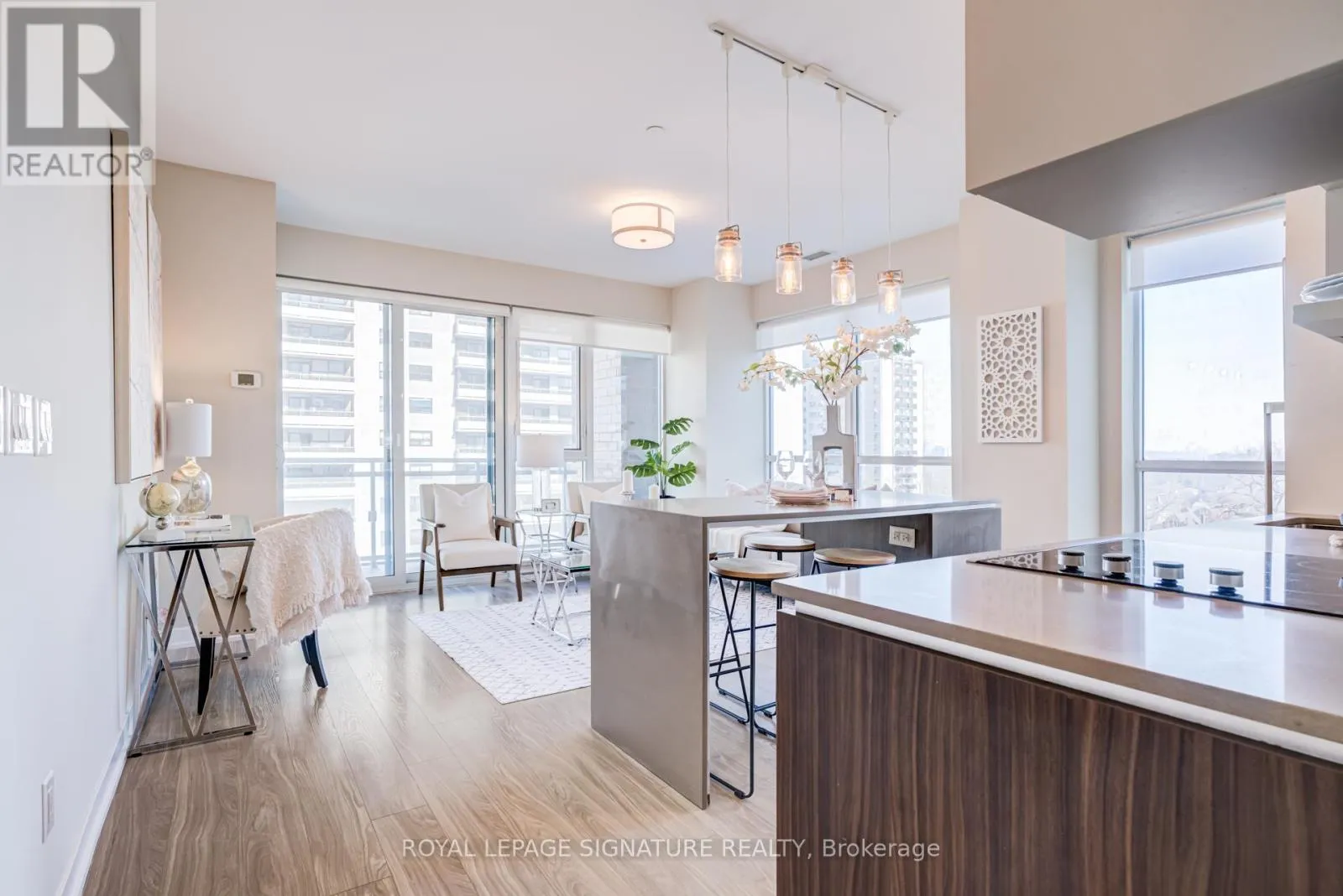 Beautifully designed open-concept layout with a spacious living area, high-end finishes, and nine-foot smooth ceilings for a bright, modern feel. The contemporary kitchen features a large island with seating, and opens to a private balcony, ideal for entertaining. This well-appointed suite offers excellent privacy and quiet enjoyment. Parking and locker included. Situated in a Daniels-built luxury residence directly across from High Park, featuring world-class amenities including a fully equipped gym, yoga and Pilates studio, saunas, rock climbing wall, theatre room, party and games rooms, rooftop terrace and sun deck, fireside lounge with BBQs, dog and bike wash stations, visitor parking, and 24-hour concierge service. (id:27476)