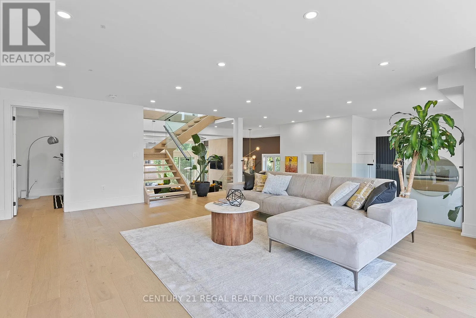 A Dream Chefs Kitchen with High End MIELE appliances, massive 13ft waterfall quartz center island and backsplash. Open Concept main floor level features a gas fireplace, dining area, powder room and 2 additional Den/Office spaces above ground. Enjoy an Extra Level of space w/a Raised Floor to the family room in this open concept space. Walk up to the 2nd Level w/5 BEDROOMS and large sky lights above the Open Riser Staircase providing natural sunlight with sleek glass panel railing system adds to this upscale modern look. A Master Ensuite w/true hotel-like retreat feel of relaxation w/ Walk-out Balcony to enjoy your reading/coffee in the AM, His/her Closets and a Walk-in closet. The Master 6pc Ensuite Bathroom entails a free-standing tub, double sinks and double rainfall shower heads. 2nd Bdrm features a juliet balcony and large closet. 3rd bdrm features floor to ceiling windows and a large closet. 4th and 5th bedrooms are also impressive with large windows for space. Skylights also featured in the bathroom and large 2nd floor laundry room w/custom cabinetry storage and large linen closet.The Basement is the ultimate space with Rec/Gym space that is a must see! The Basement has another Bedroom w/massive Walk-in Closet,4pc Bathroom and a convenient walkout to the privacy fence and fully landscaped backyard.This home has been carefully designed and no expenses spared. Stunning property close to schools, hospitals, grocery stores, parks, hwy's, TTC and more! (id:27476)