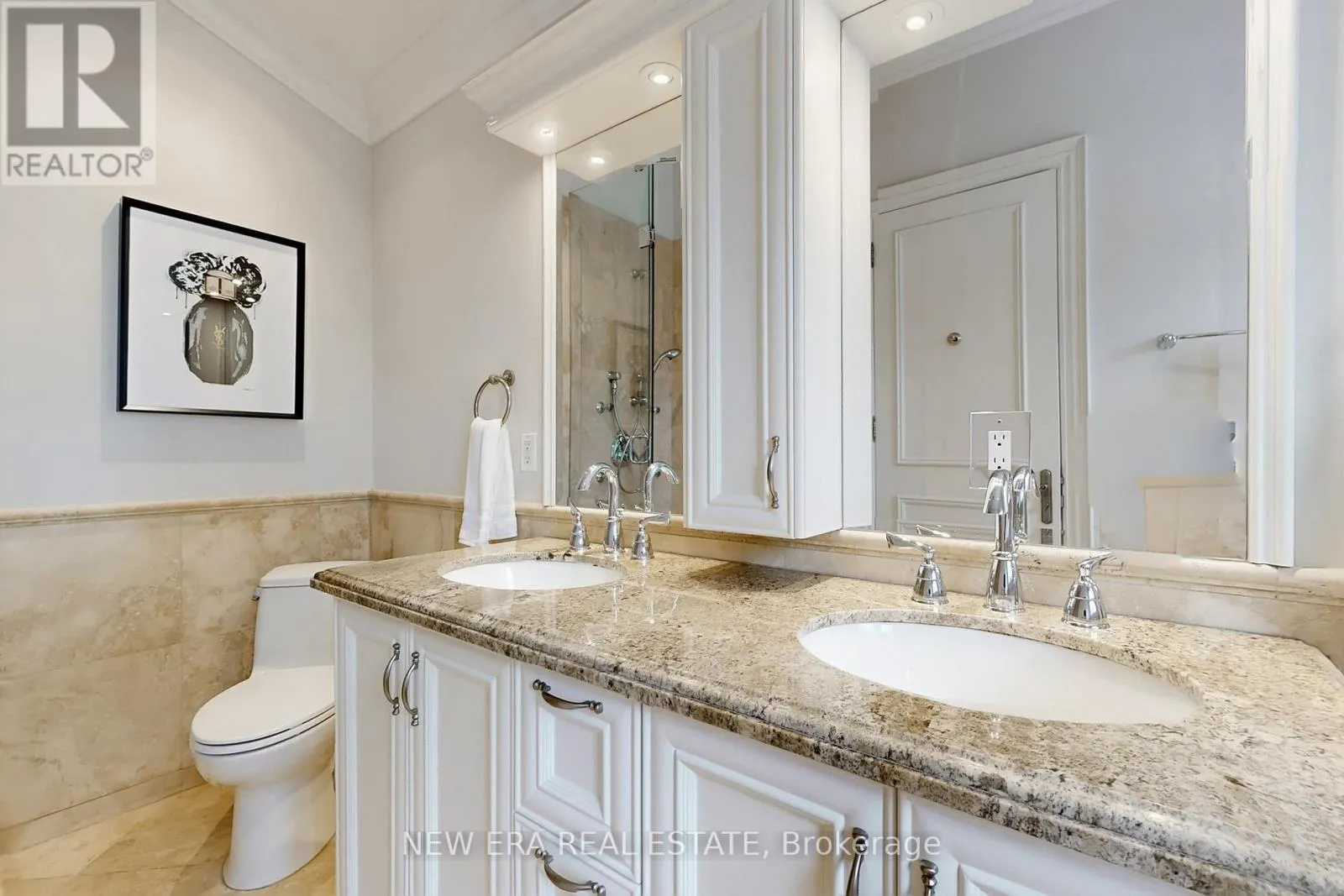 Yonge Street and Lawrence Ave Just steps to upscale Yonge Street shops and restaurants, and a short walk to the Yonge & Lawrence subway station. The fabulous gourmet kitchen features premium stainless steel appliances, a large centre island, and an open-concept layout flowing seamlessly into the family room, ideal for both everyday living and entertaining. The spacious primary bedroom offers his-and-hers walk-in closets and 2 skylight, filling the space with natural light.